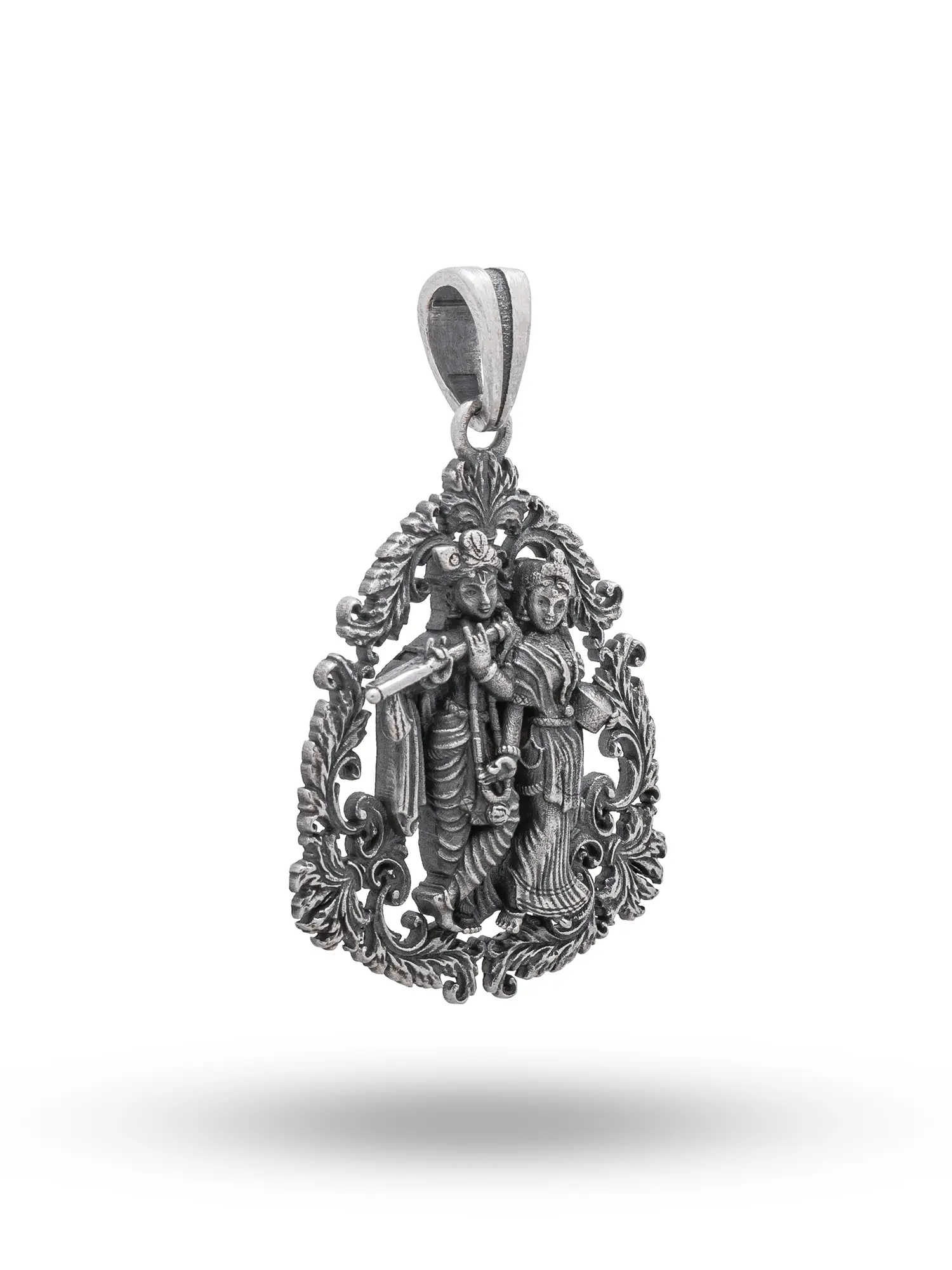 Lord Krishna Playing Flute Sterling Silver Pendant