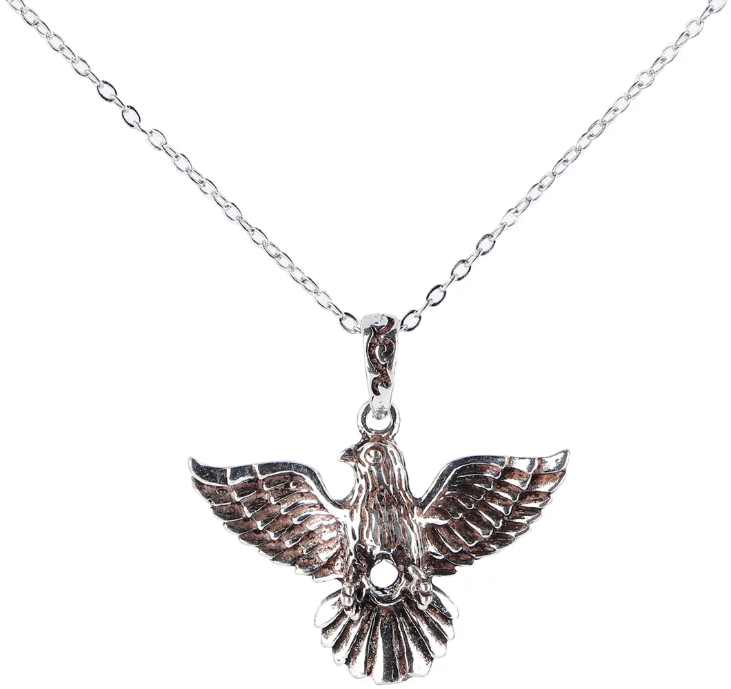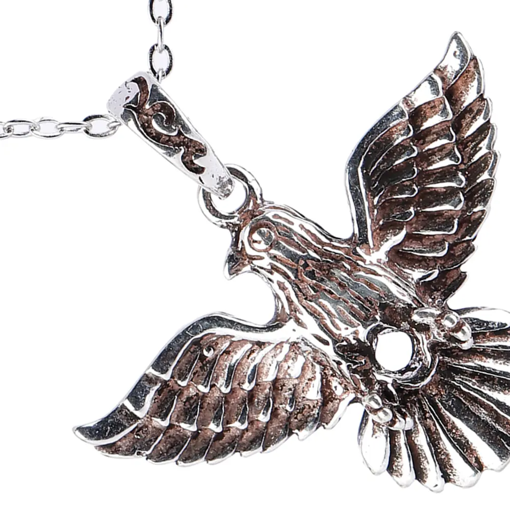 Fashioned from high-quality sterling silver, this pendant boasts a radiant sheen that is both timeless and elegant. Sterling silver is renowned for its durability and hypoallergenic properties, making it a comfortable and lasting choice for everyday wear or special occasions. The polished silver is expertly contrasted with darkened recesses, enhancing the dimensionality of the eagle's form and highlighting the masterful craftsmanship. This interplay of light and shadow creates a captivating visual appeal that draws the eye.