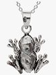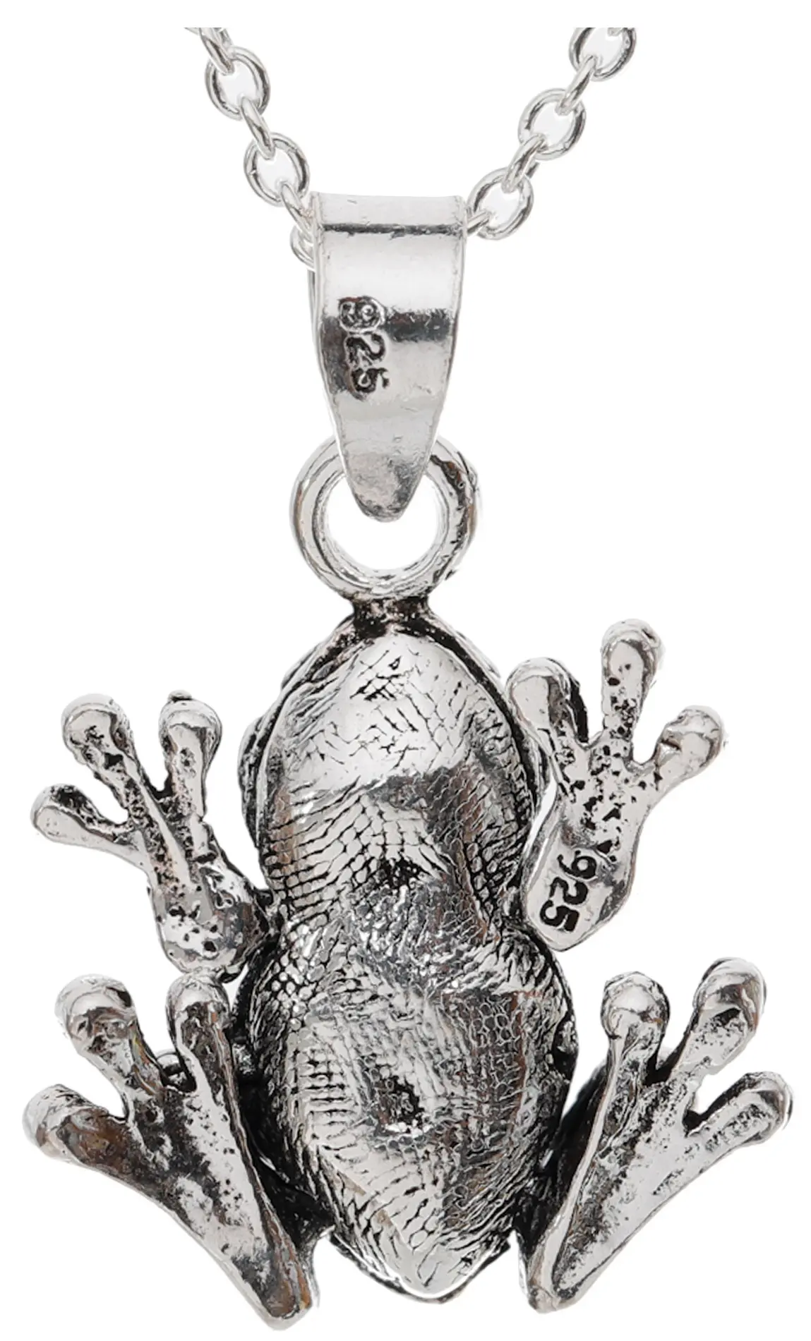 Add a touch of playful enchantment to your jewelry collection with this captivating sterling silver pendant. Designed to capture the lively spirit of a frog, this piece is more than just an accessory; it's a conversation starter and a symbol of good fortune and transformation. Crafted with exquisite detail, each facet of the frog’s textured skin and bulging eyes has been meticulously sculpted to bring this beloved amphibian to life. The sterling silver gleams with a polished finish, reflecting light and drawing attention to its intricate design.