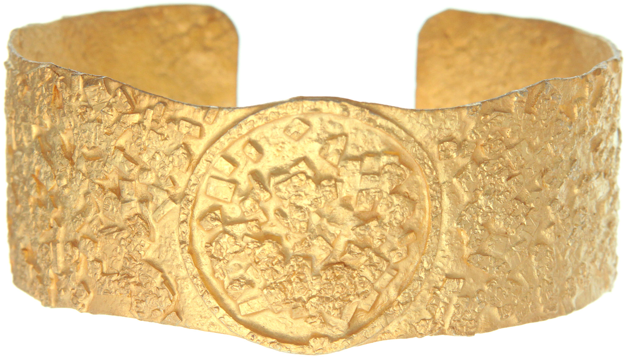 Crafted from the finest sterling silver, this cuff undergoes a meticulous process to achieve its distinctive frosted finish. Each piece is expertly plated with lustrous gold, creating a radiant sheen that accentuates the intricate, artisanal detailing. The substantial weight and smooth interior speak to the quality of construction, ensuring a comfortable and enduring wear.