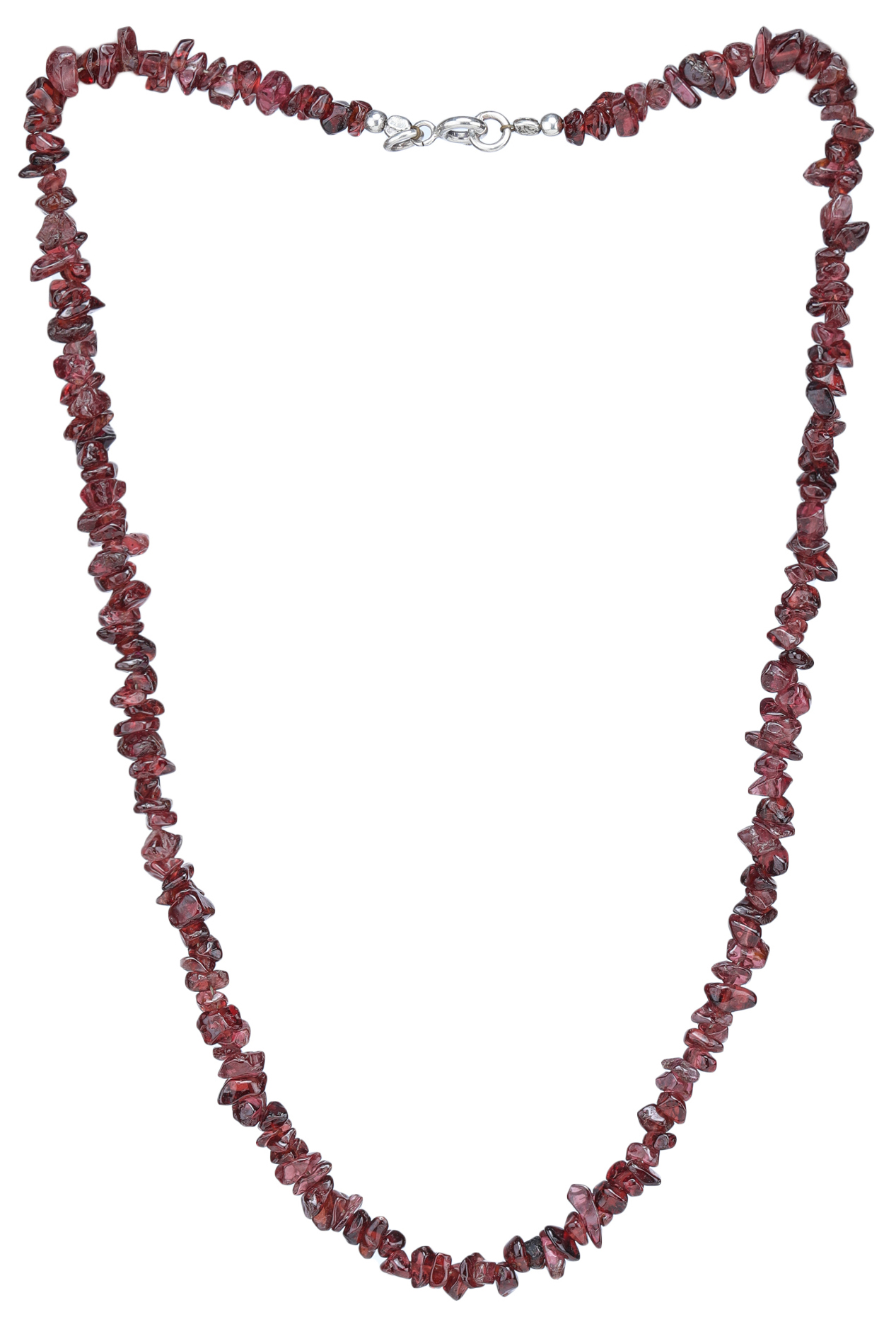 Beyond its aesthetic appeal, this necklace is designed with both comfort and longevity in mind. The delicate sterling silver clasp ensures a secure and easy closure, while complementing the vibrant garnets with its understated shine. The sterling silver is known for its durability and resistance to tarnishing, ensuring that this piece will remain a cherished part of your jewelry collection for years to come. The careful arrangement of the garnet chips ensures a smooth and comfortable fit, making it a joy to wear all day long.