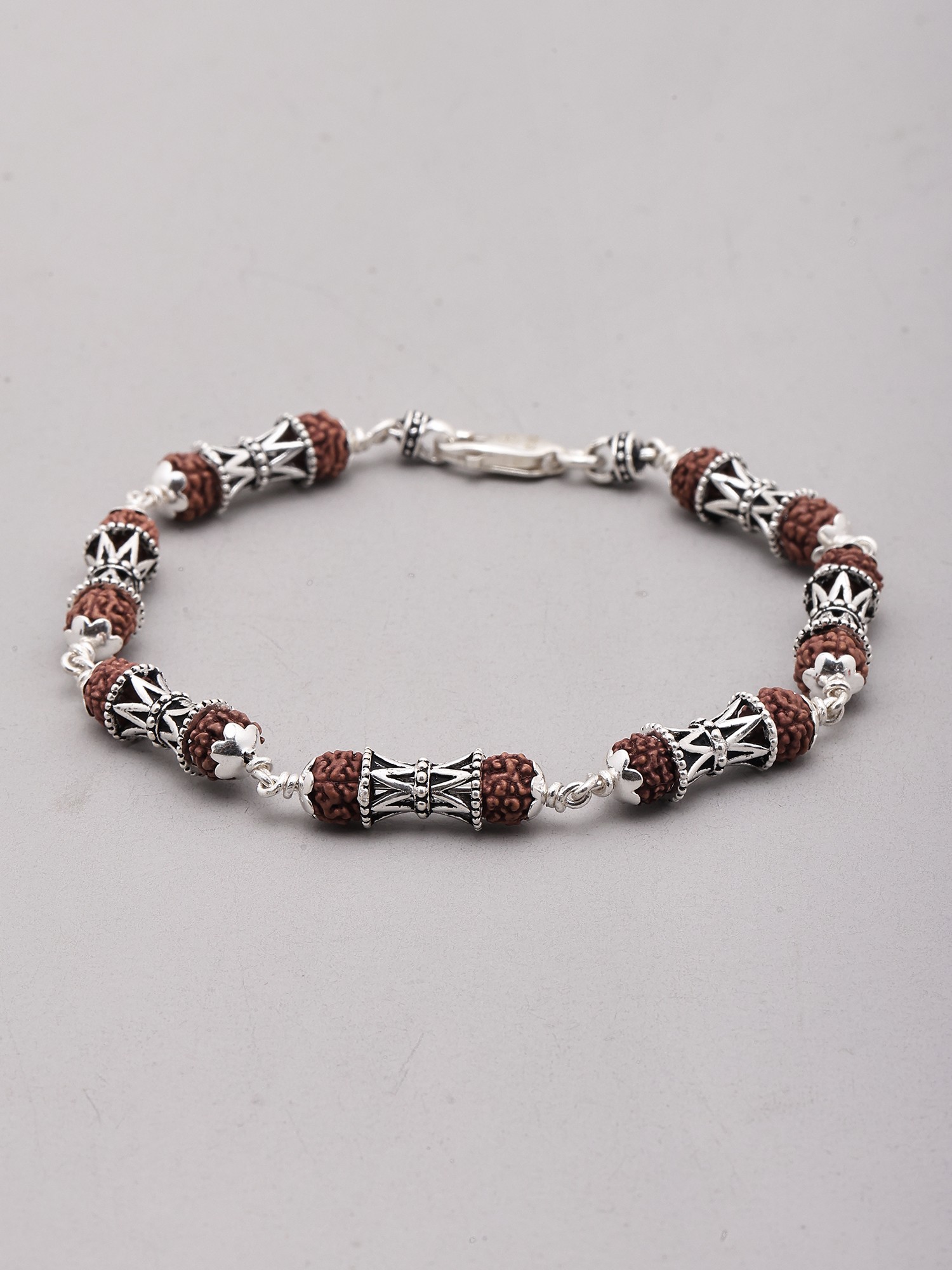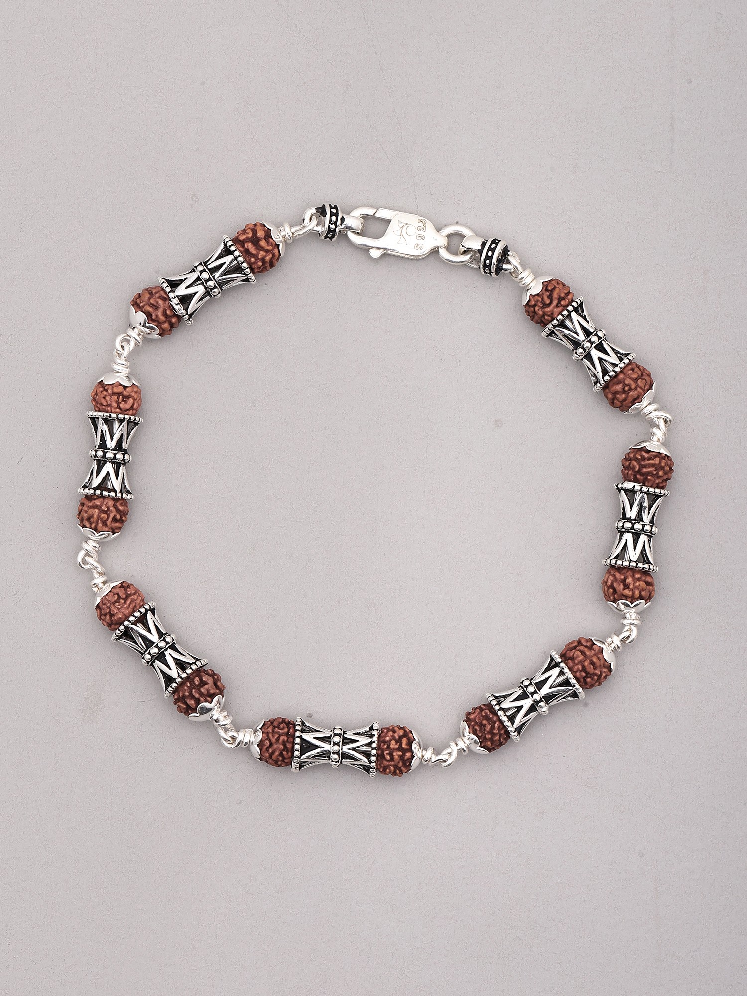 Sterling Silver Bracelet with Genuine Certified Rudraksha & Textured Silver Beads