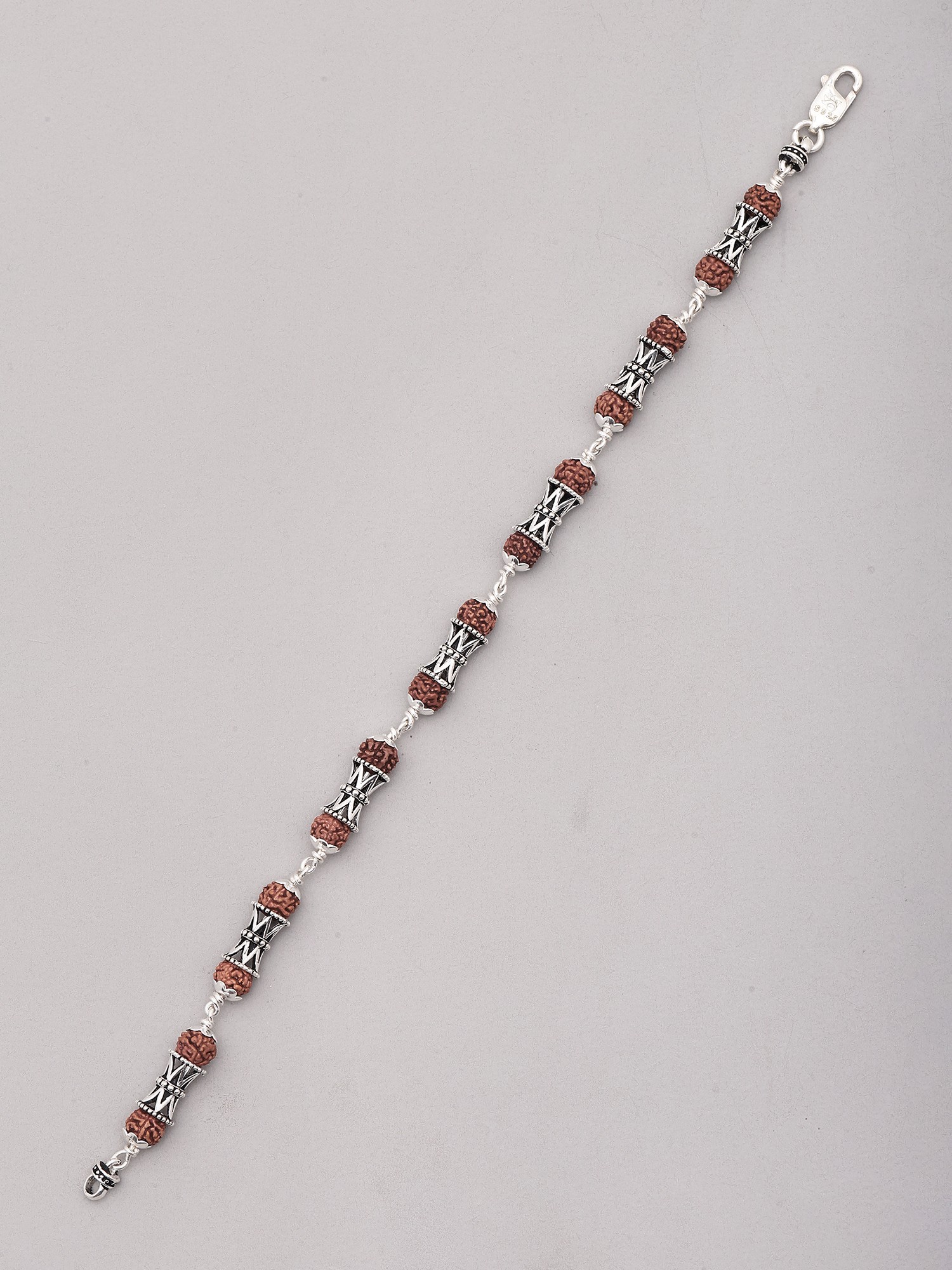 Hexagonal Shape Sterling Silver Bracelet with Genuine Certified Rudraksha Beads