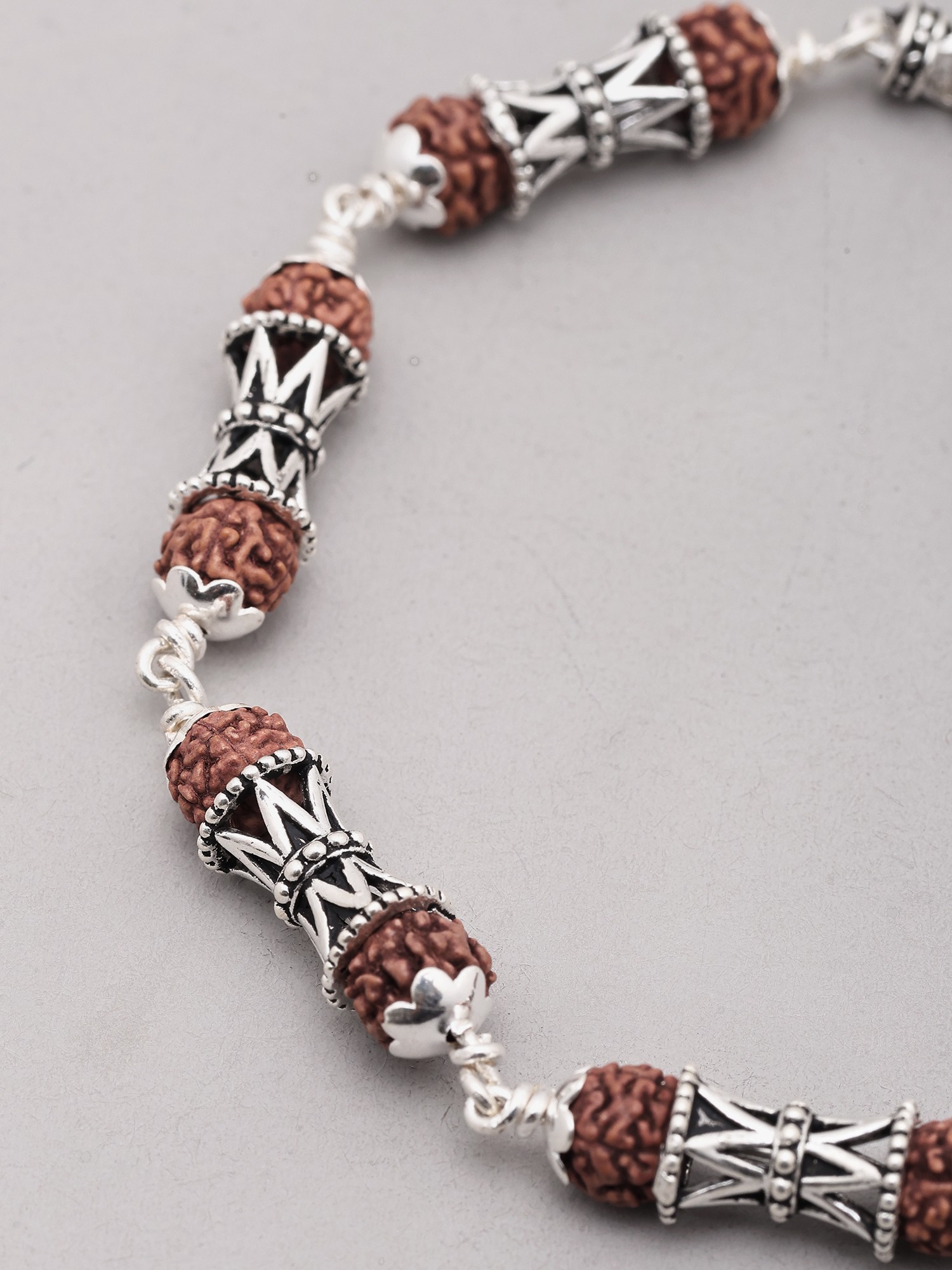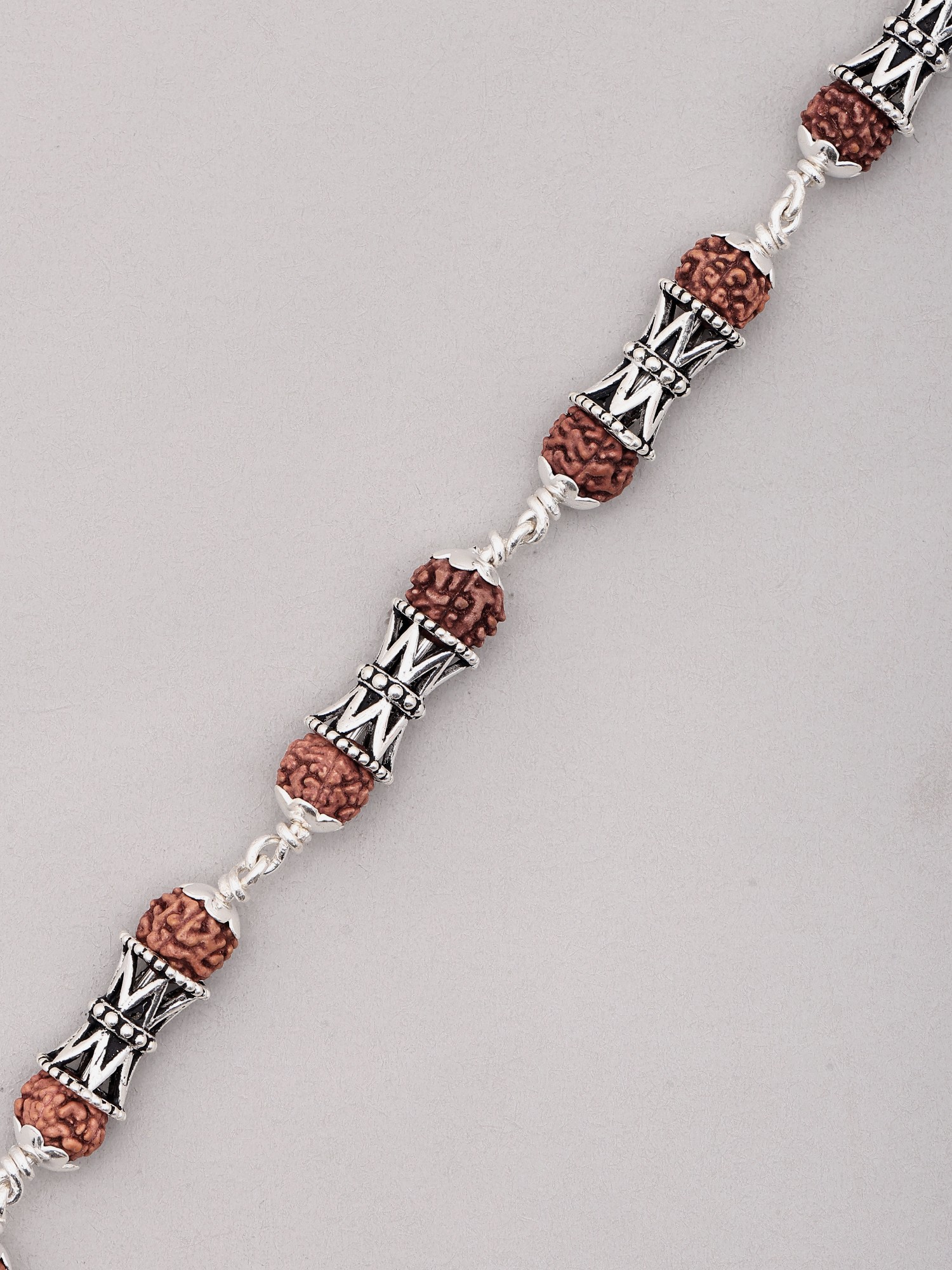 Genuine Certified Rudraksha and Sterling Silver Lattice Bead Bracelet