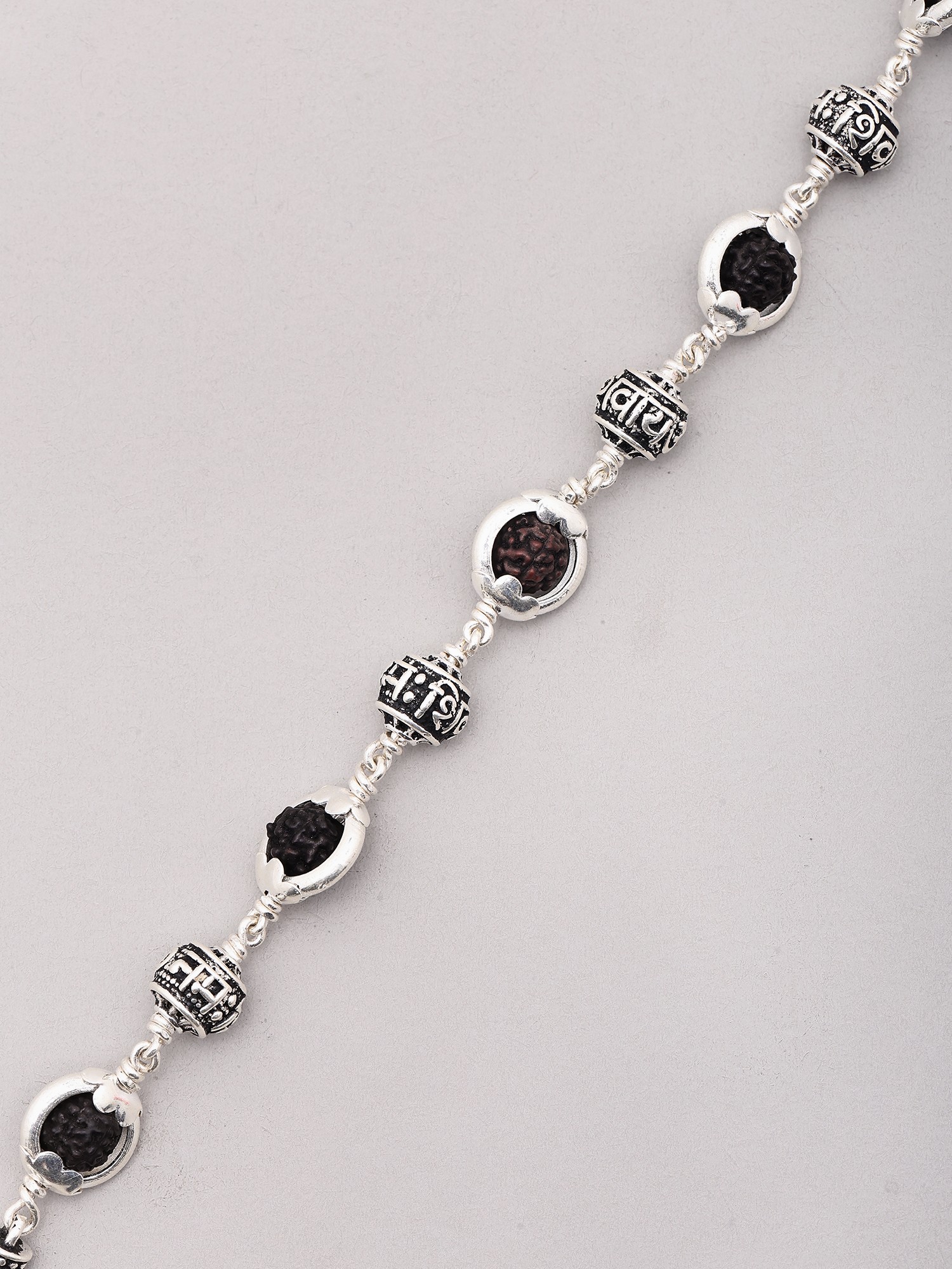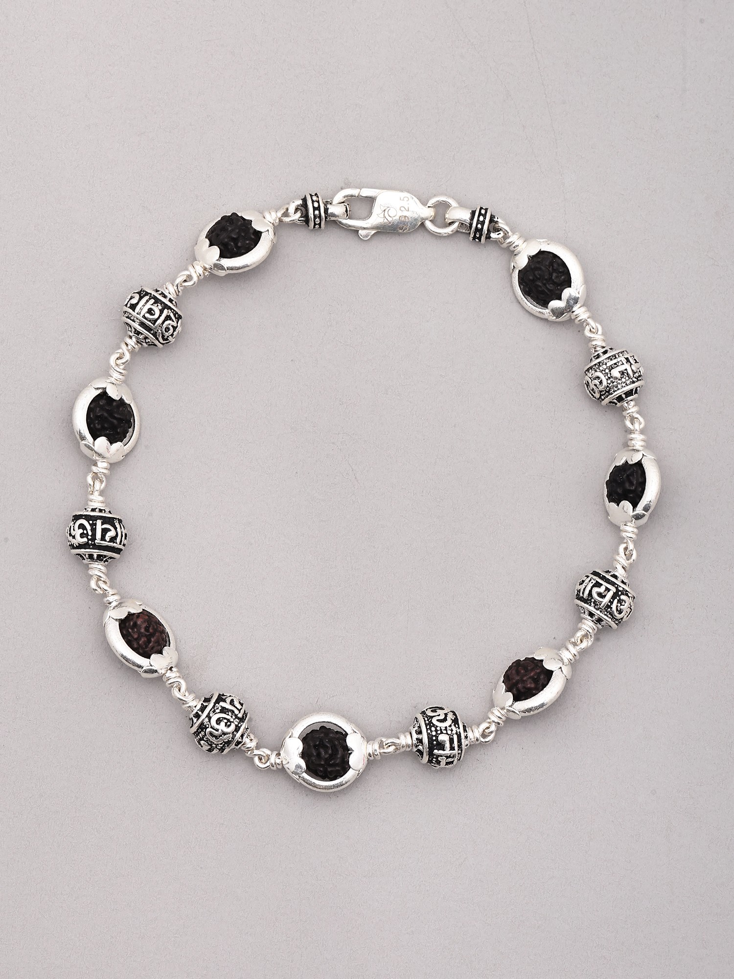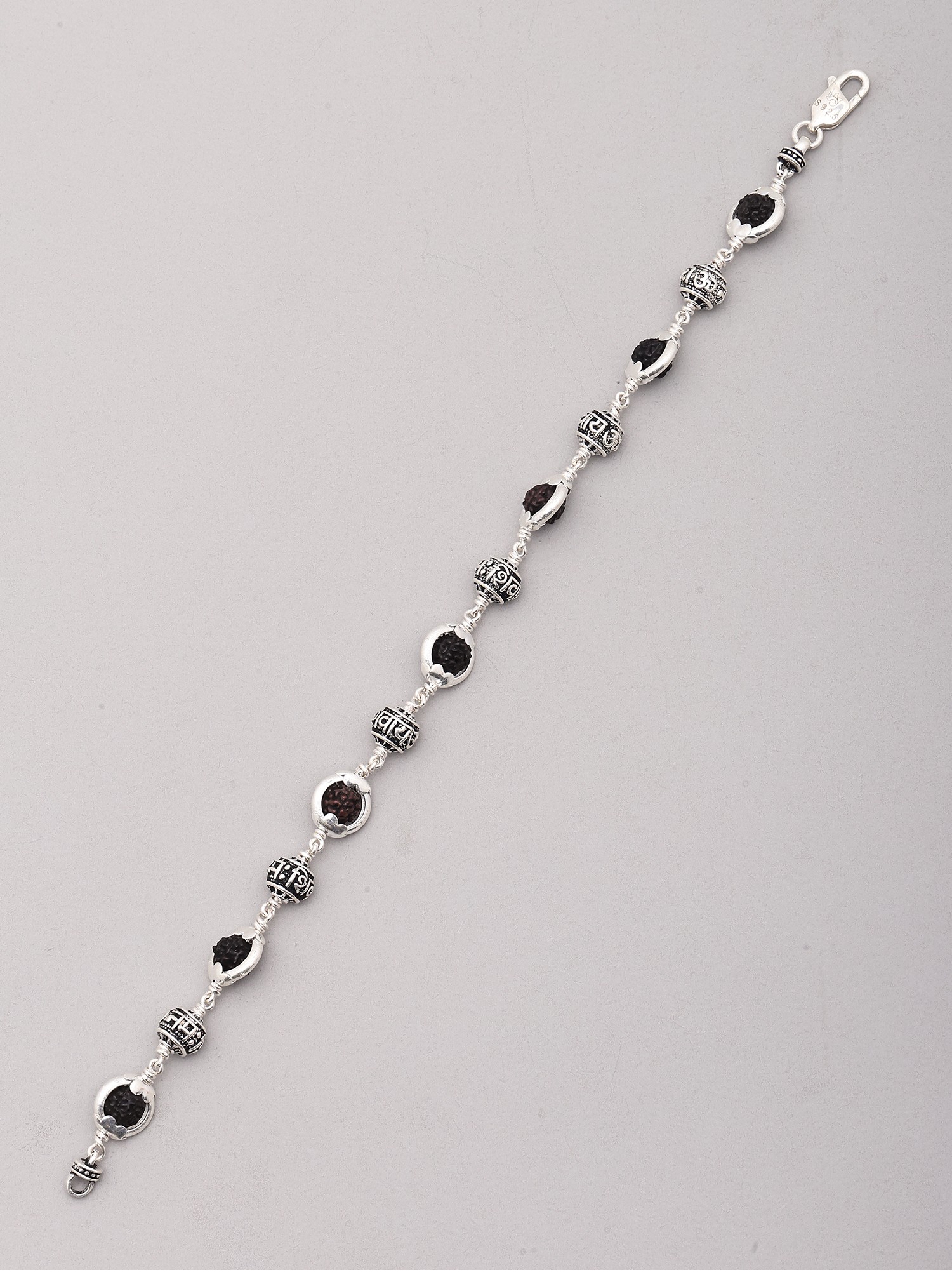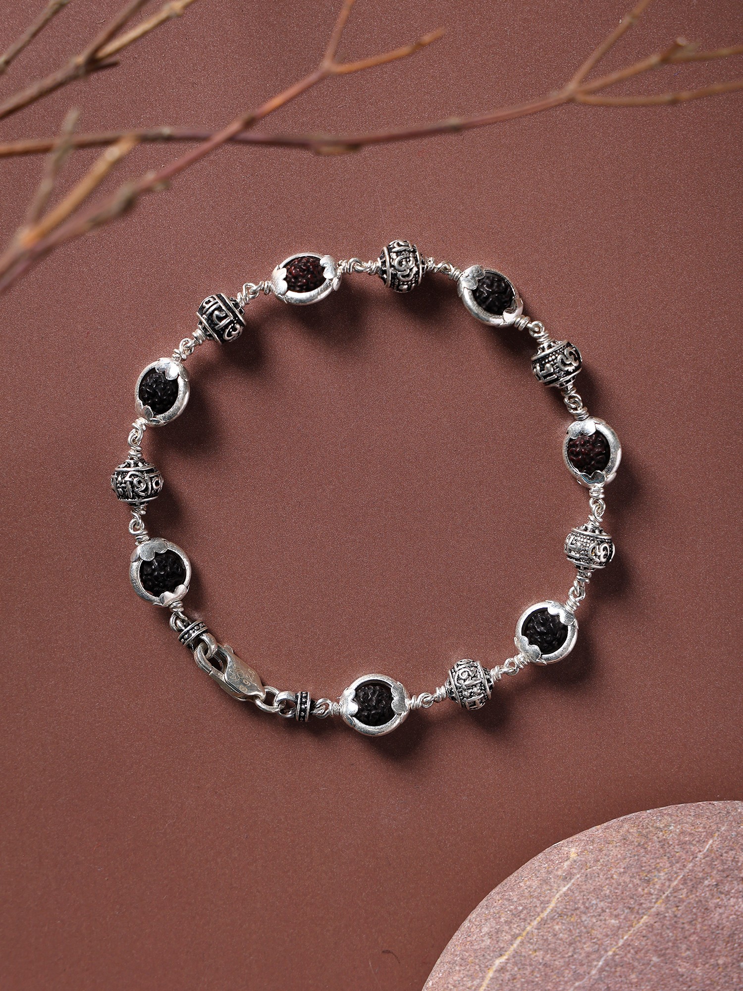 Sterling Silver Bracelet with Genuine Certified Rudraksha & Textured Silver Beads