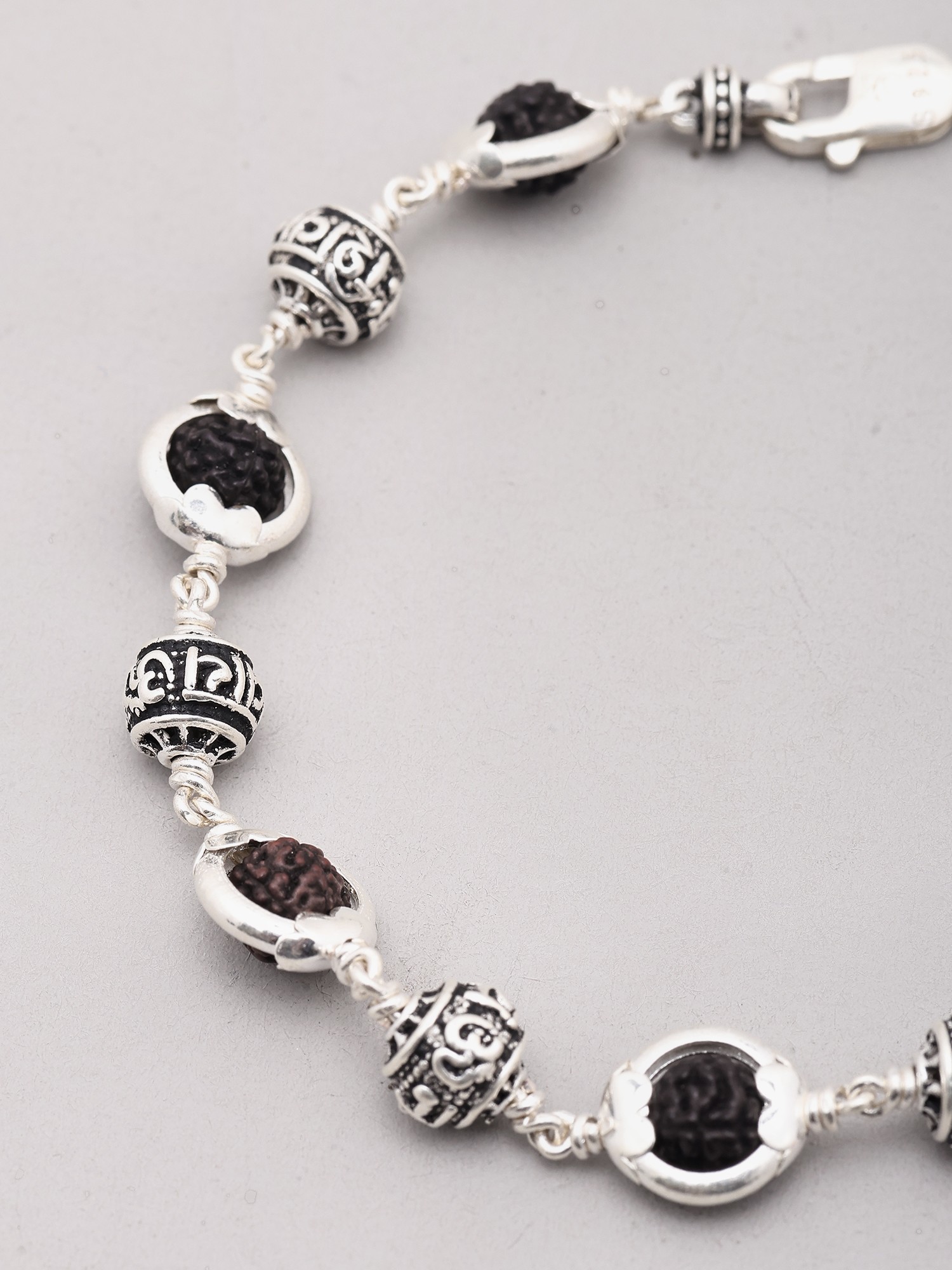 Genuine Certified Rudraksha and Sterling Silver Lattice Bead Bracelet
