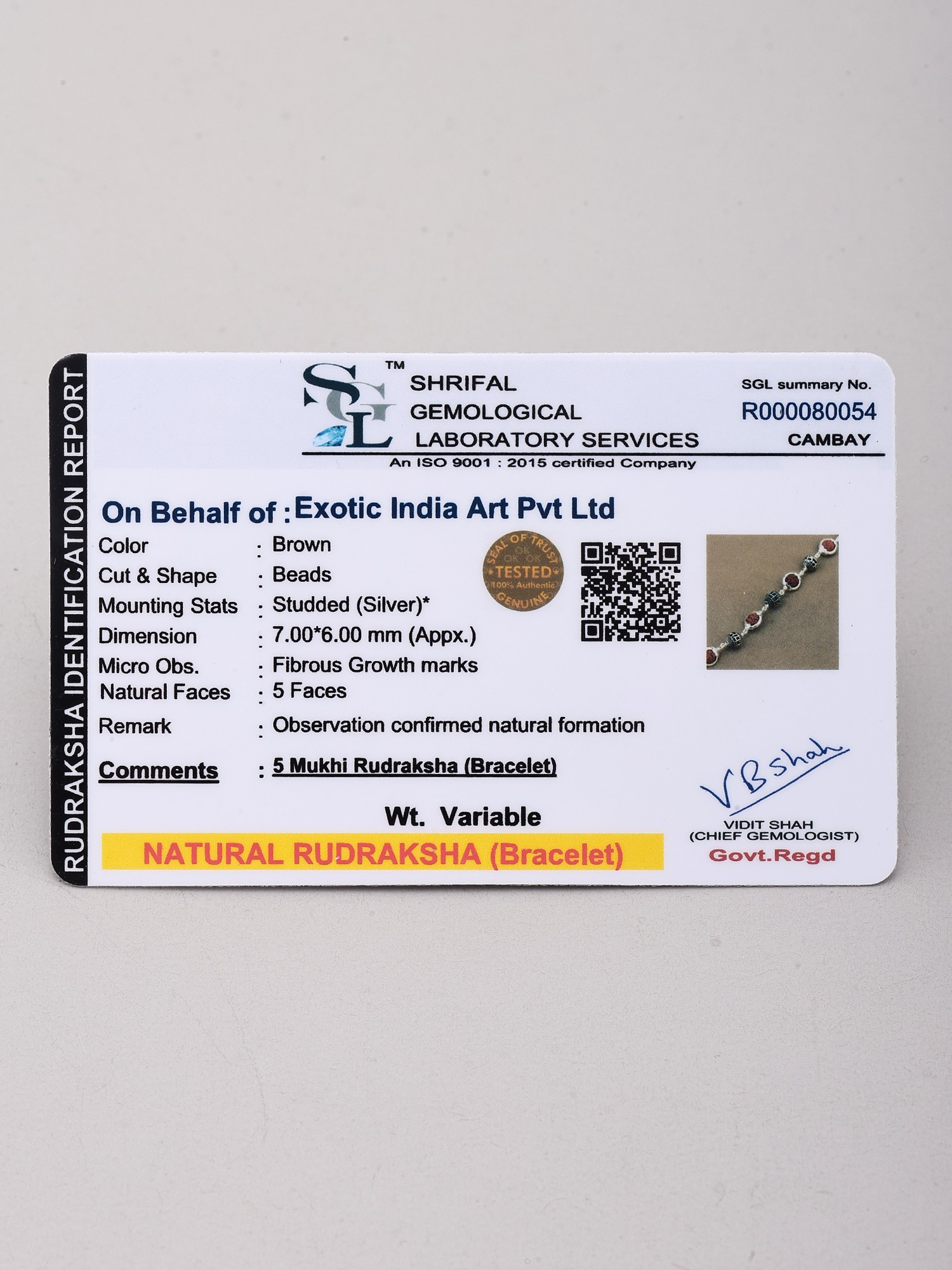 Hexagonal Shape Sterling Silver Bracelet with Genuine Certified Rudraksha Beads