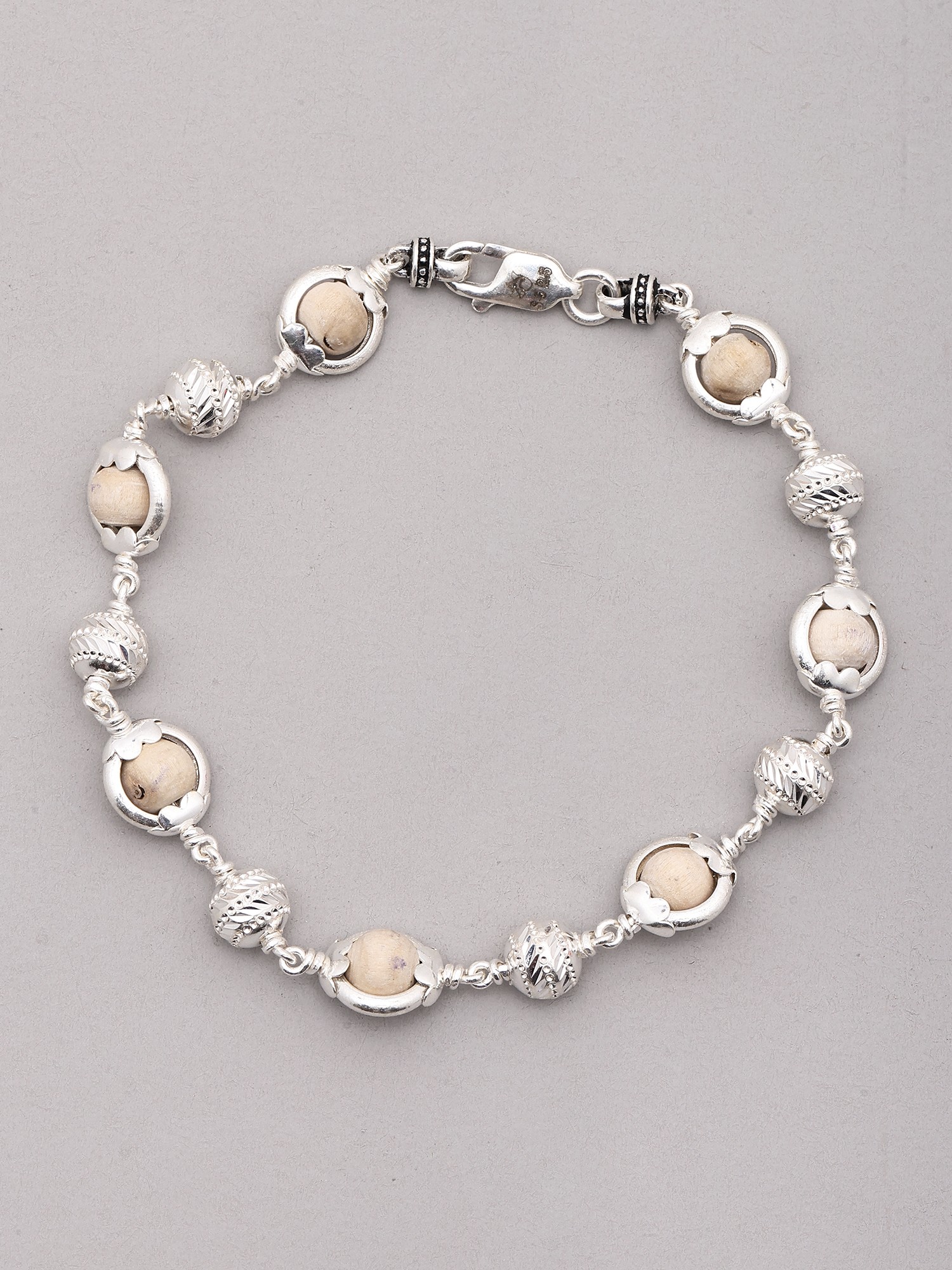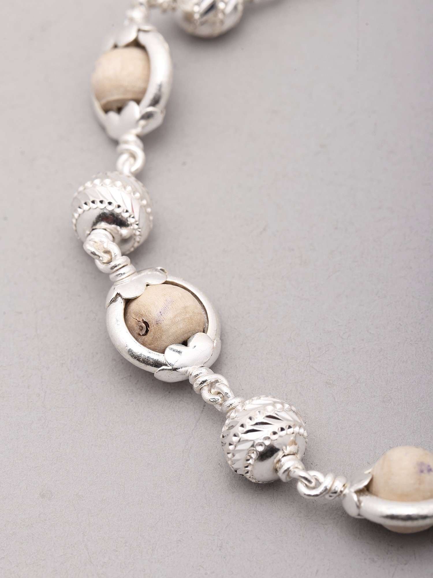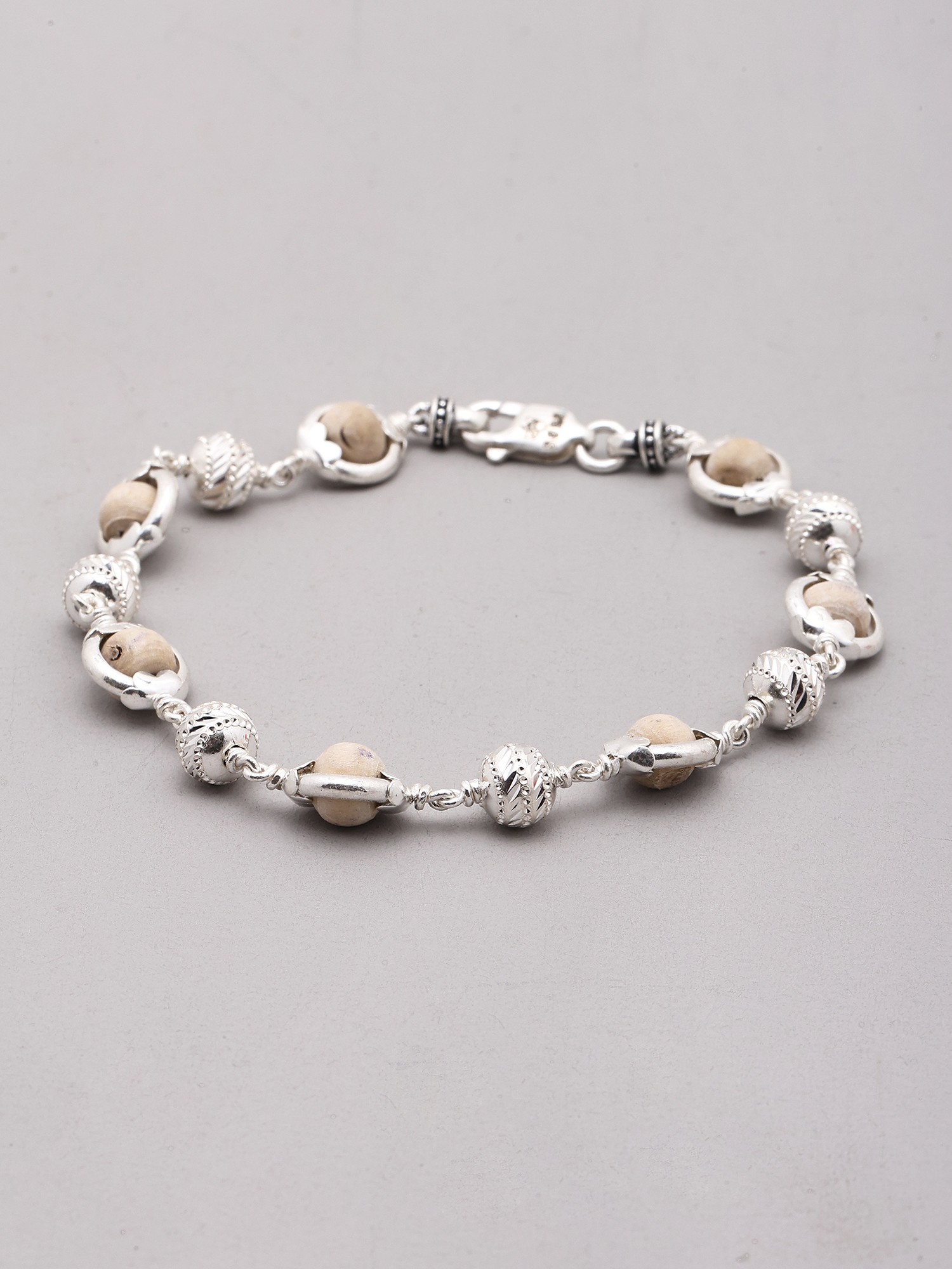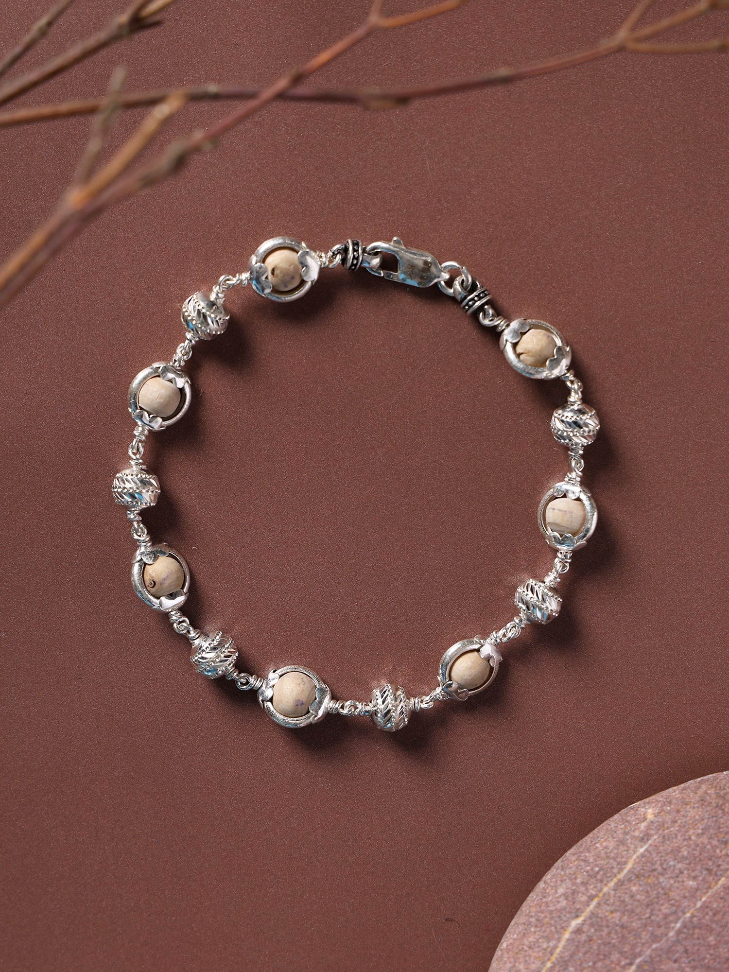 Sterling Silver Bracelet with Genuine Certified Rudraksha & Textured Silver Beads