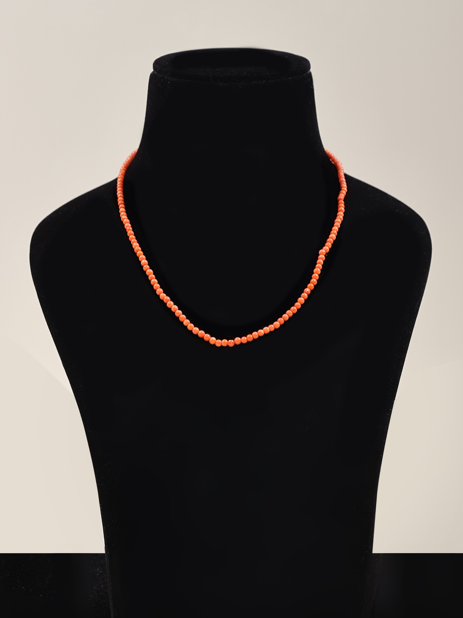This coral beaded necklace requires minimal care to maintain its brilliance. To preserve its beauty, gently wipe it clean with a soft cloth after each wear. Avoid contact with harsh chemicals and perfumes. Proper storage in a jewelry box or pouch will also prevent scratches and ensure its longevity. With a little care, this necklace will continue to delight you for years, reminding you of its timeless elegance and refined design. It's a piece that speaks of both sophistication and understated luxury, perfect for those who appreciate understated elegance.