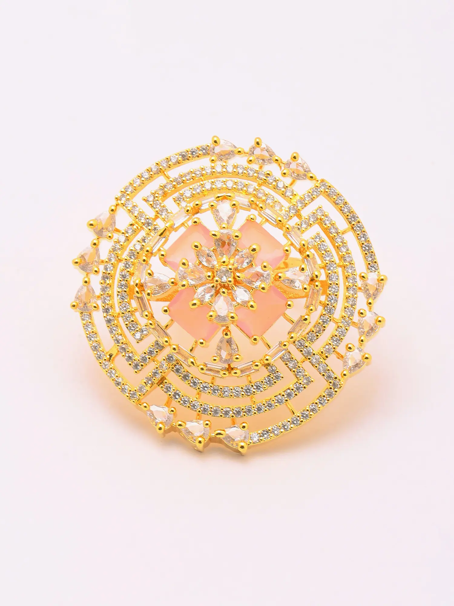 Pink Stone Studded Adjustable American-Diamond Statement Ring