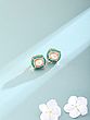At the heart of each stud lies a captivating gemstone, its facets catching the light with a subtle, enchanting glow. This central gem is embraced by a meticulously arranged border of tiny, brilliant turquoise beads, reminiscent of precious jewels. The overall form is a perfect square, measuring approximately 0.7 inches on each side, presenting a balanced and striking silhouette.