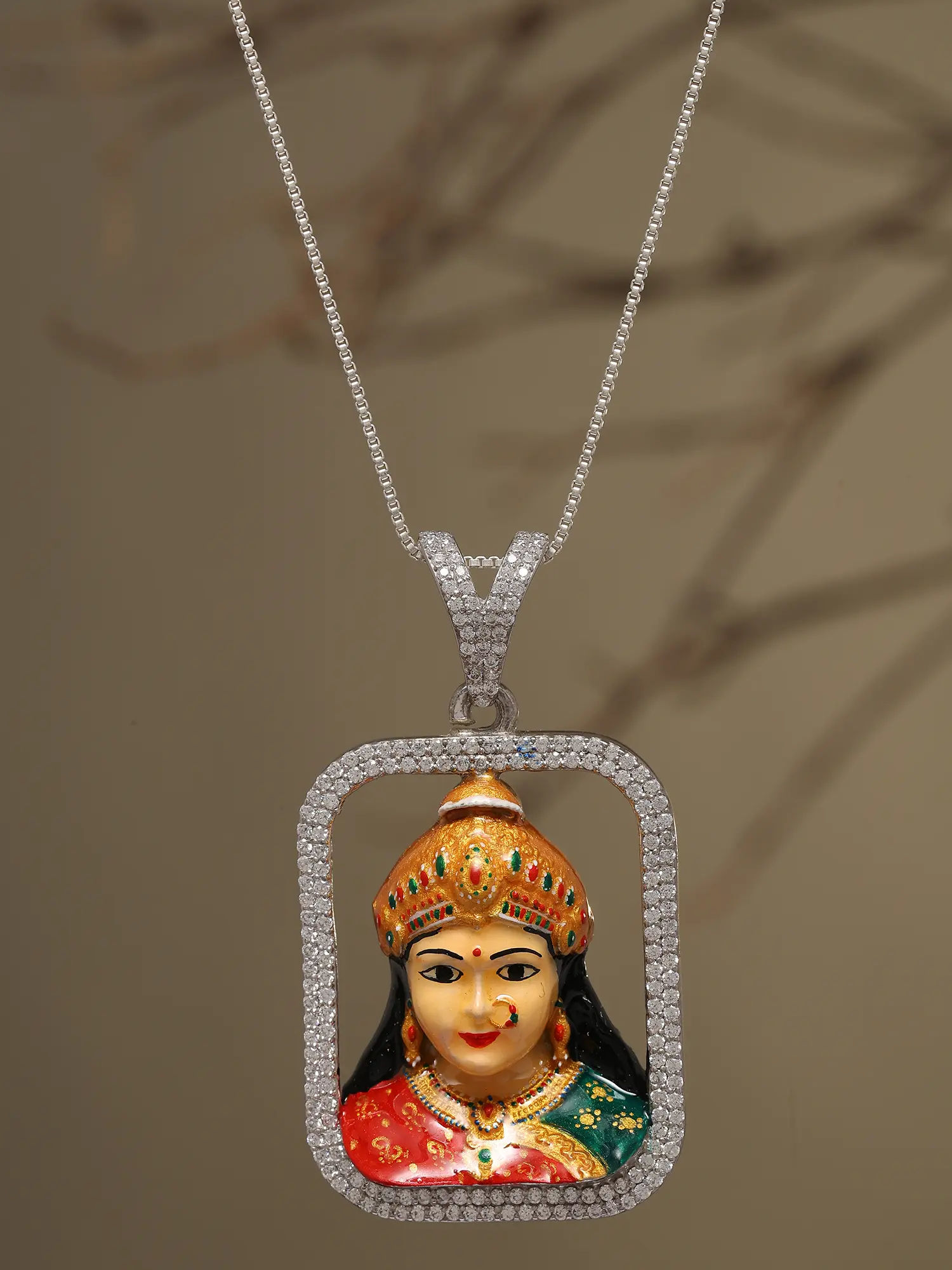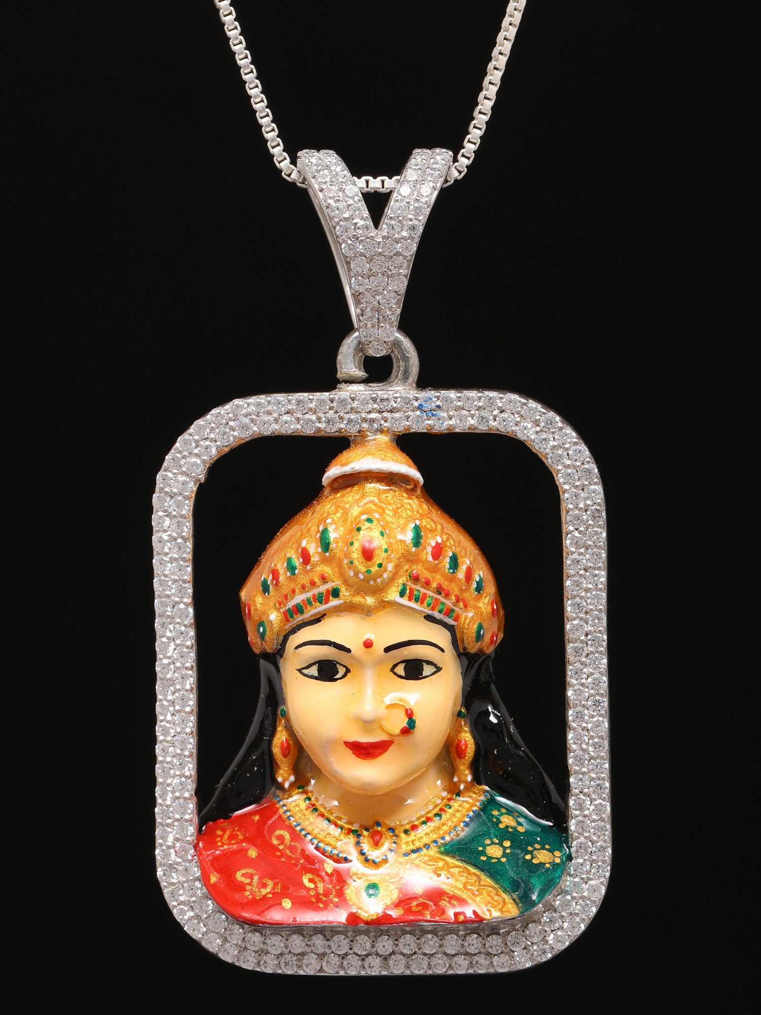 Maa Katyayani Pendant with Katyayani Yantra on Reverse (Two Sided Pendant)