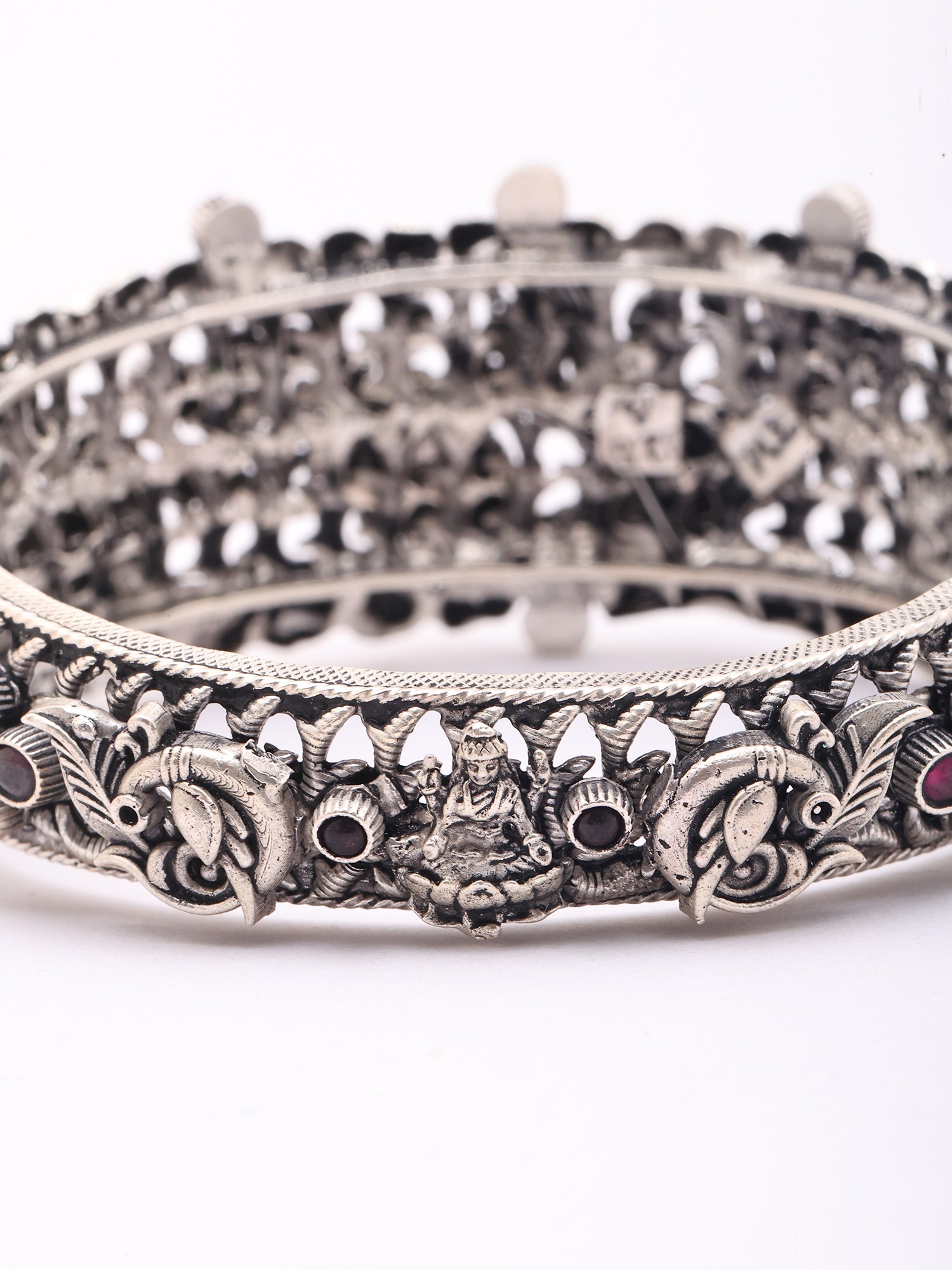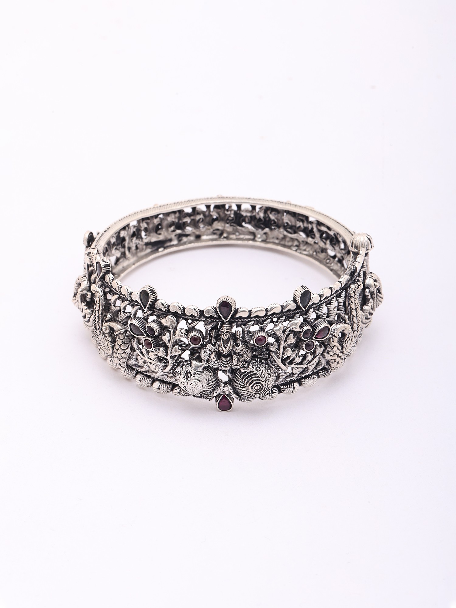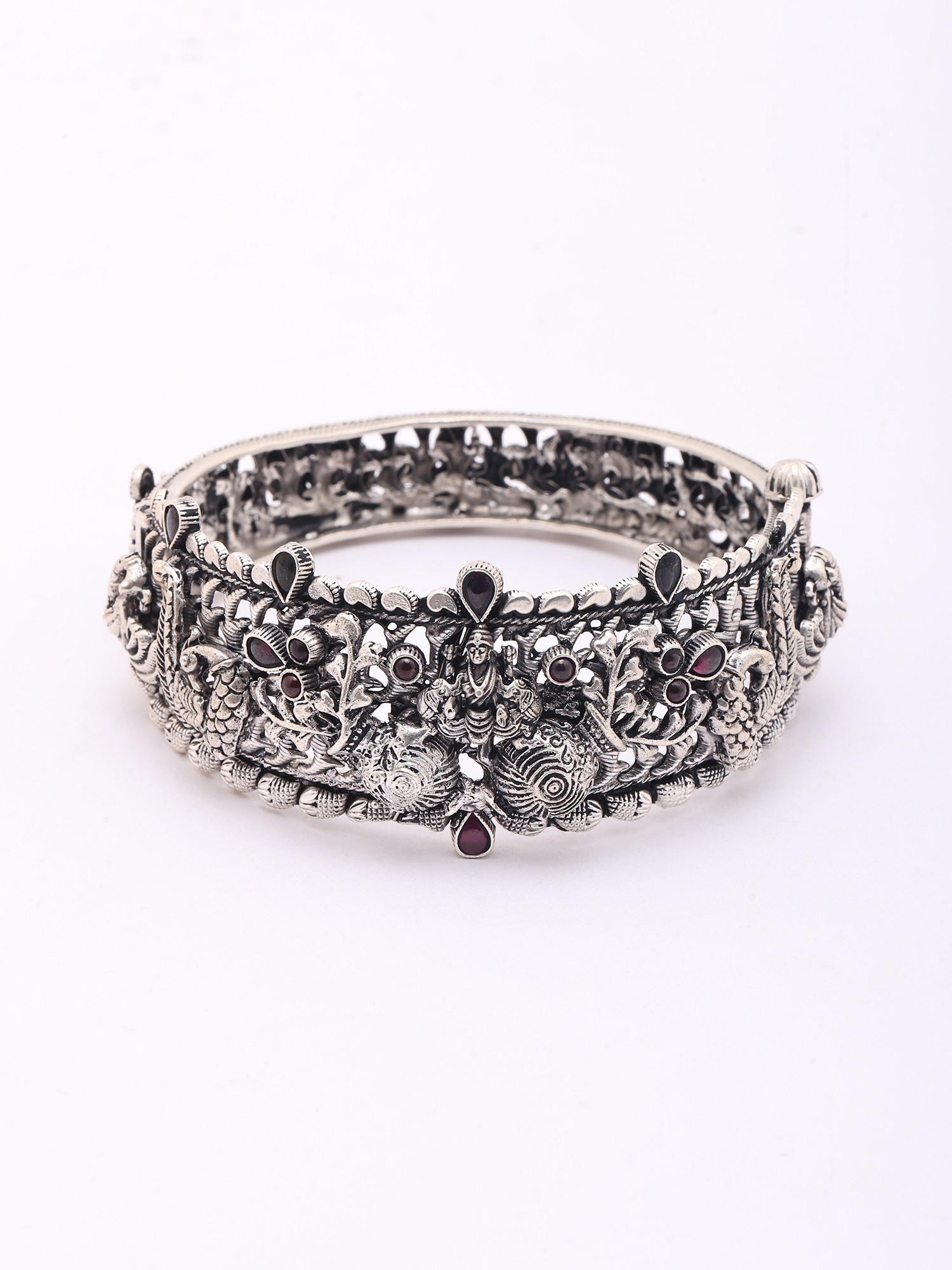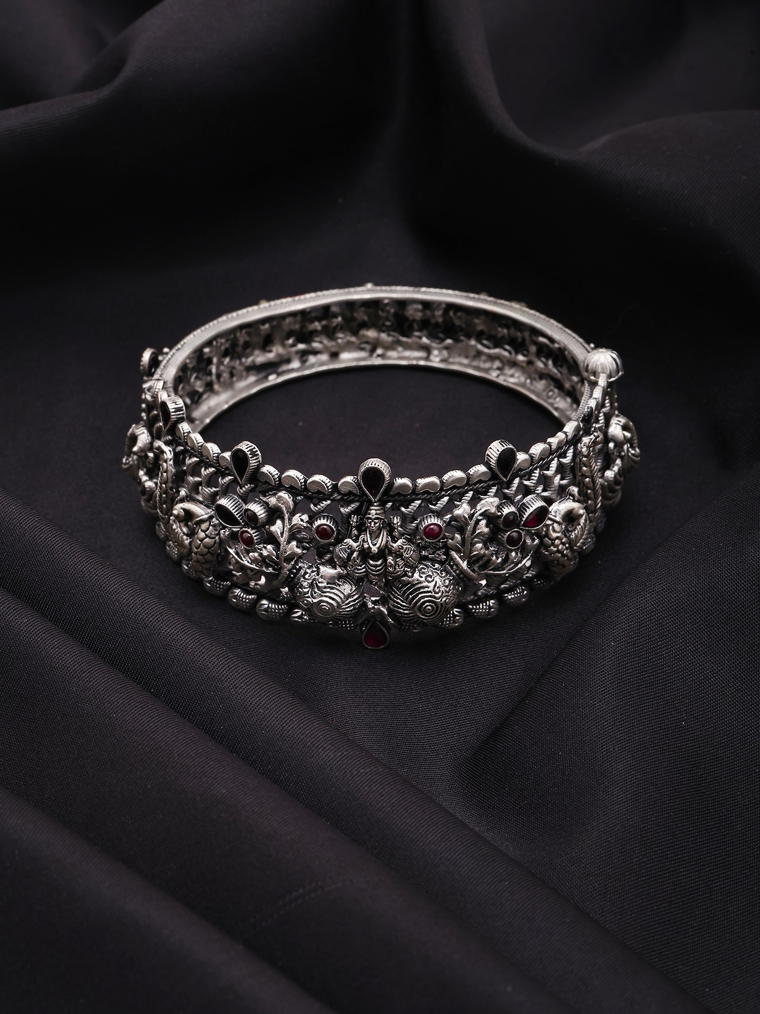 Goddess Gajalakshmi Oxidised Silver Openable Bangle