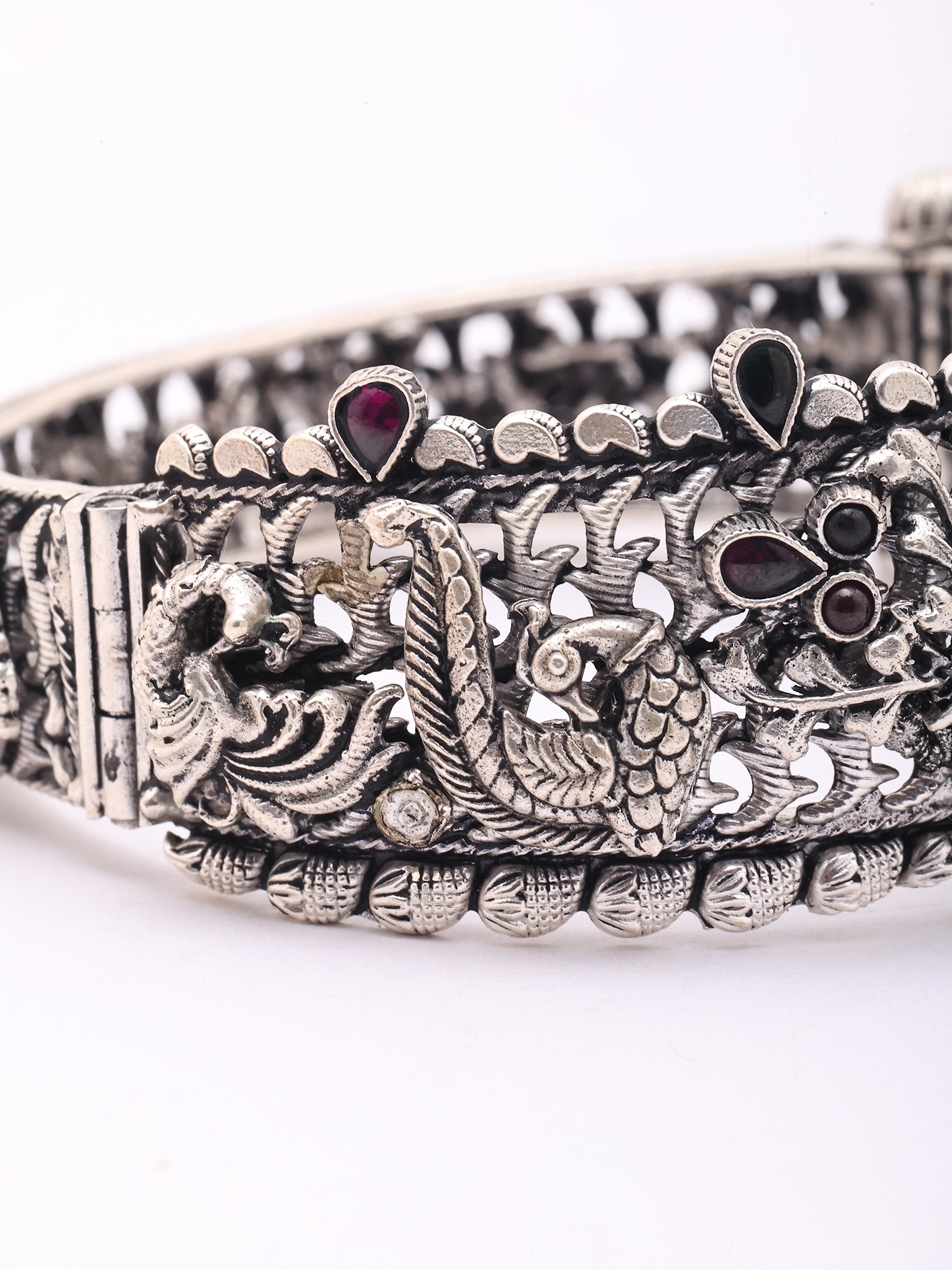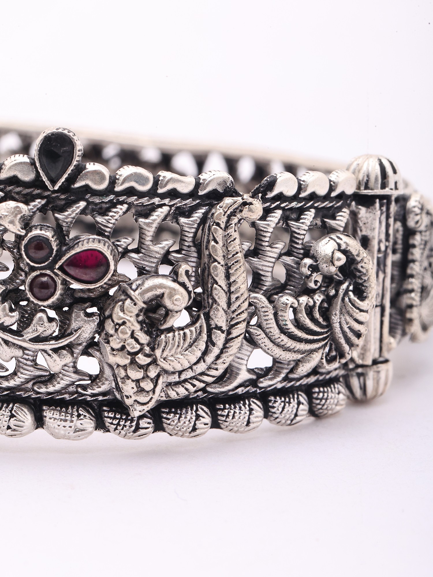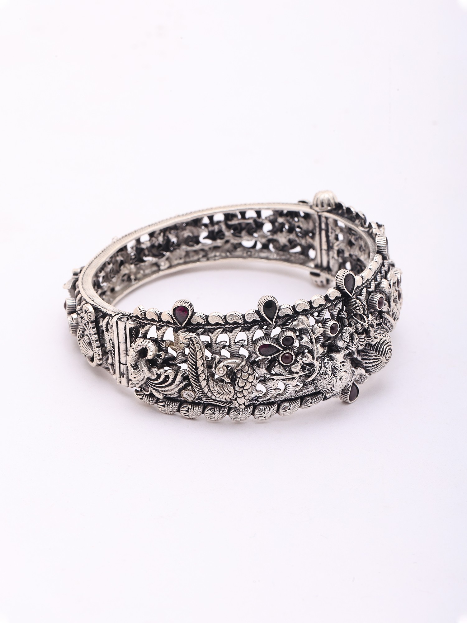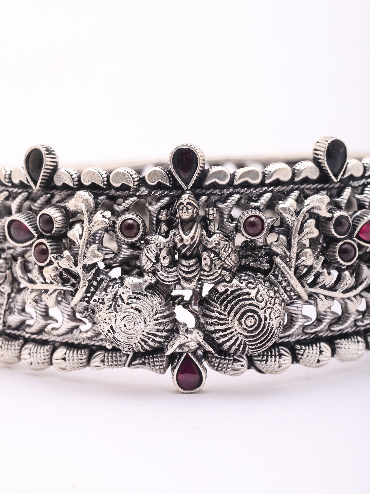 Goddess Gajalakshmi Oxidised Silver Openable Bangle