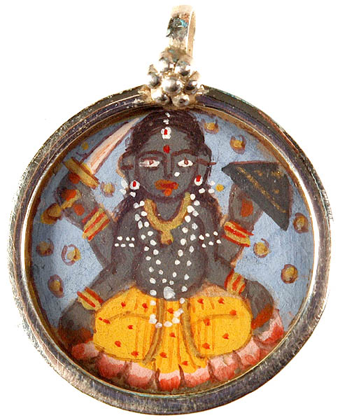 Goddess Kali Face Enamelled Sterling Silver Pendant