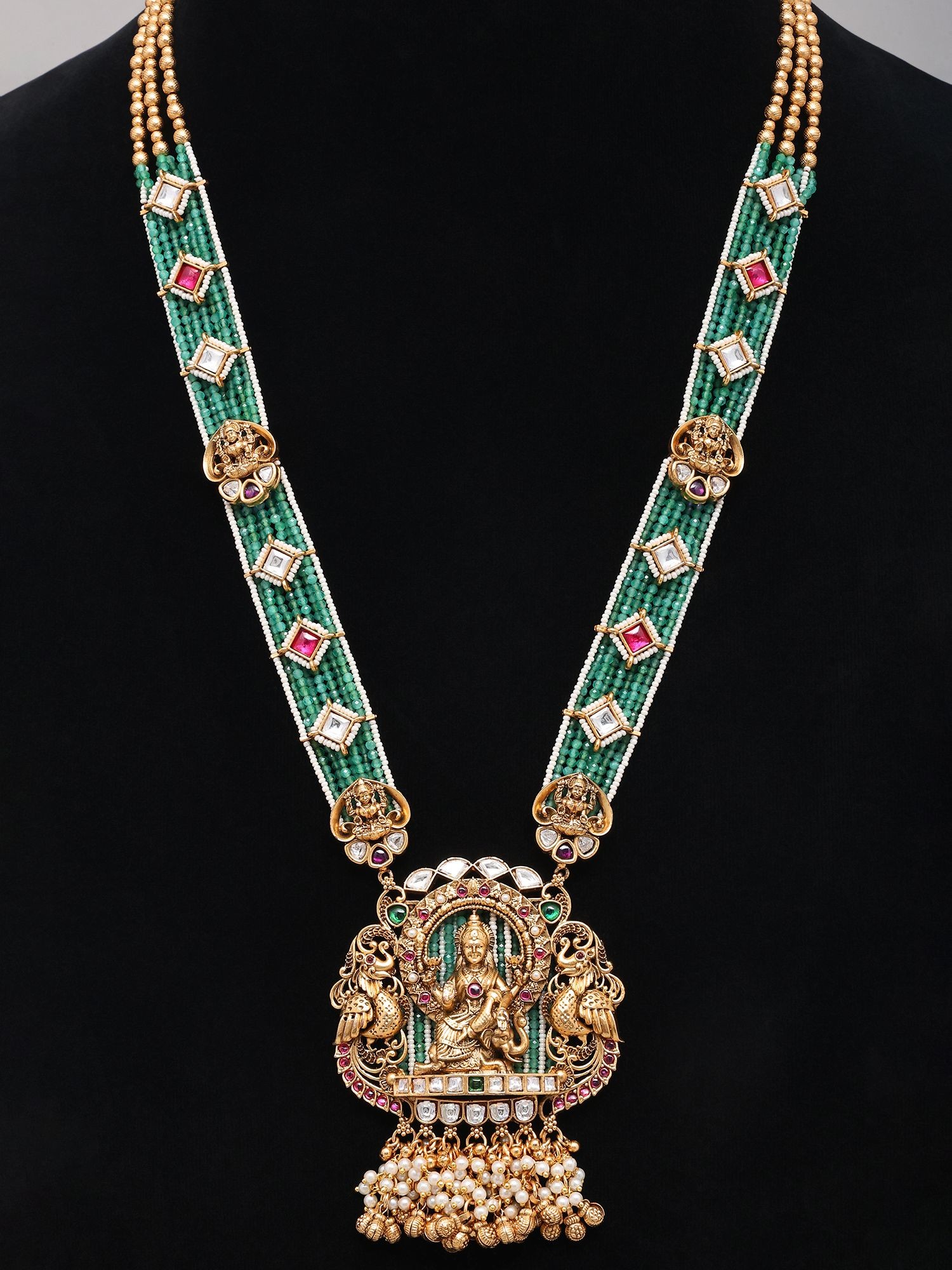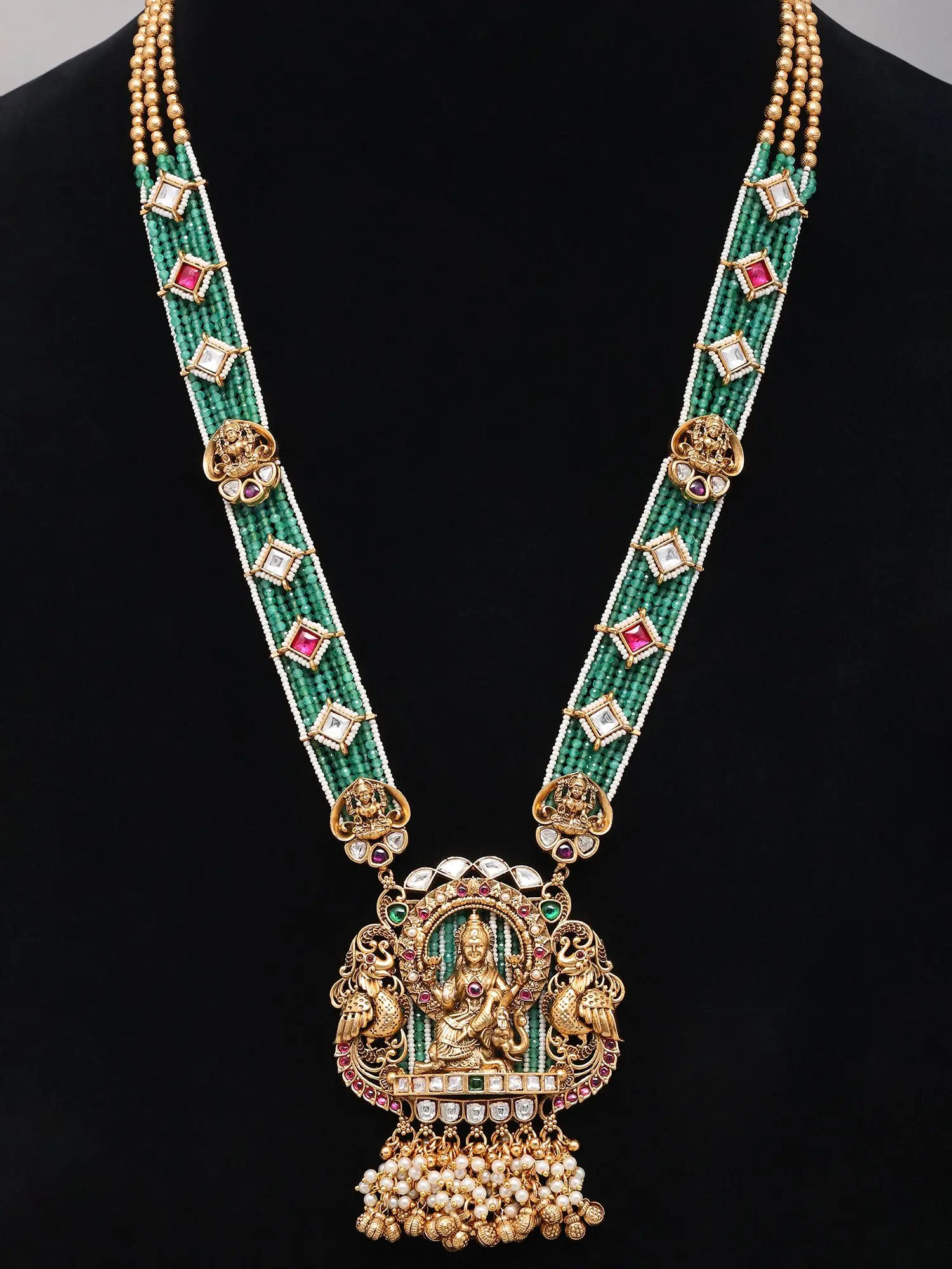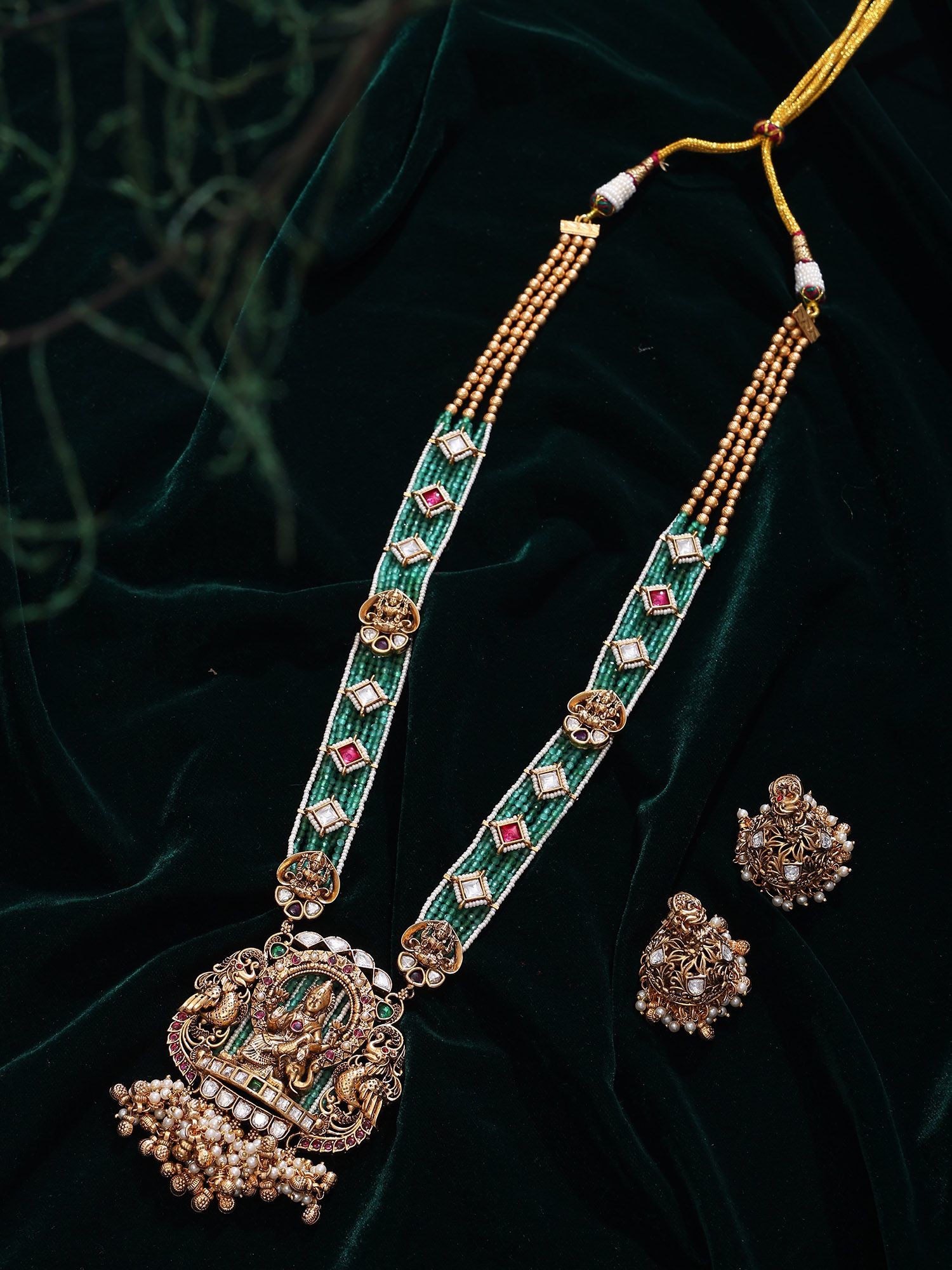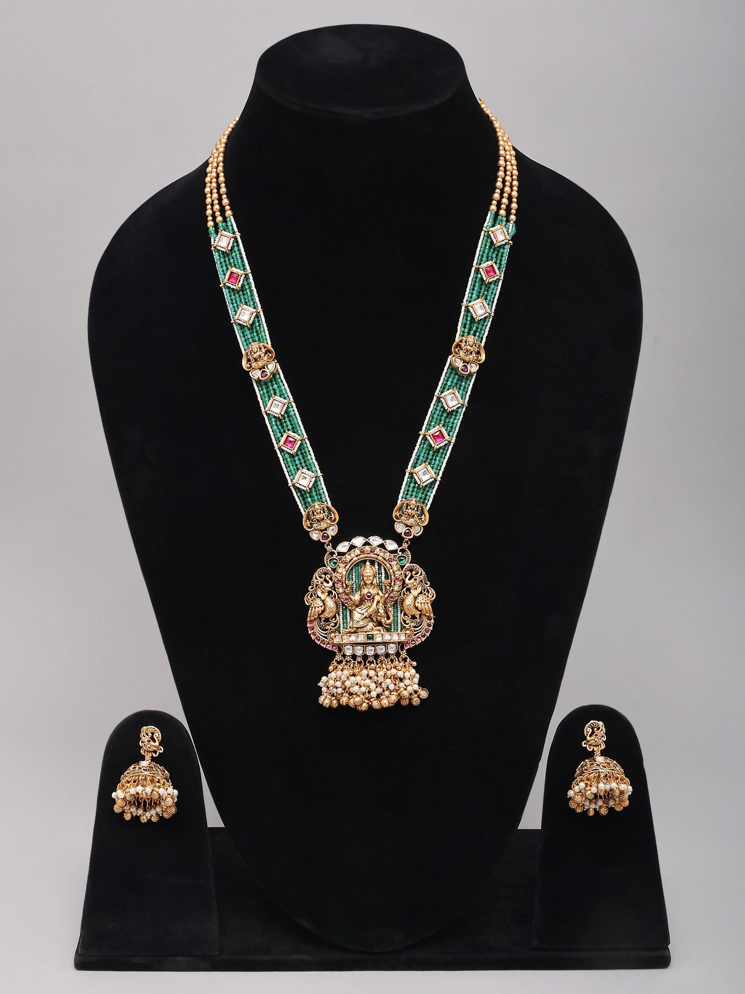 Temple Design Lord Rama Beaded Kundan Necklace and Earring Set