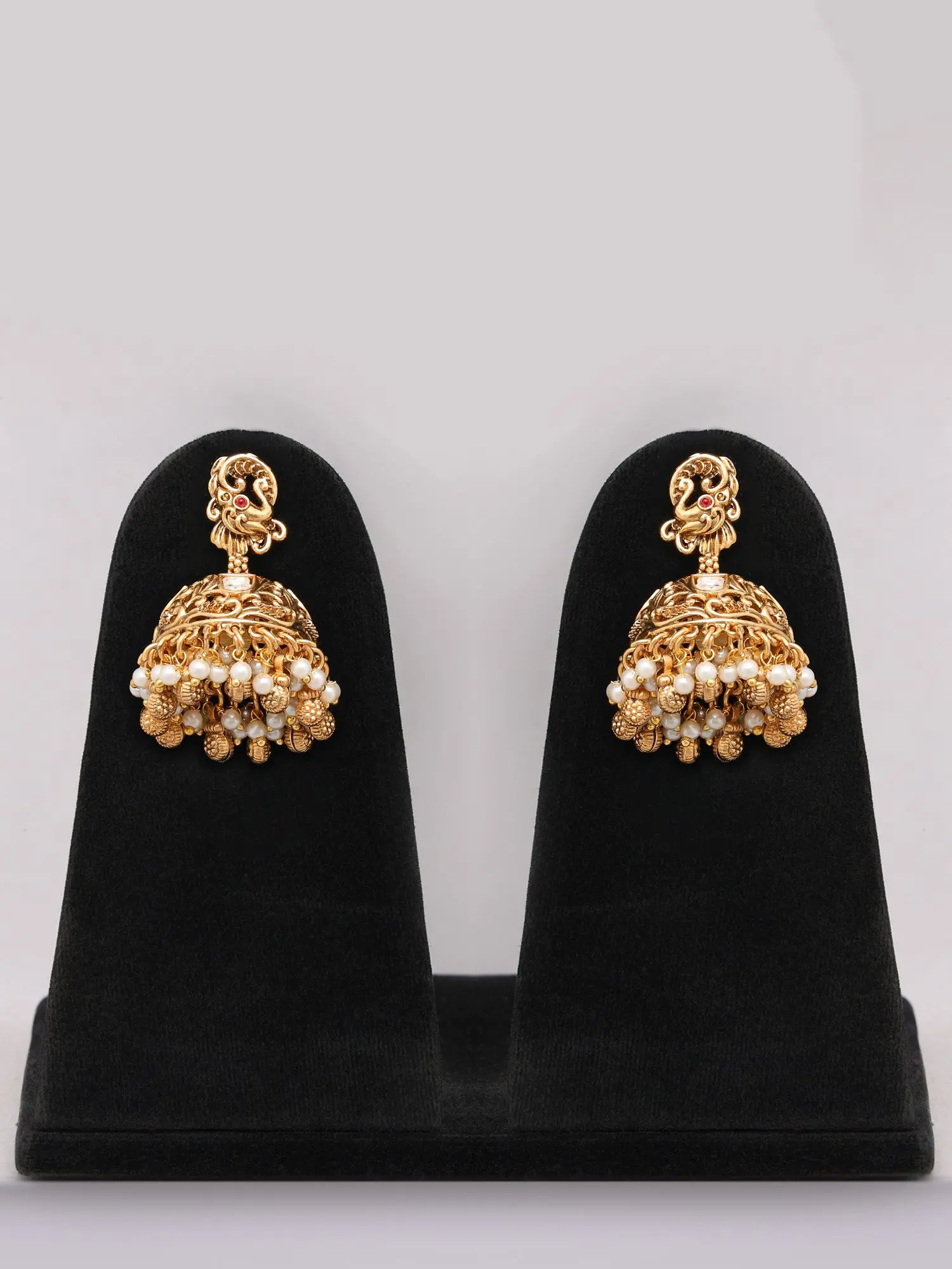 Meenakari Jhumka Earrings with Polki Stones and Pearl Drops