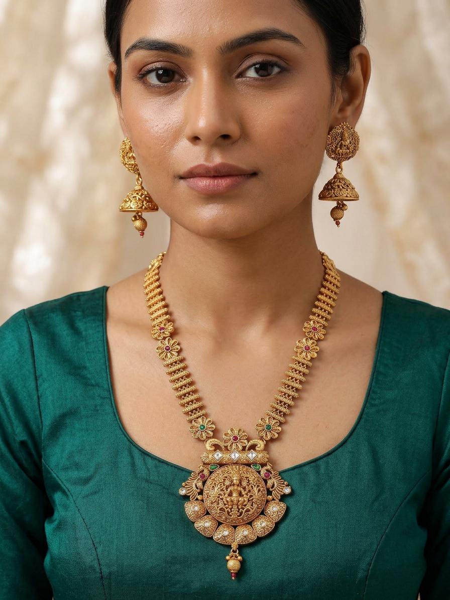 Adorn Yourself with Divine Elegance: The Lakshmi Temple Necklace Set