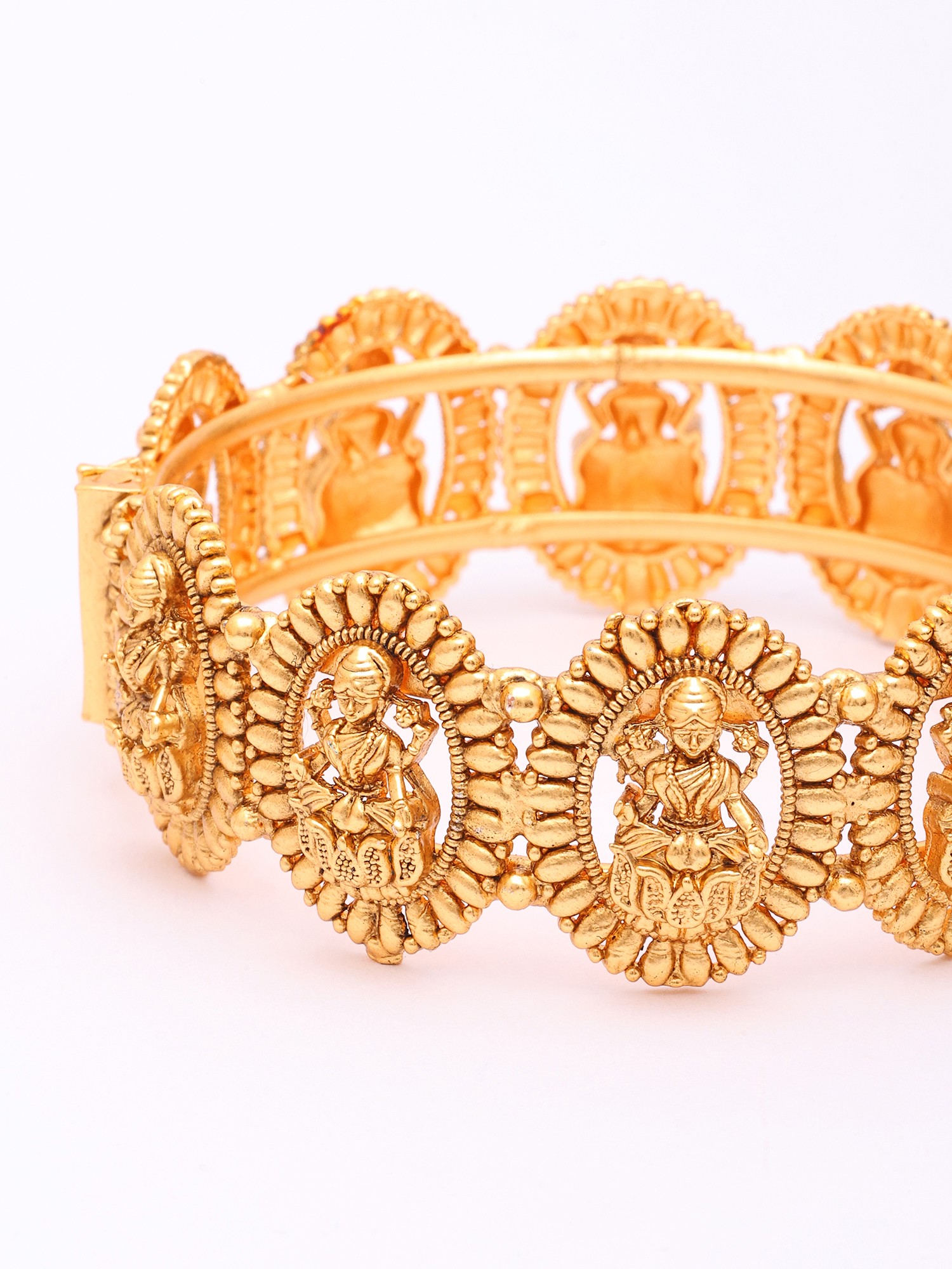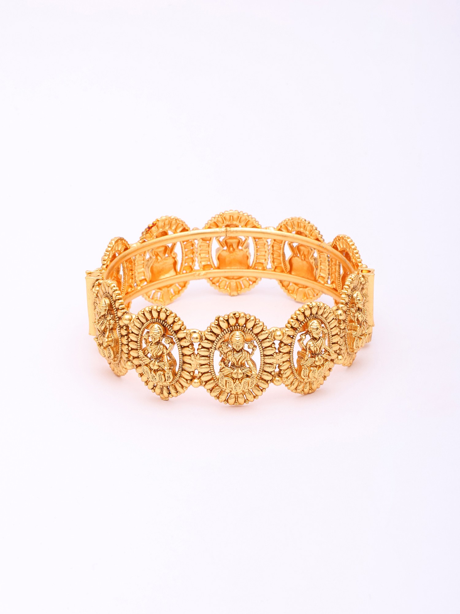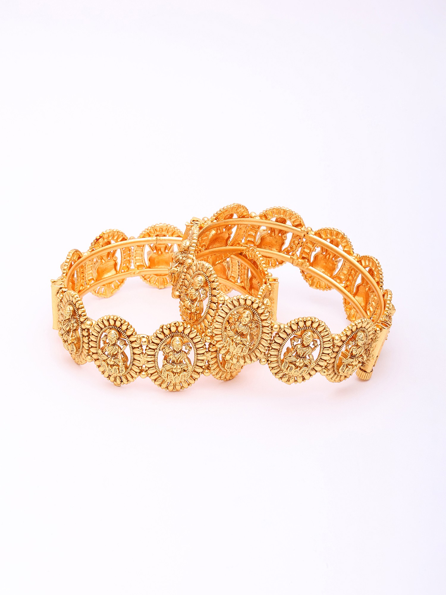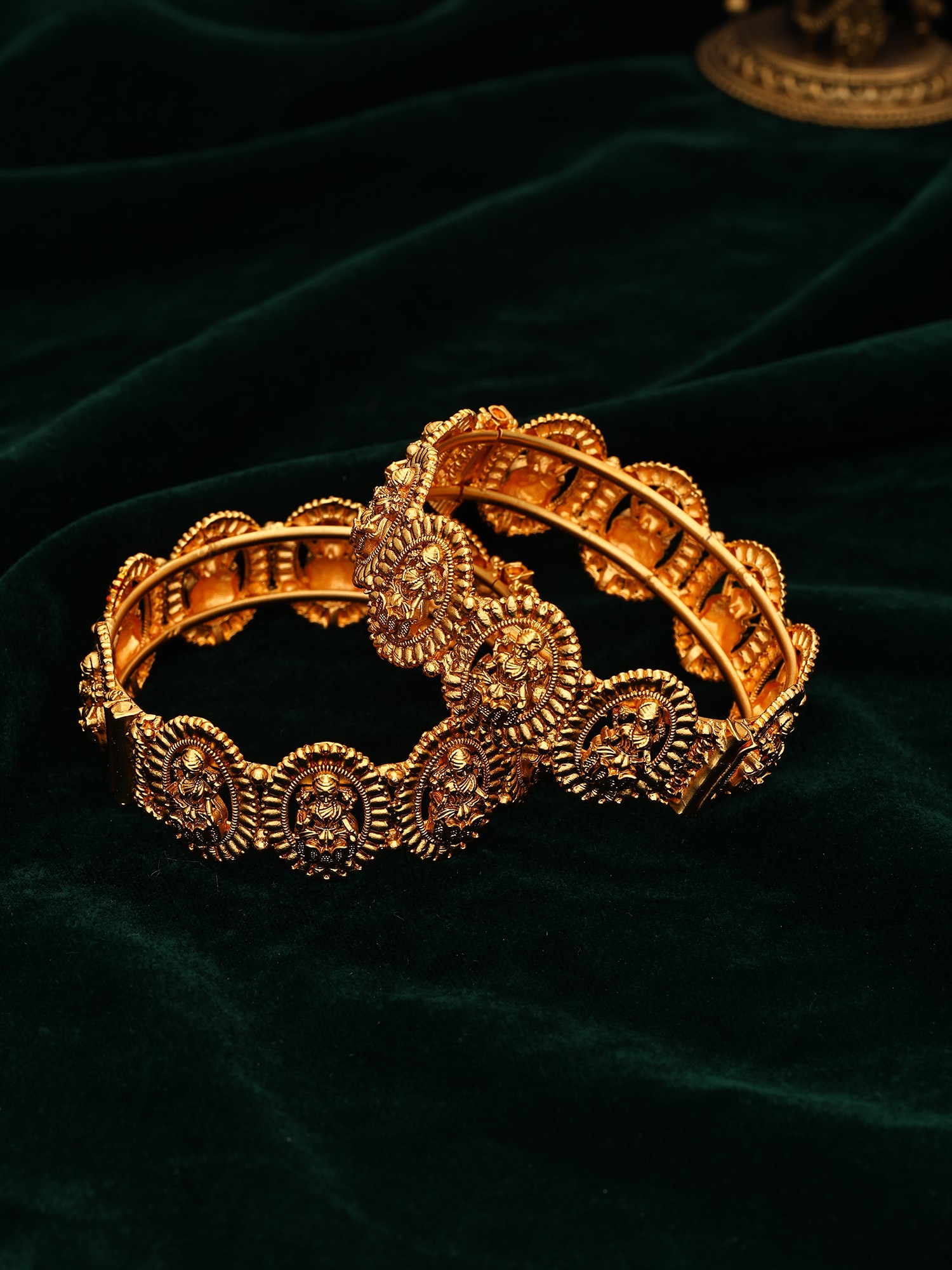 Goddess Lakshmi Openable Bangles Pair with Antique Gold Finish
