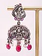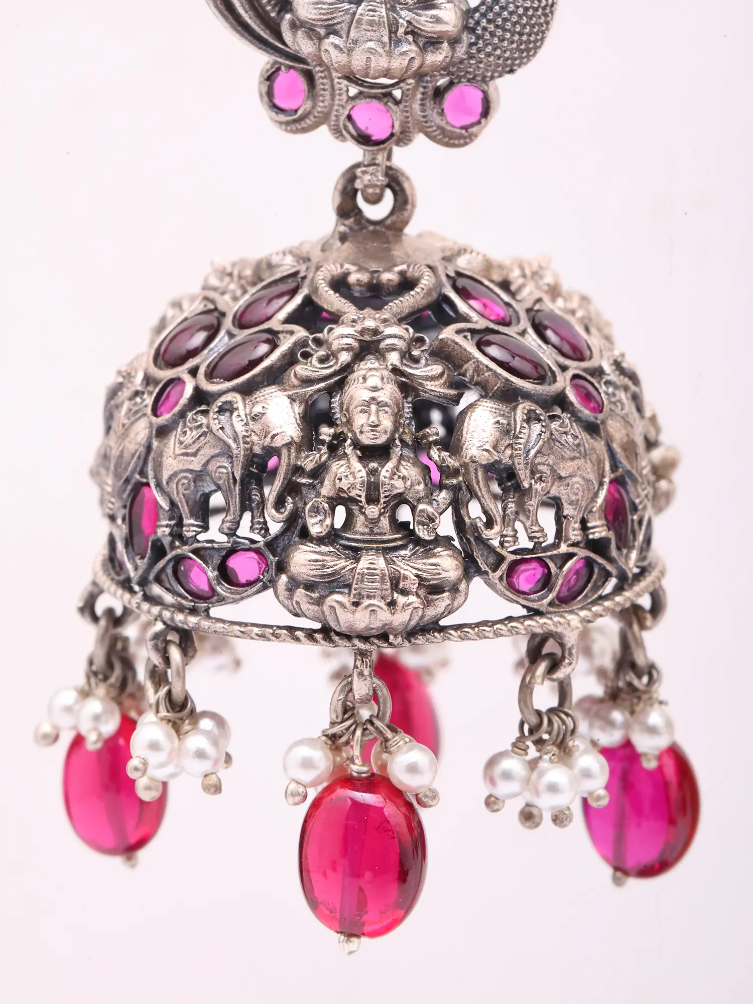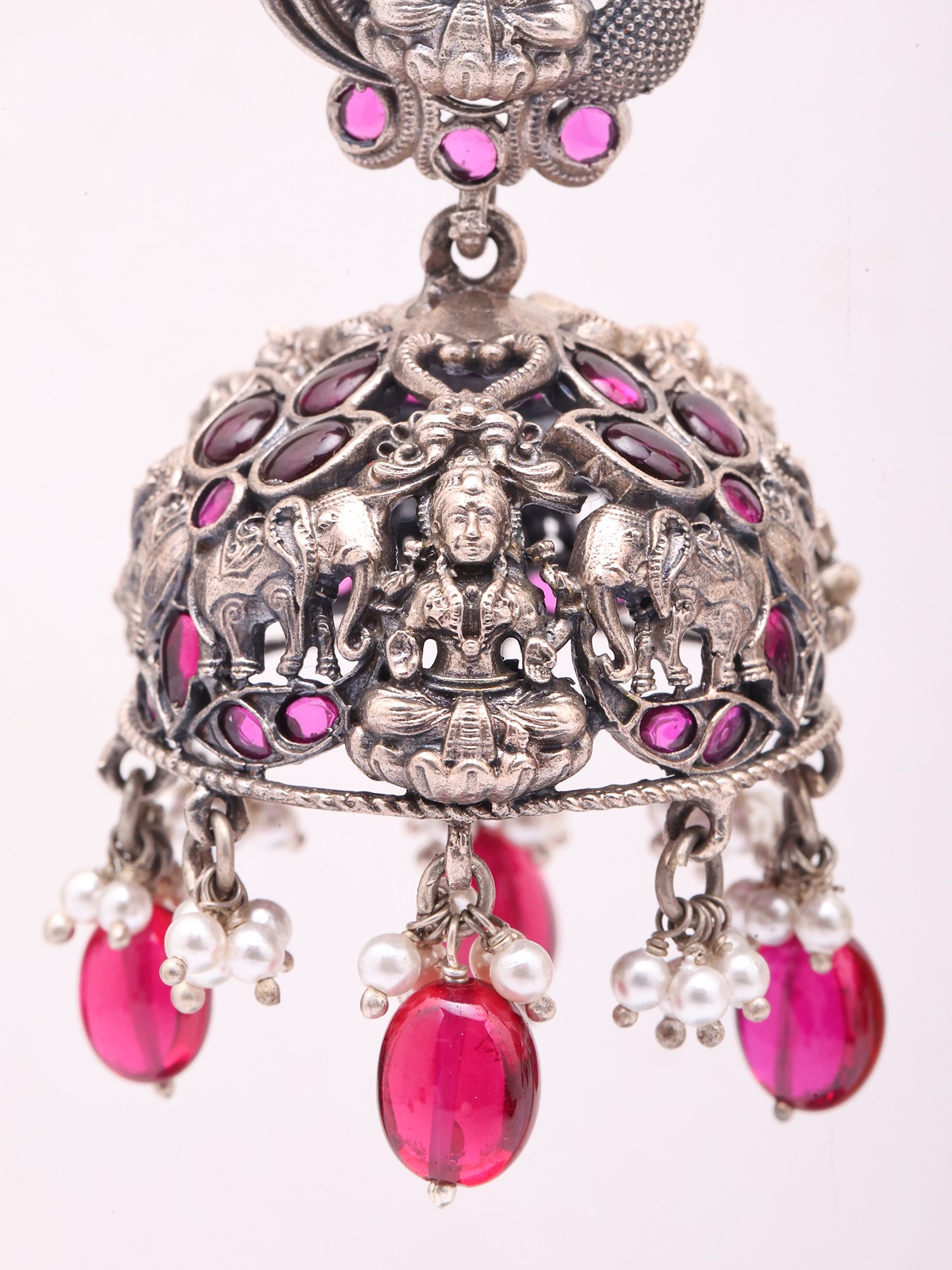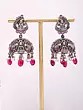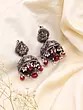 Goddess Lakshmi Oxidised Silver Jhumka Earrings with Tourmaline Beads