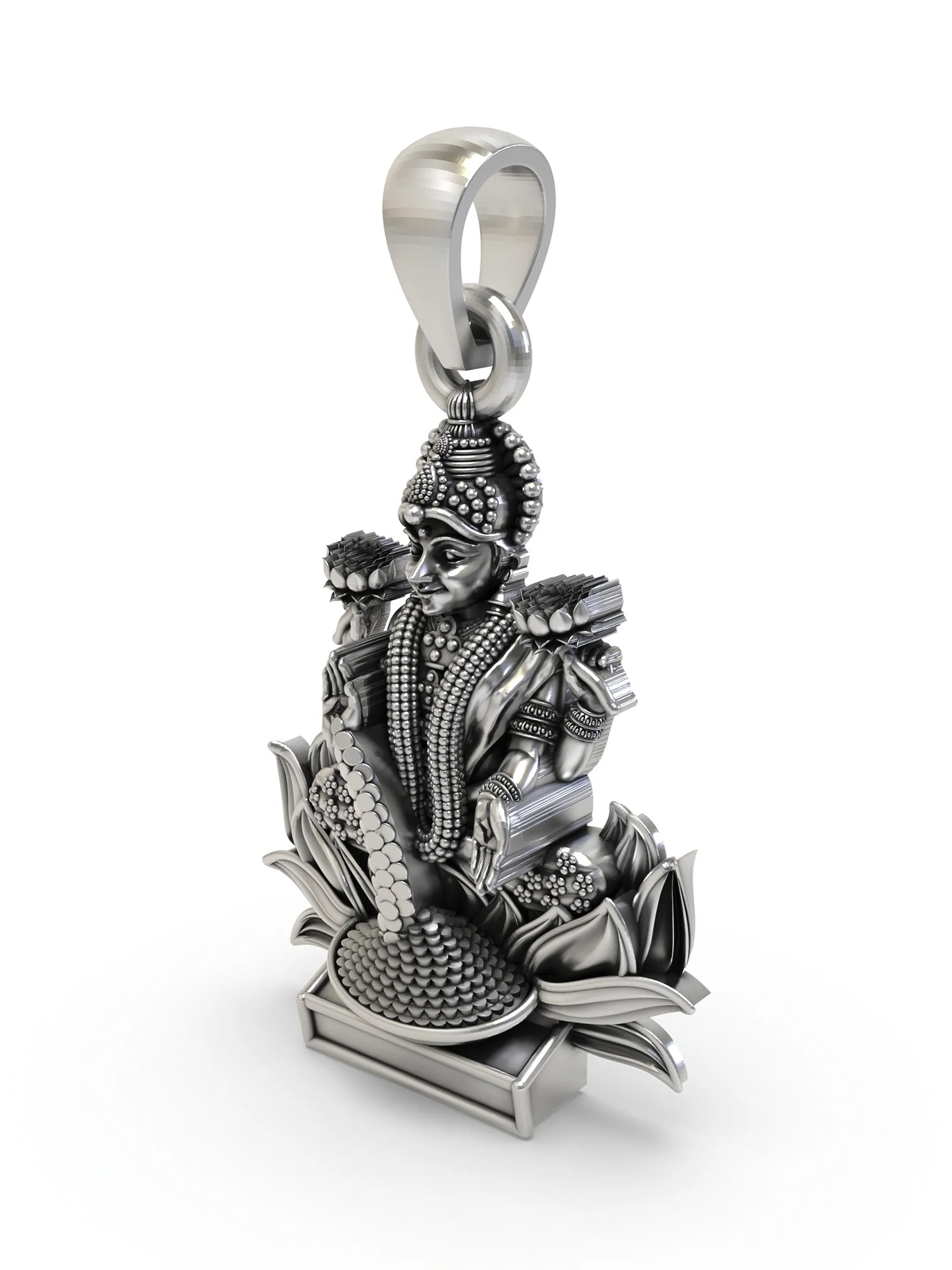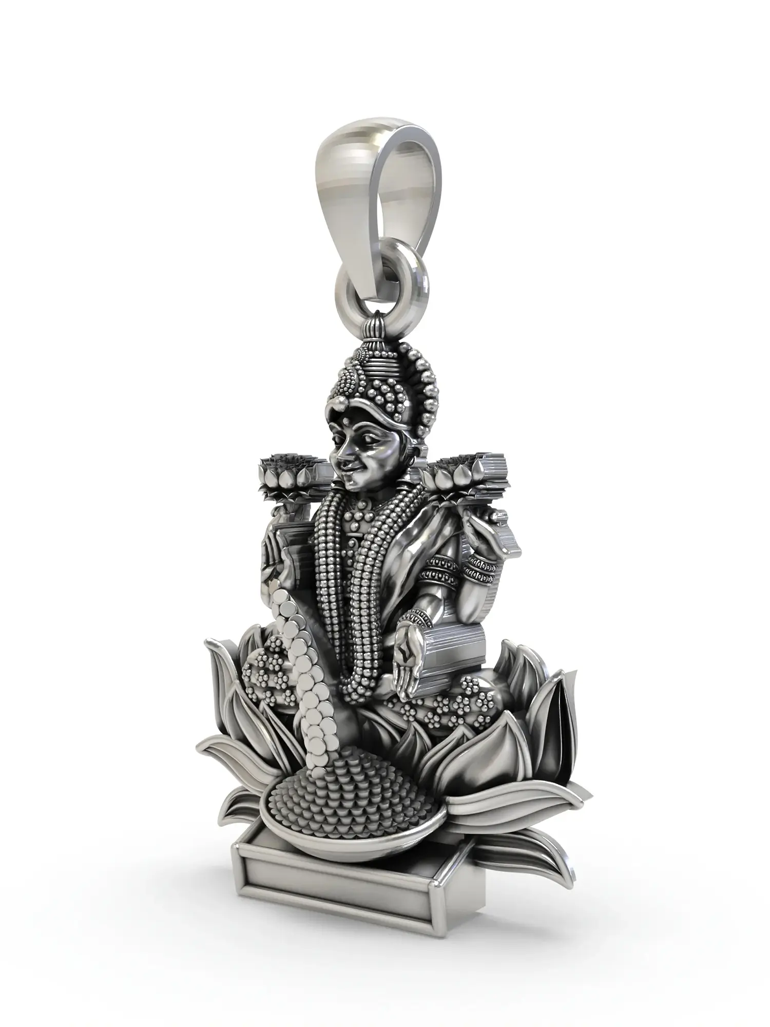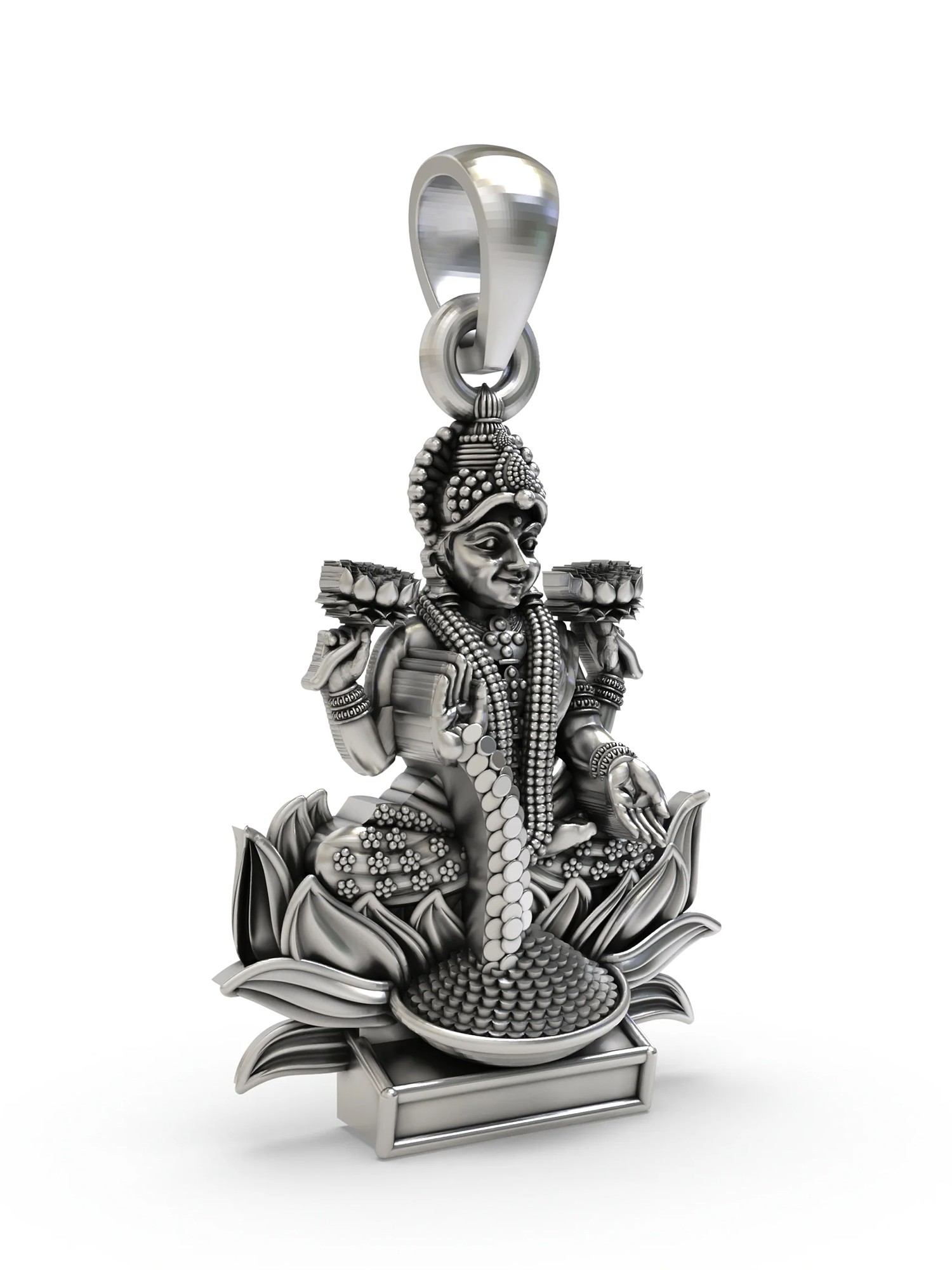 Temple-Inspired Goddess Lakshmi Sterling Silver Pendant