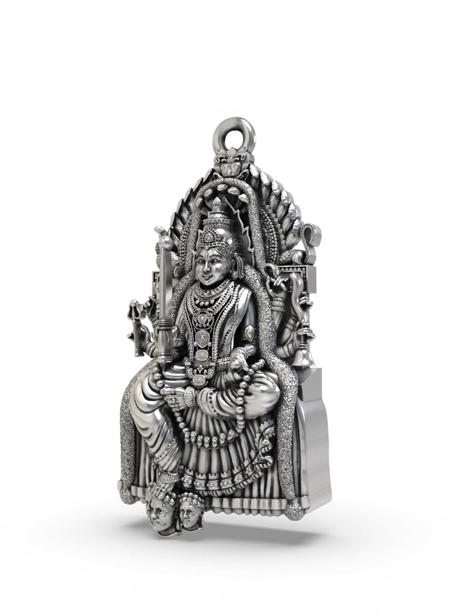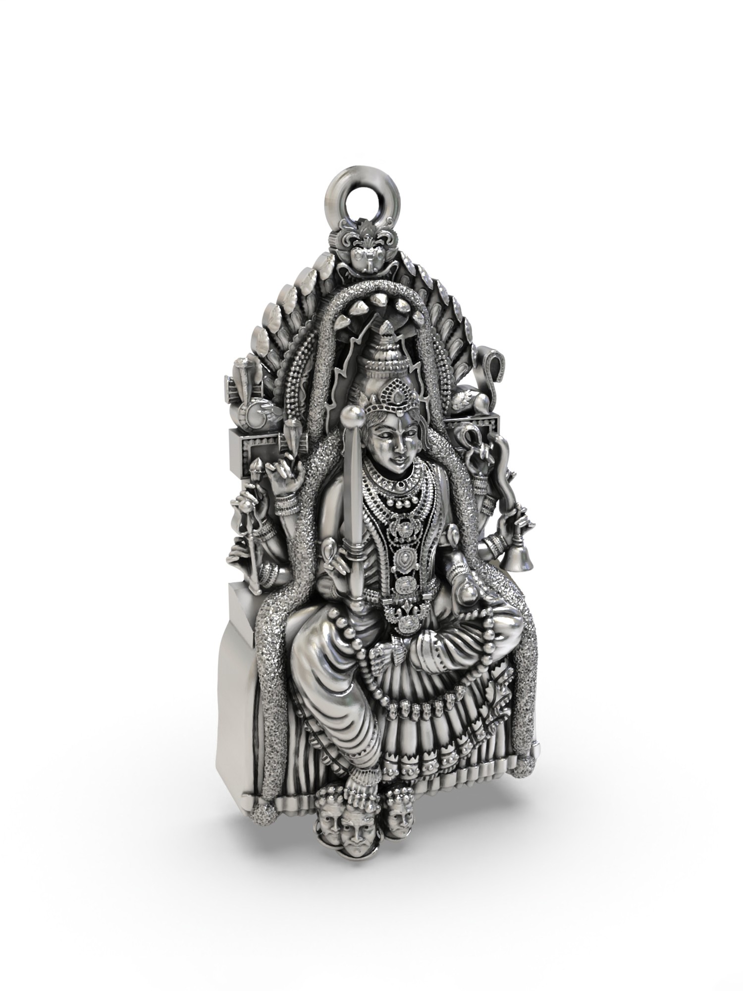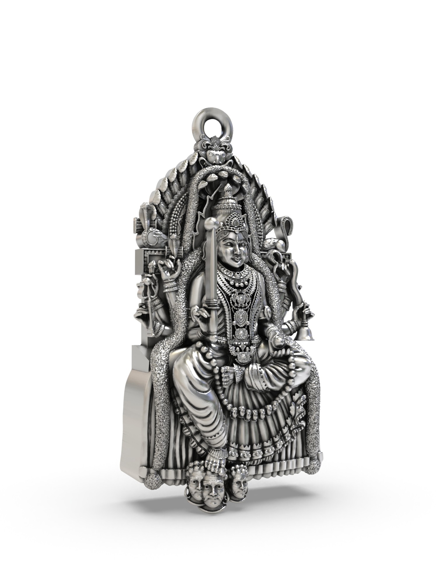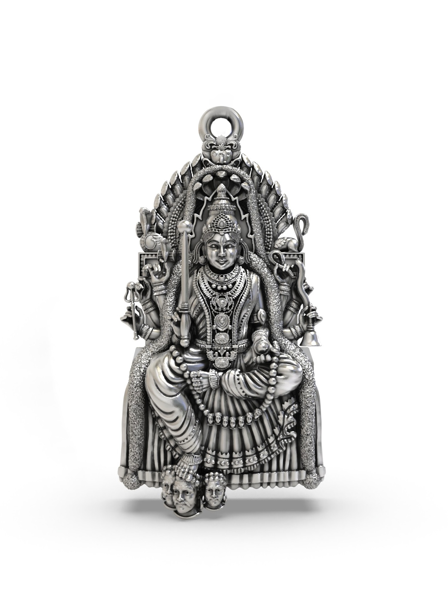 Sterling Silver Goddess Mookambika (Rare Goddess of India) Pendant