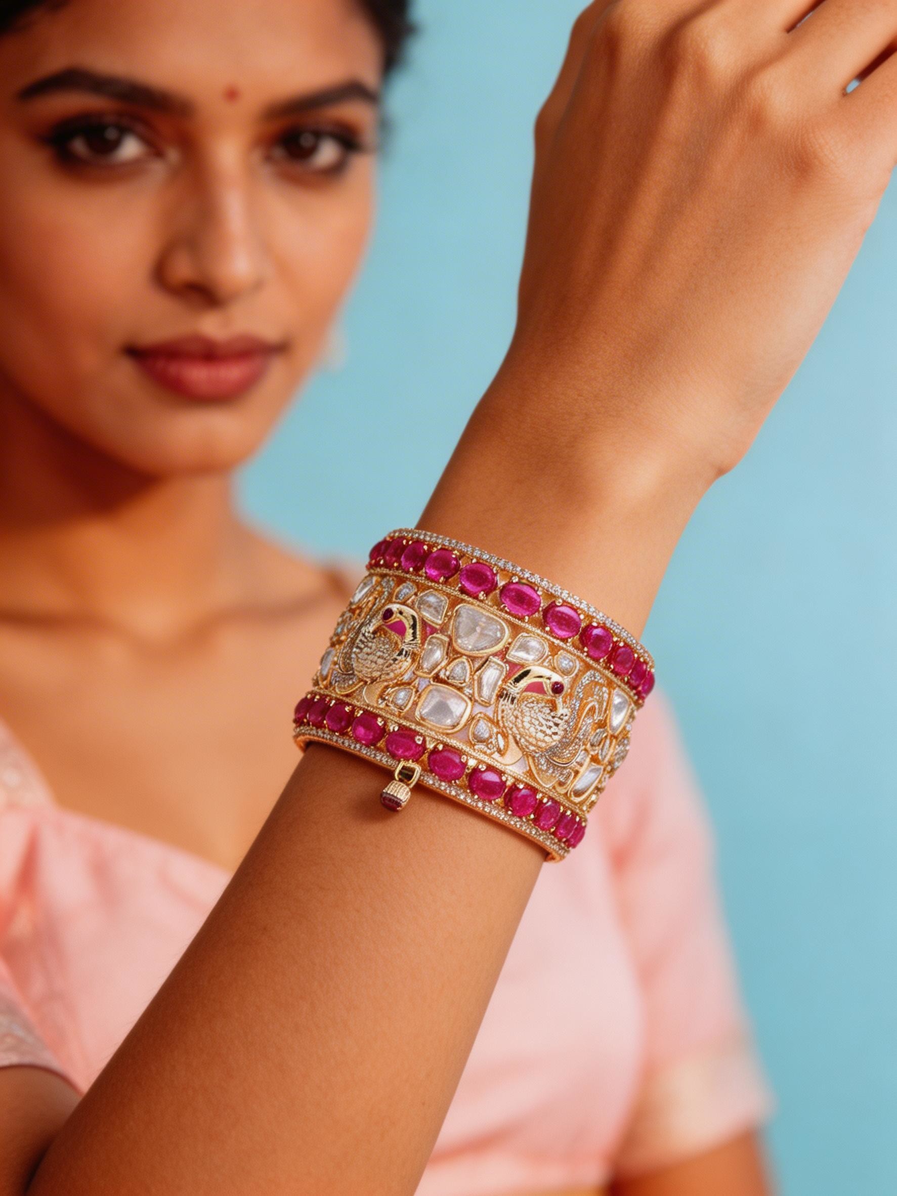 Openable Bangles: Polki Stones and Emeralds in Rajwadi Style