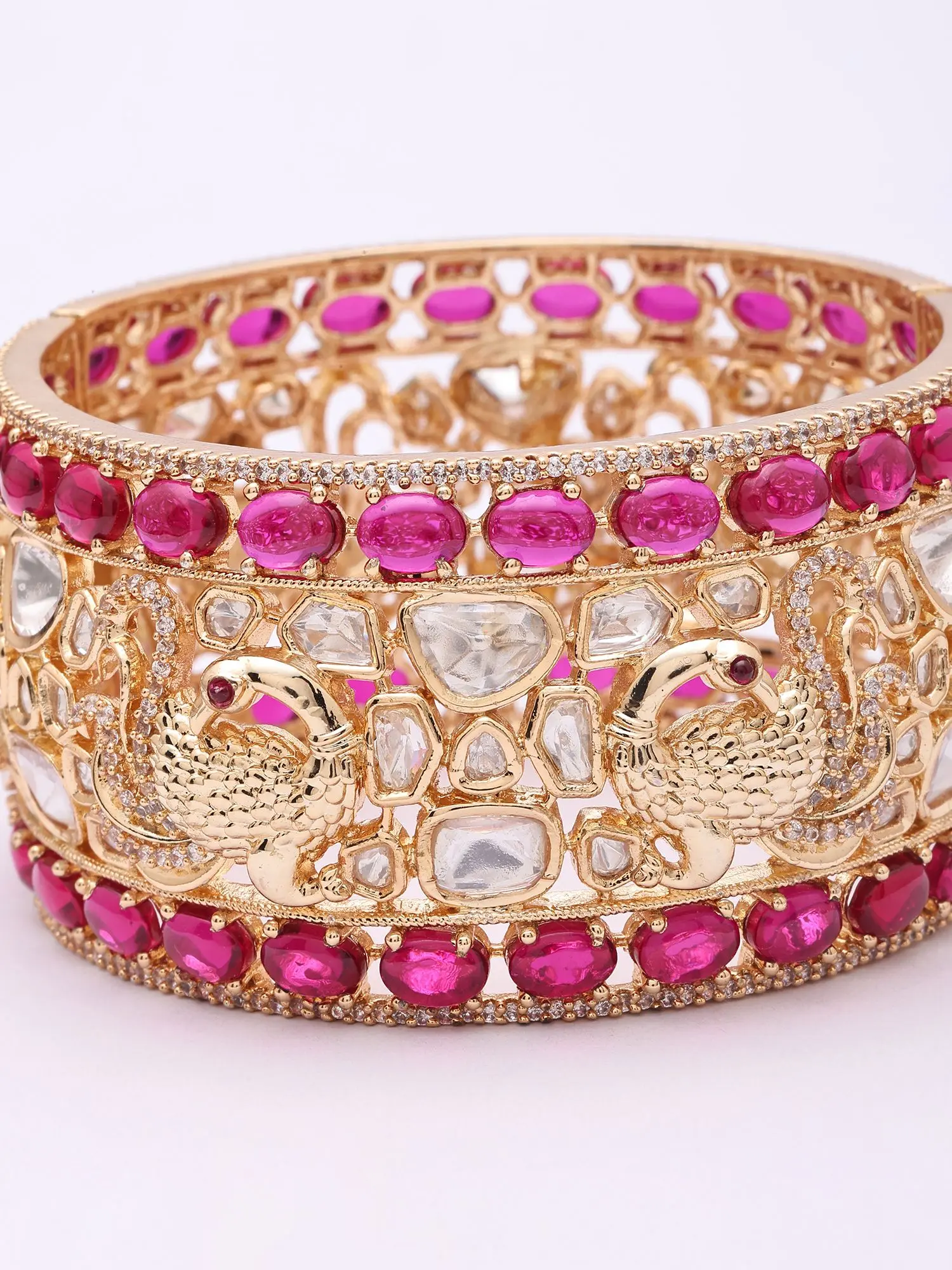 Pink Gemstone Openable Bangles with American Diamond Accents (Pair)