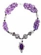 Indulge in the mesmerizing beauty of this exquisite necklace, a captivating blend of contrasting elements harmoniously intertwined. The necklace showcases a lavish array of amethyst chips, meticulously arranged to create a rich, textured effect that drapes elegantly around the neckline. The vibrant lavender hues of the amethyst evoke a sense of tranquility and sophistication, promising to elevate any ensemble with a touch of regal charm. This piece is not just an accessory; it's a statement. It speaks of a refined taste and an appreciation for unique, handcrafted artistry. Whether you're attending a formal event or simply adding a touch of glamour to your everyday attire, this necklace is sure to turn heads and spark conversations.