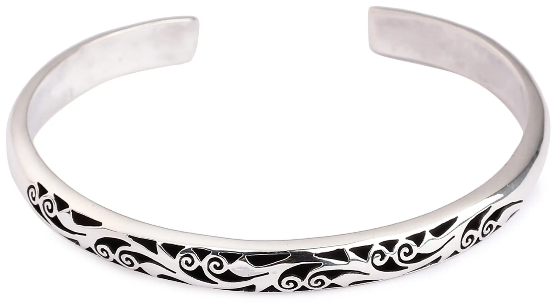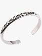 The sterling silver used in this bracelet offers a luminous sheen and exceptional durability, ensuring that this piece will remain a cherished accessory for years to come. The polished surface beautifully complements the dark, recessed areas of the grapevine design, creating a striking contrast that enhances the depth and detail of the pattern. This intentional contrast gives the intricate artwork a sense of dimension, making it truly stand out. The open cuff style allows for easy adjustment, ensuring a comfortable and secure fit for a wide range of wrist sizes. This thoughtful design element adds to the bracelet's wearability and versatility, making it a perfect choice for everyday wear or special occasions. ––––––––––––––––––––