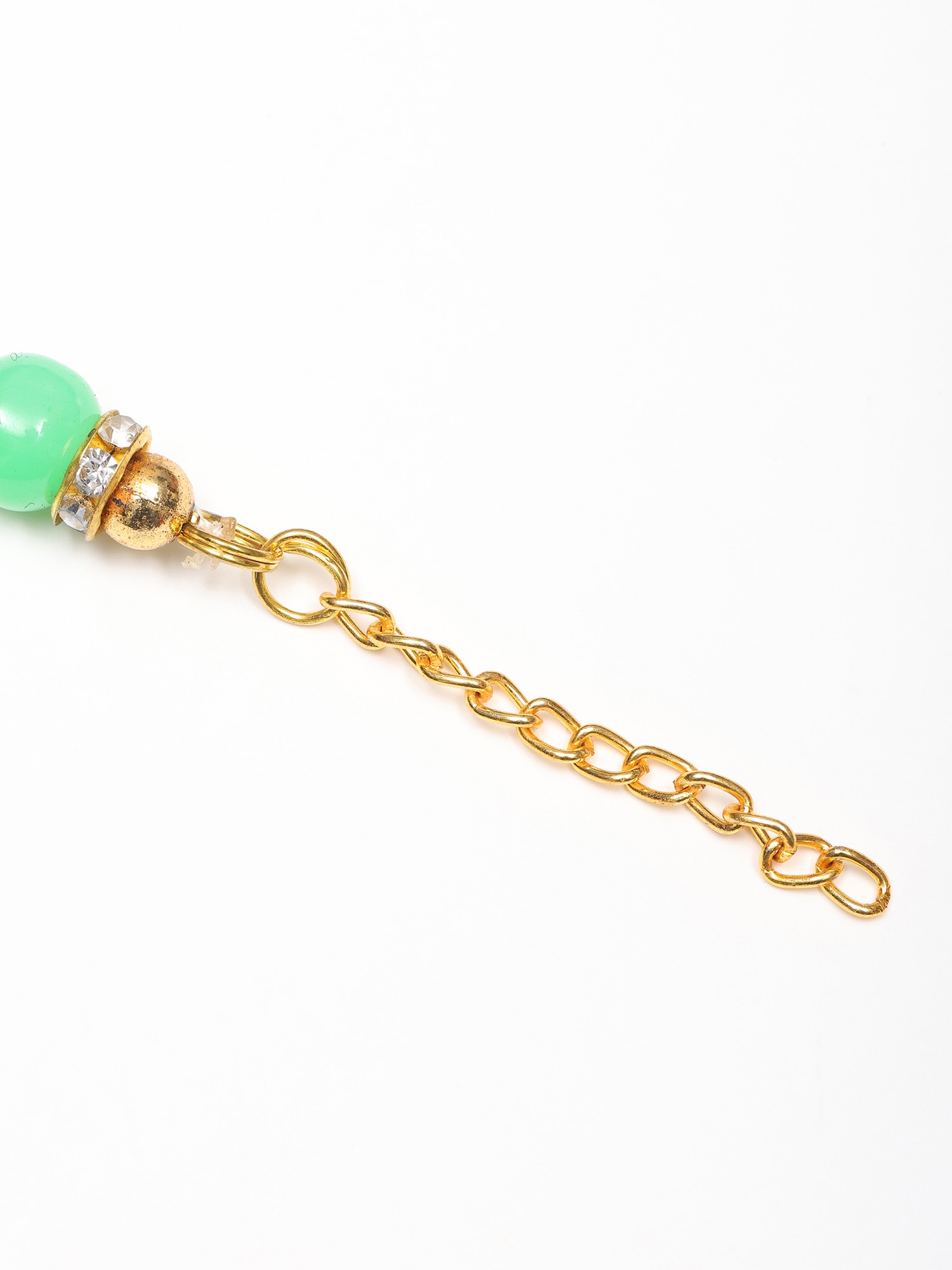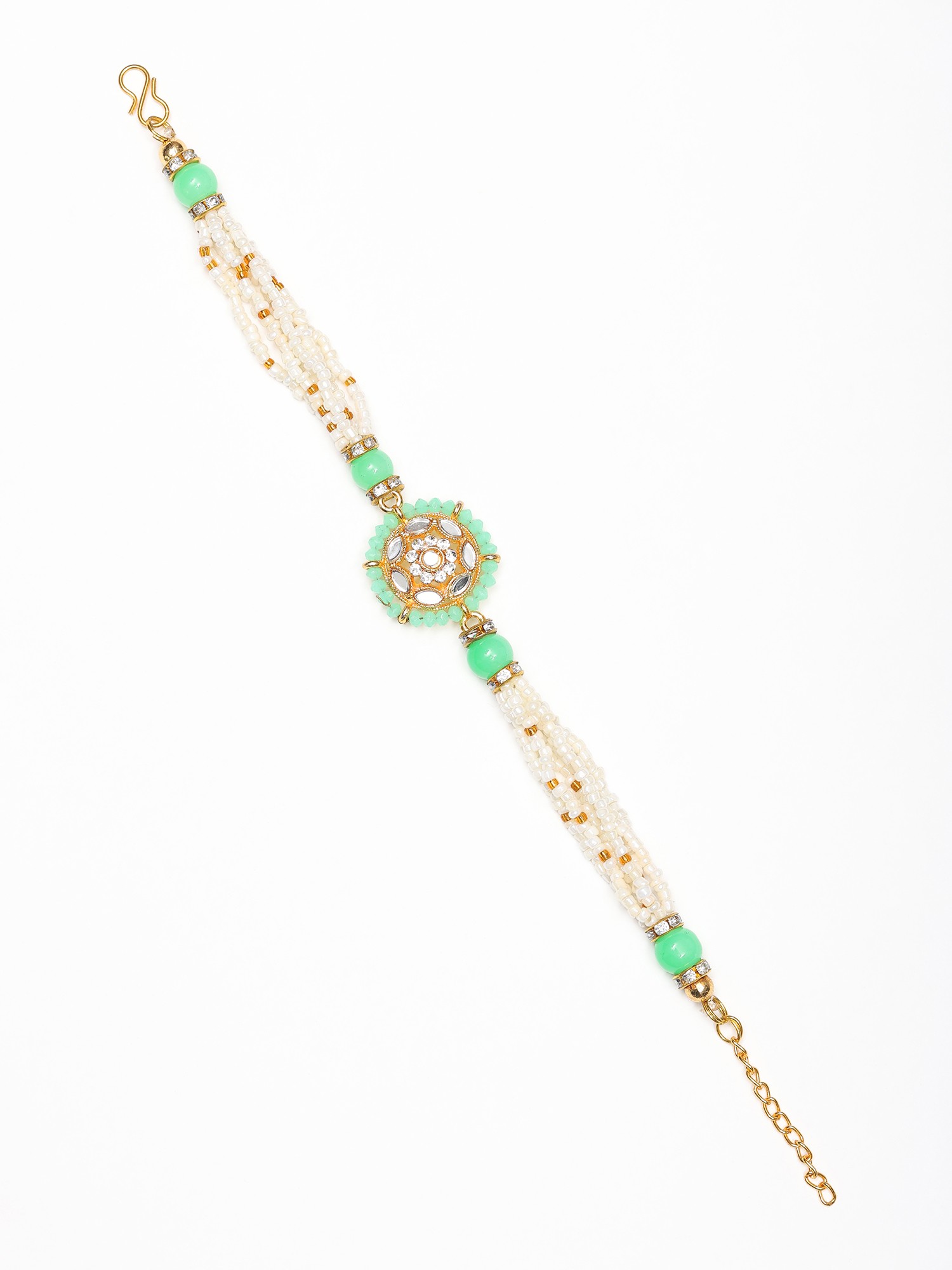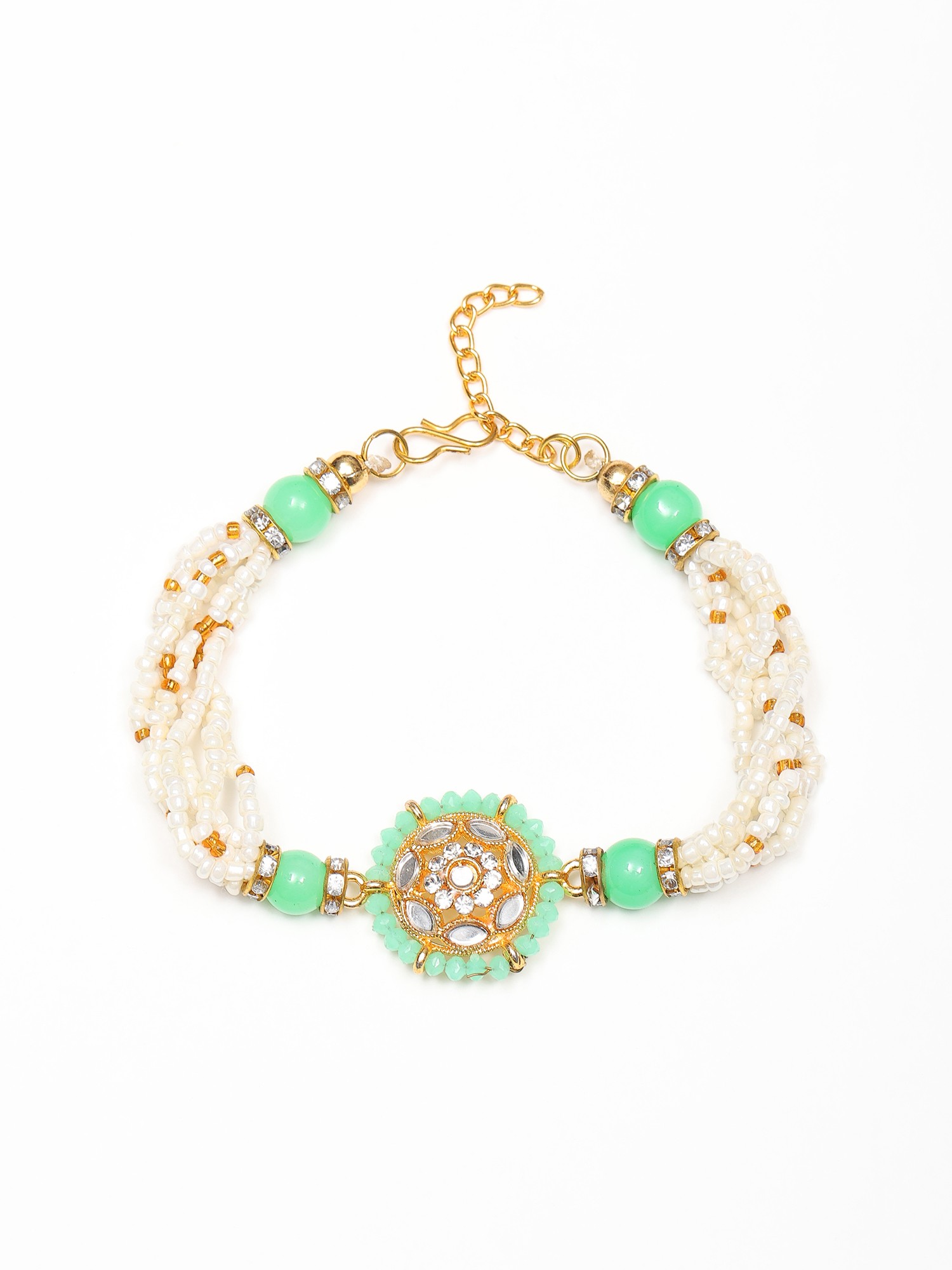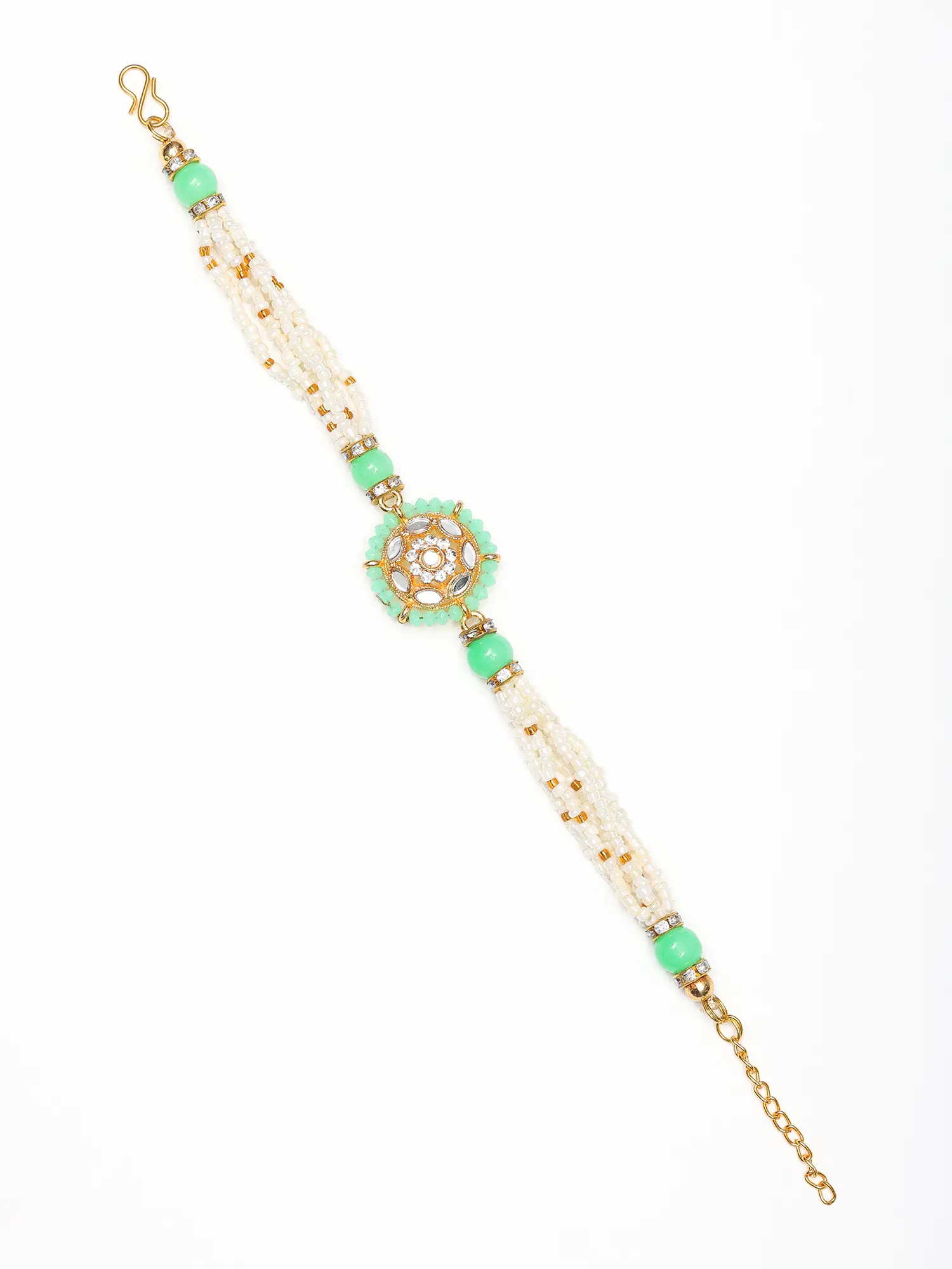 Green and White Beaded Round Shaped Adjustable Bracelet Rakhi