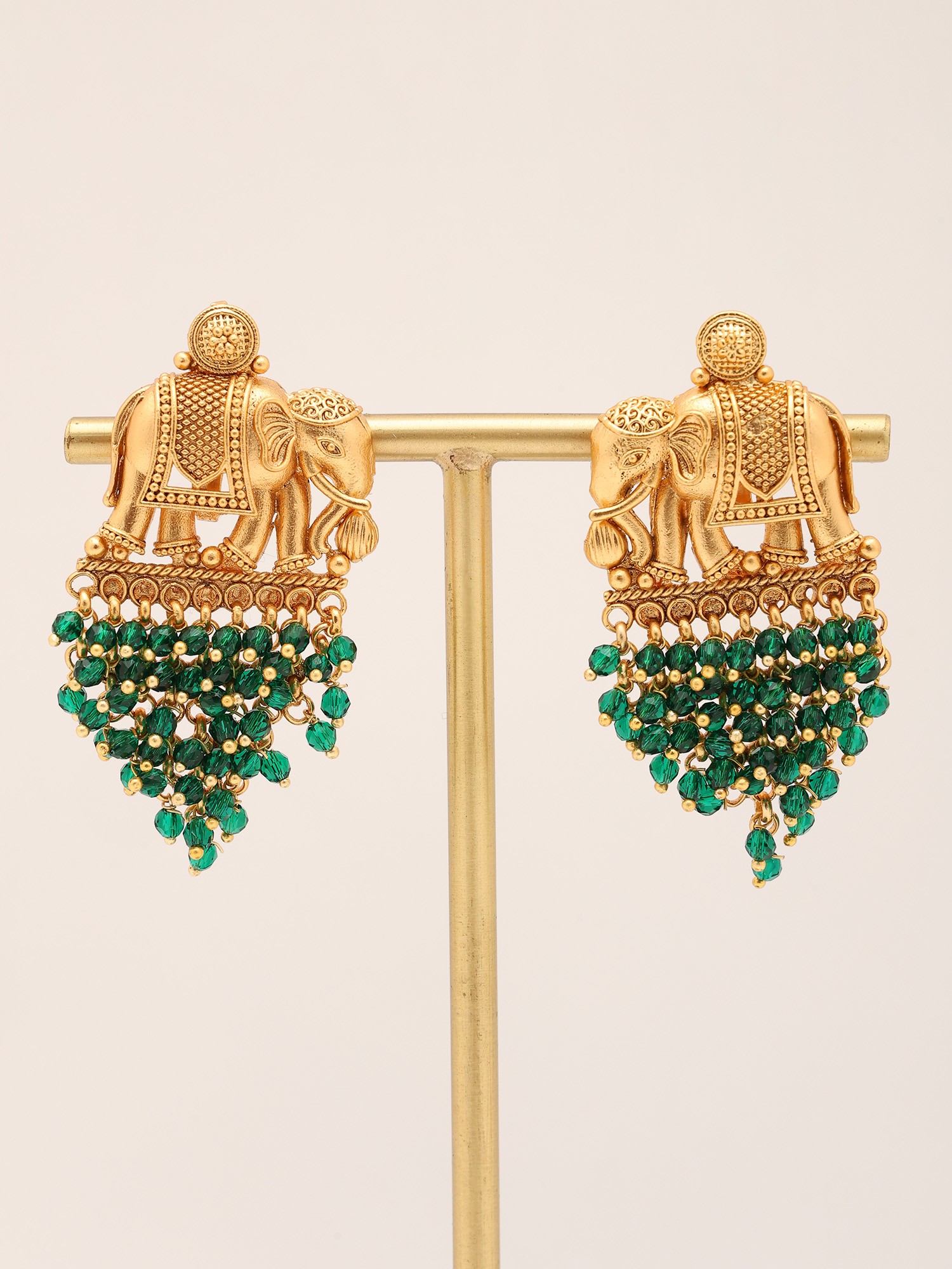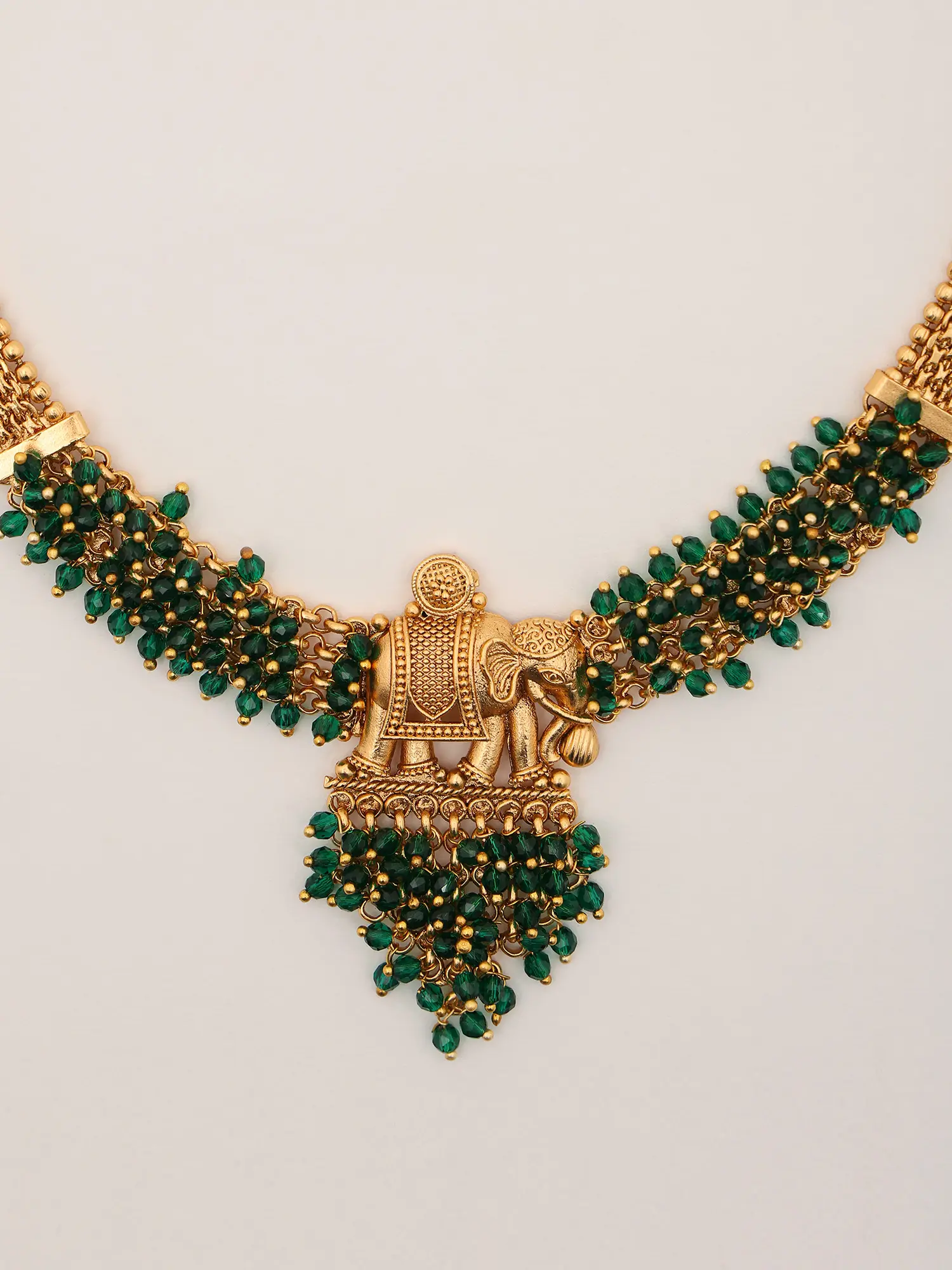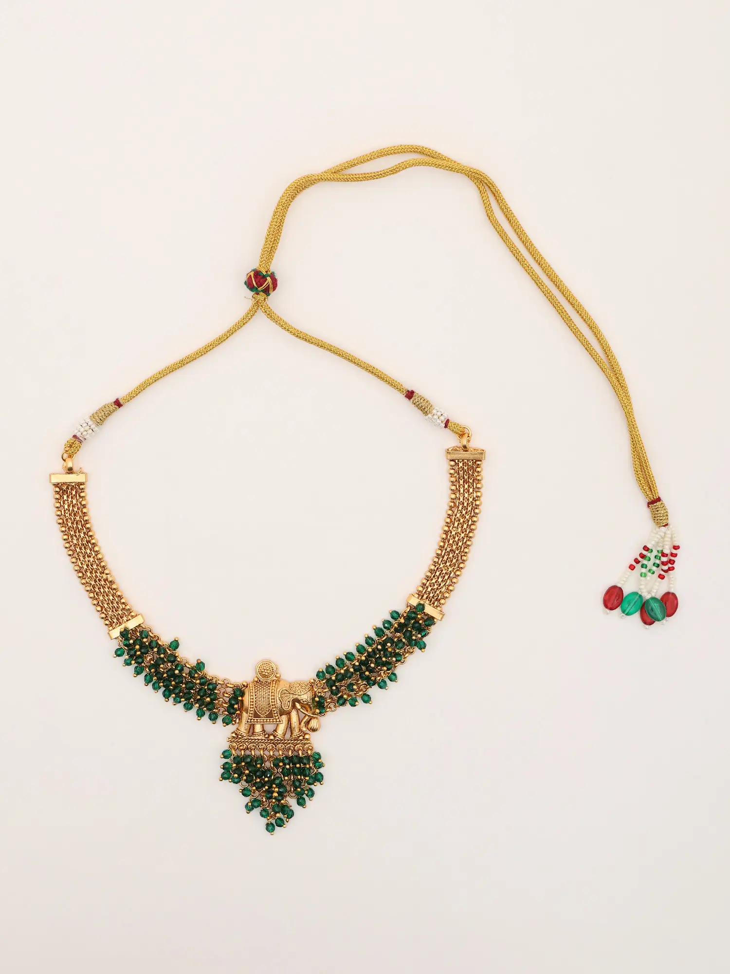 Attractive Moissanite Kundan With Matt Polish Stone Studded Necklace With Beaded Earrings