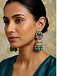 Discover a symphony of traditional craftsmanship and vibrant color with these exquisite earrings. Designed to capture the essence of Indian heritage, these jhumkas are a testament to timeless beauty. The rich, deep green of the kundan stones serves as the centerpiece, exuding an aura of sophistication and allure. Each stone is meticulously set, reflecting light with every subtle movement and drawing the eye to its captivating hue. The intricate detailing surrounding the central gem showcases delicate kundan work, a technique renowned for its brilliance and artistry. Tiny, shimmering crystals and pearls are artfully arranged, forming delicate floral motifs that add depth and texture to the earring's stud. This meticulously crafted top portion provides a sturdy yet elegant foundation for the dangling jhumka bell, ensuring a comfortable and secure fit.