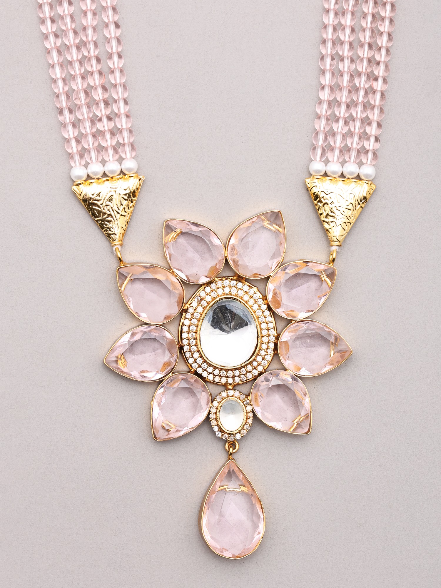 Gulnaar Blush Floral Kundan Necklace Set with Earrings