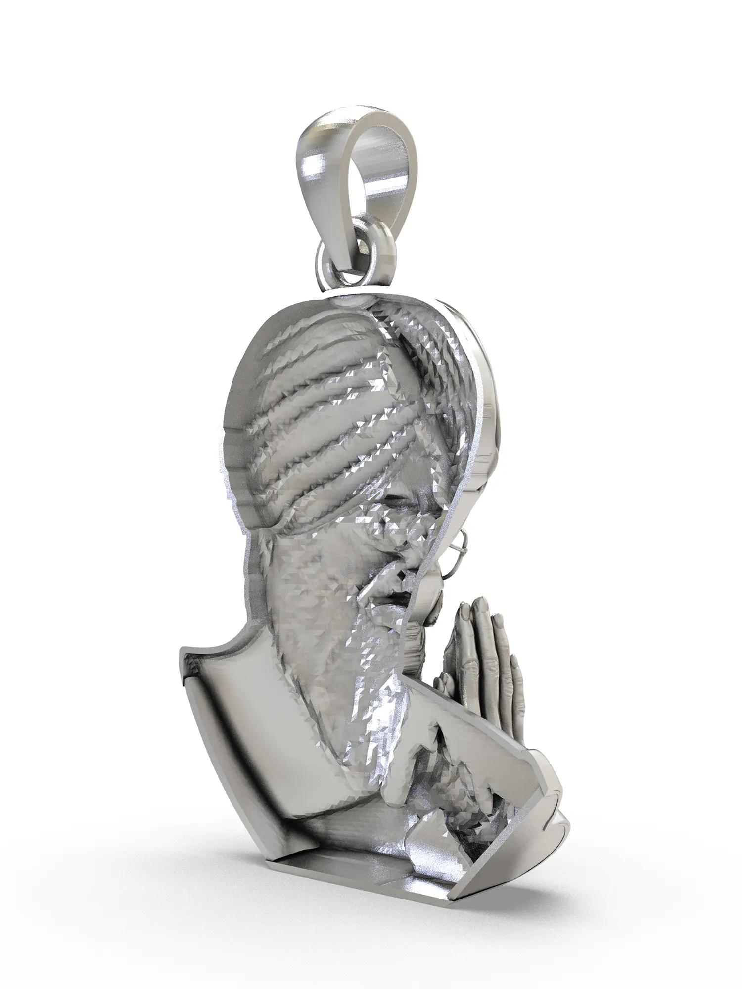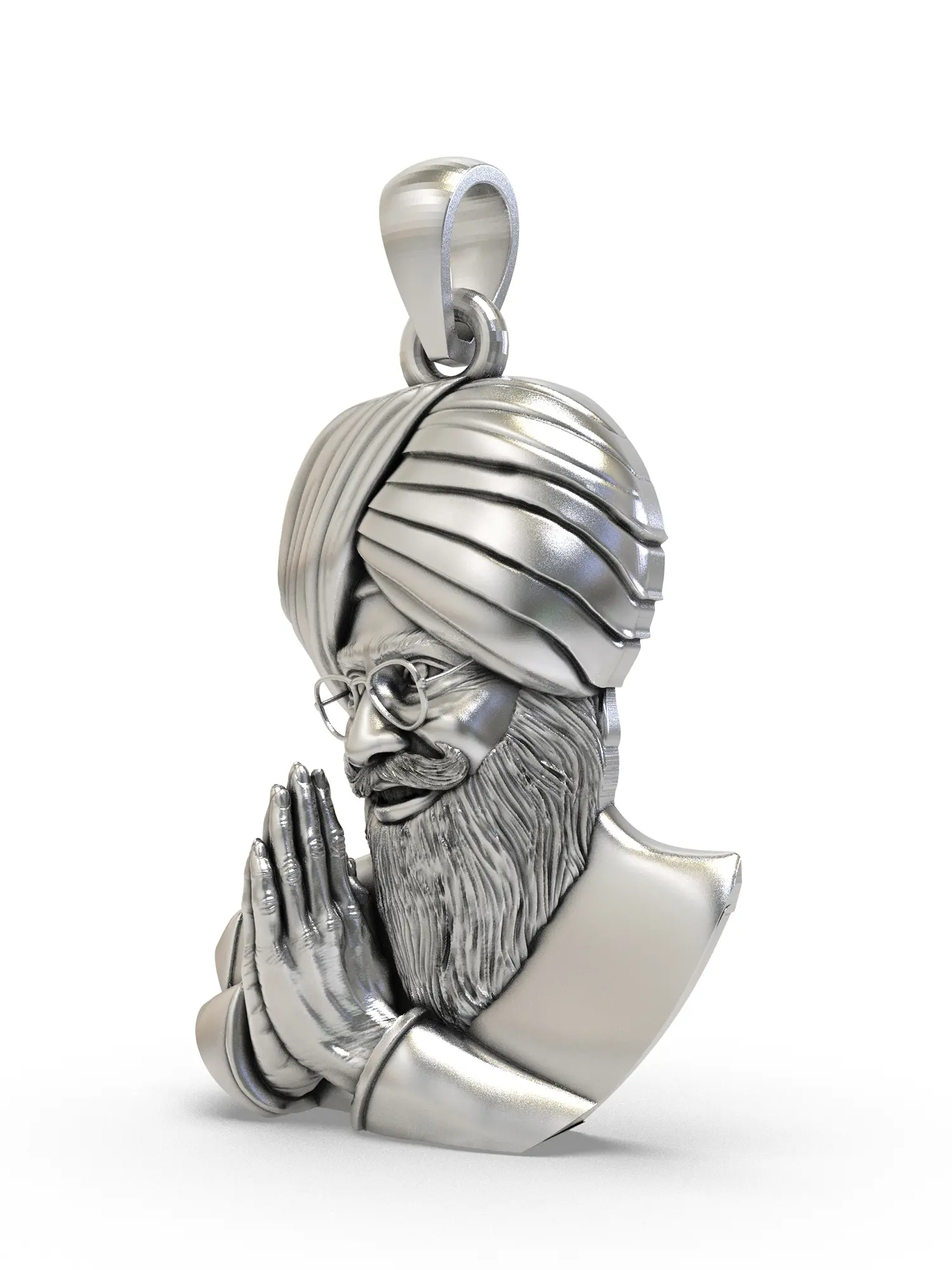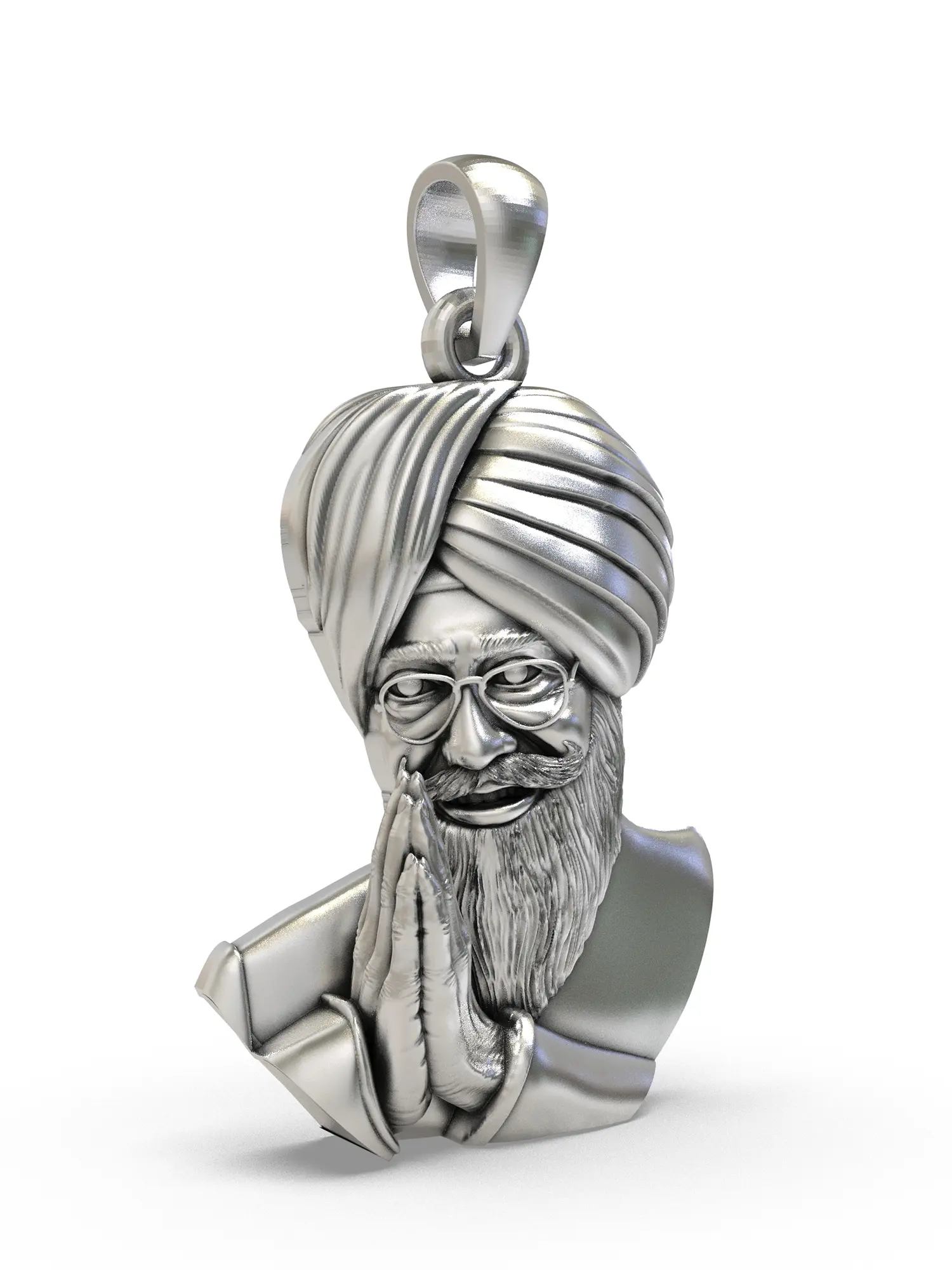 The imagery of the pendant features a respected spiritual leader with hands pressed together in a gesture of prayer and respect. This powerful posture evokes feelings of reverence and humility, offering a constant reminder of the importance of faith and devotion. Wearing this pendant can serve as a personal expression of these values, and it is a reminder of the path of righteousness and peace.
