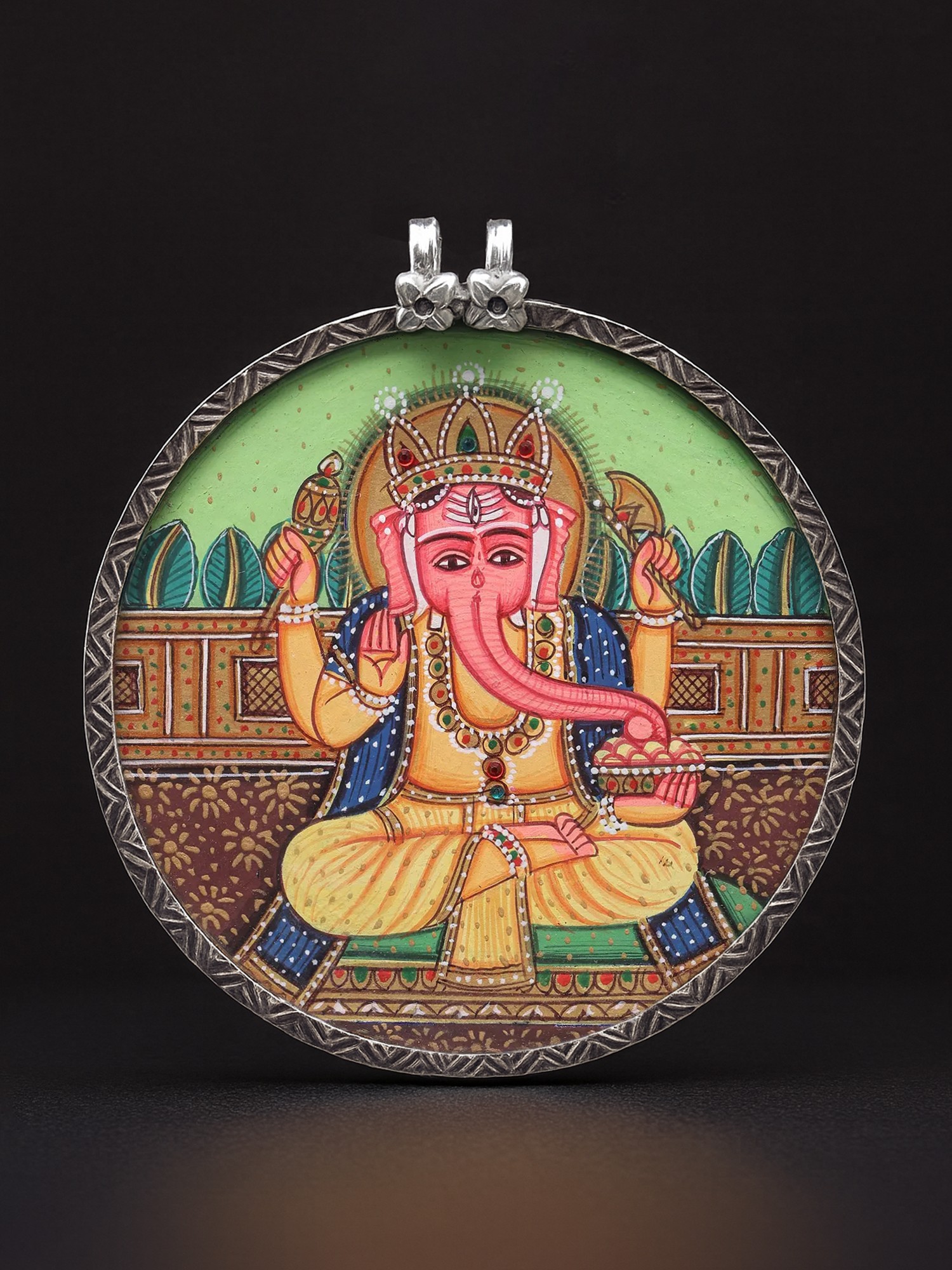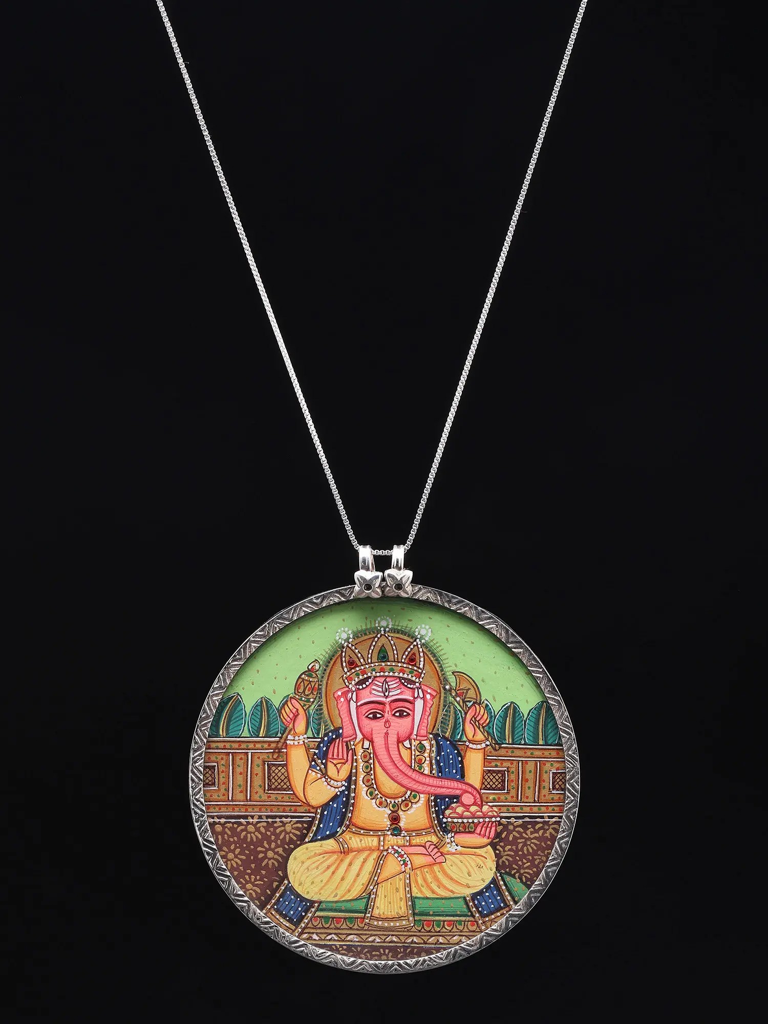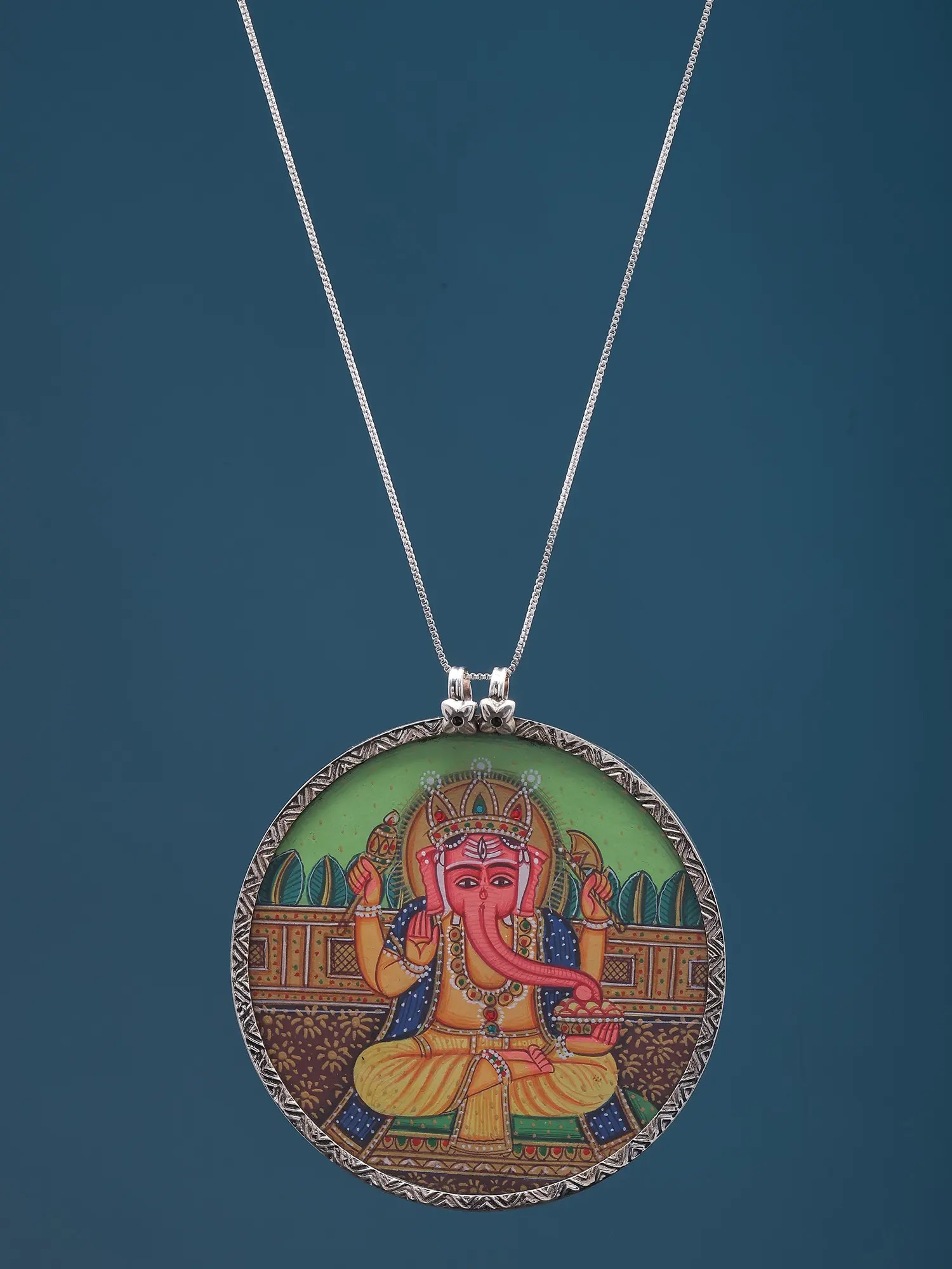 Round Shaped Hand-Painted Shri Guru Nanak Dev Ji Pendant