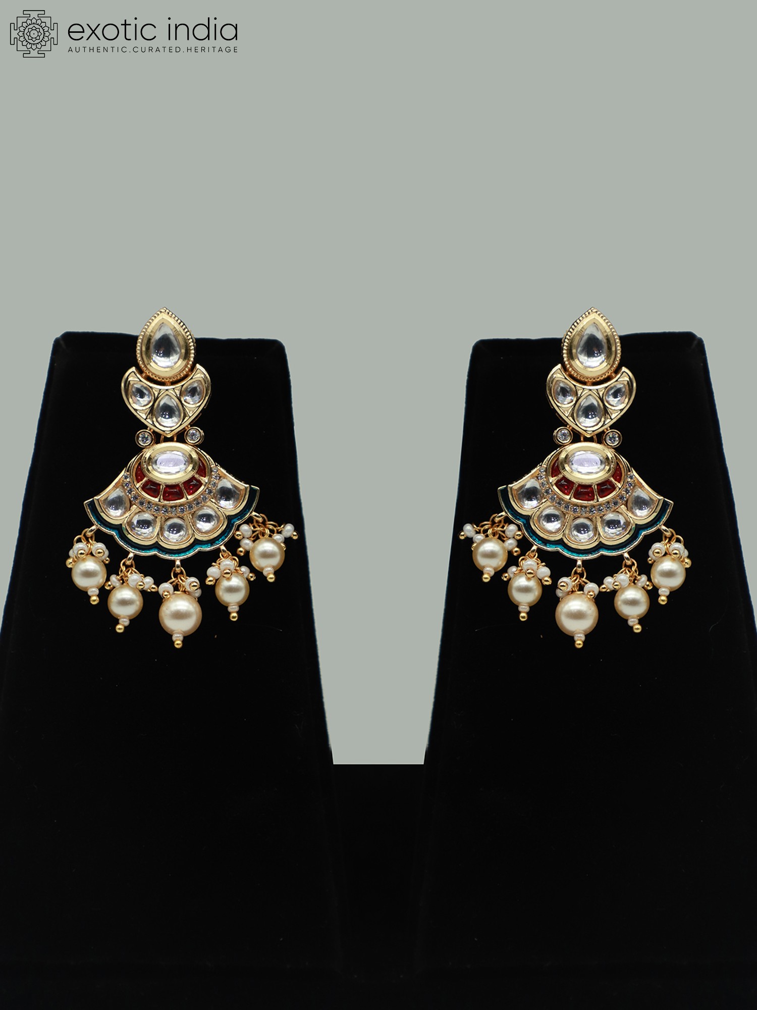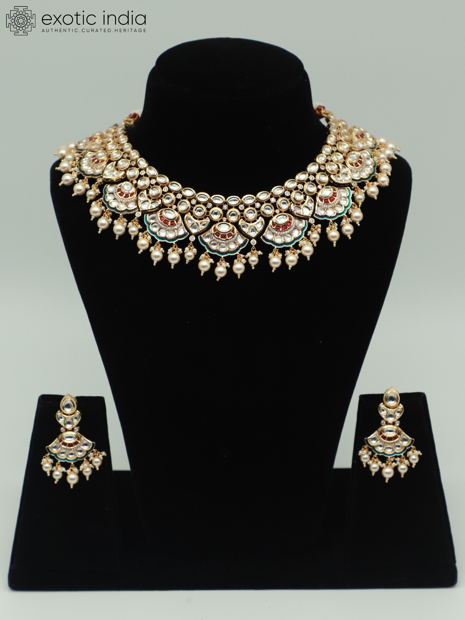 Stone Studded Moissanite Kundan Exquisite Necklace With Matching Earrings