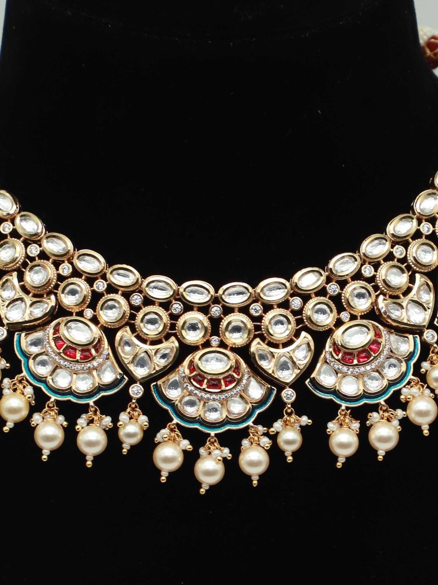 Stone Studded Moissanite Kundan Embellished Necklace With Matching Earrings