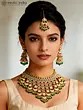 Kundan Studded and Beaded Necklace Set with Earrings and Mangtika