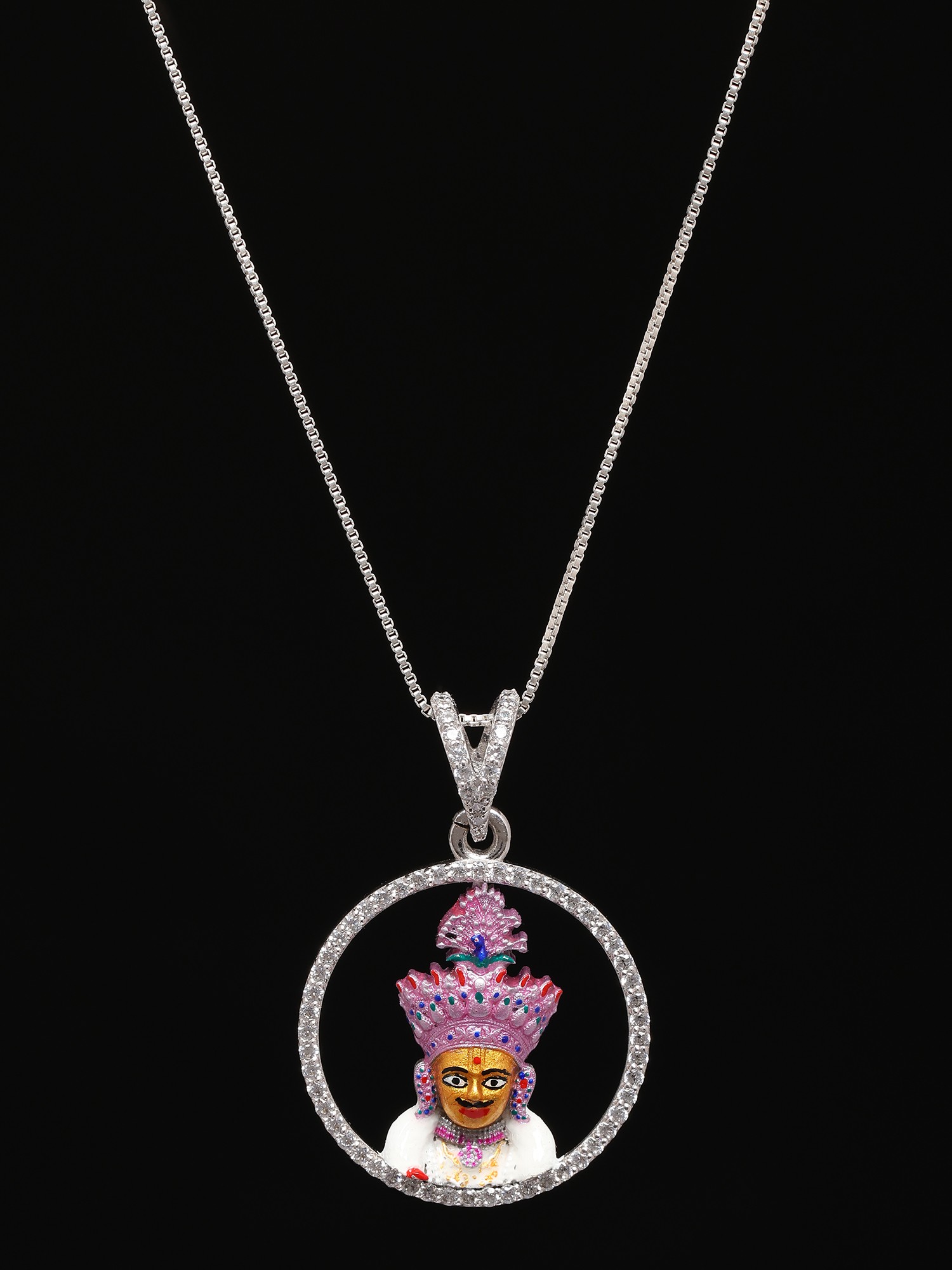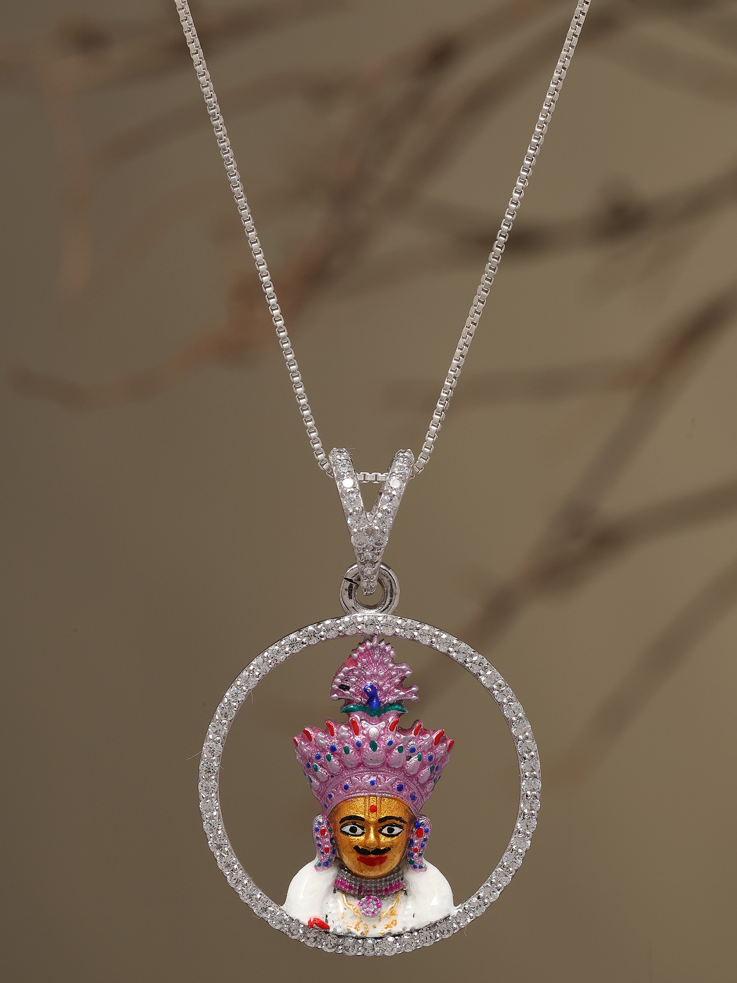 Sterling Silver Murli Pendant with Round Shape Multi Gemstone