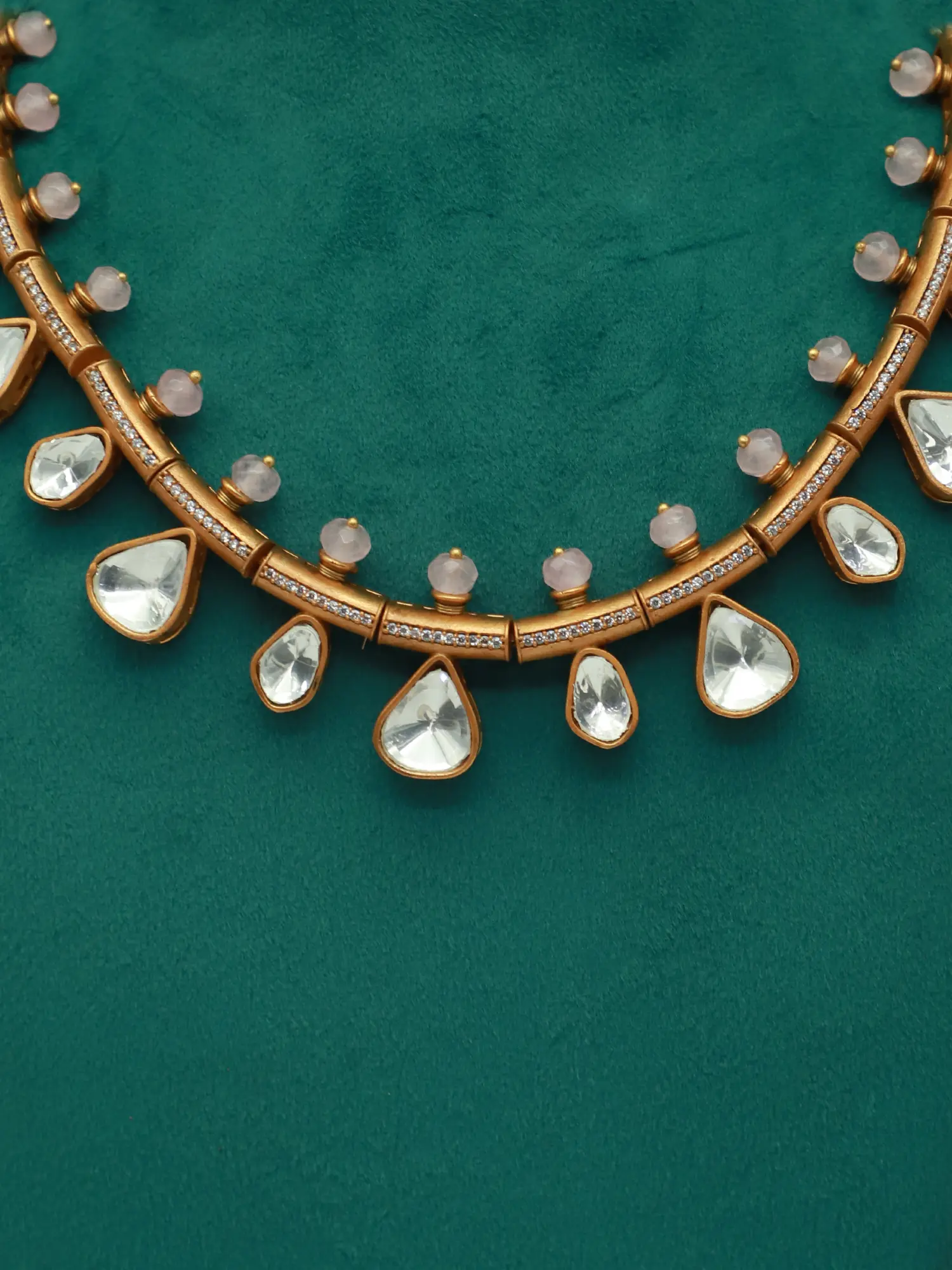 Moissanite Kundan With Matt Polish Stone Studded Hasli Style Necklace For Women