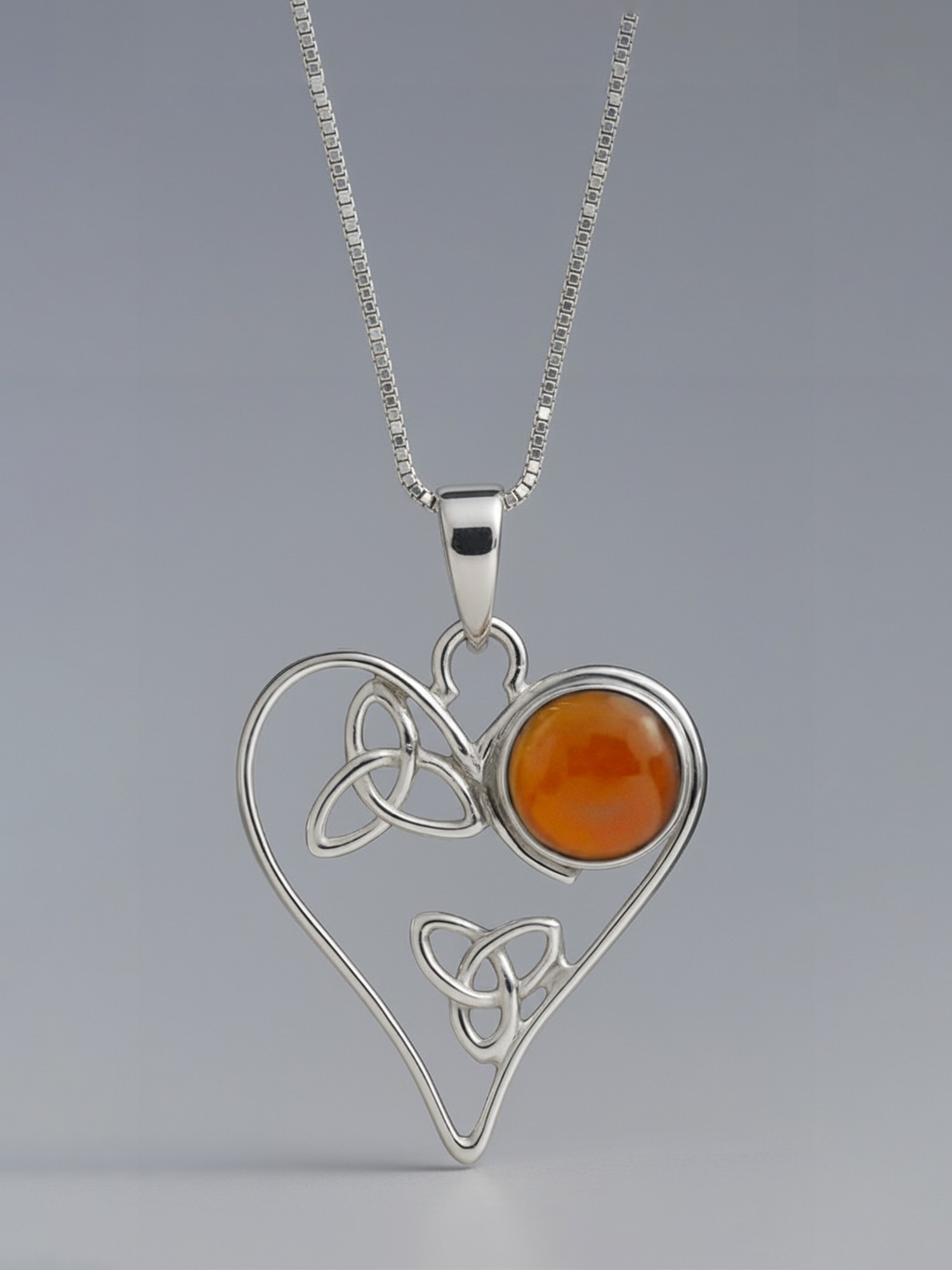 The Pendants, each featuring a different type of gemstone: Carnelian, Green Onyx, Lapis Lazuli, and Malachite, are set in a sterling silver frame, designed with Celtic knot patterns that add a meaningful and artistic touch to it.