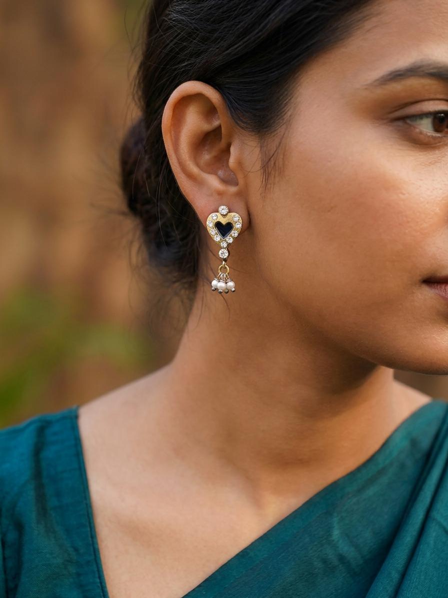 Embrace romance and elegance with heart-shaped earrings. Crafted with precision, these earrings are a symbol of love and style. The delicate curves of the hearts dangle gracefully, adding a subtle yet charming touch to your look. Whether adorned with gemstones for a touch of sparkle or crafted from precious metals for a classic appeal, these earrings are a timeless accessory that effortlessly complements any outfit. Wear your heart on your ears and let these charming pieces add a sweet and sophisticated flair to your ensemble.