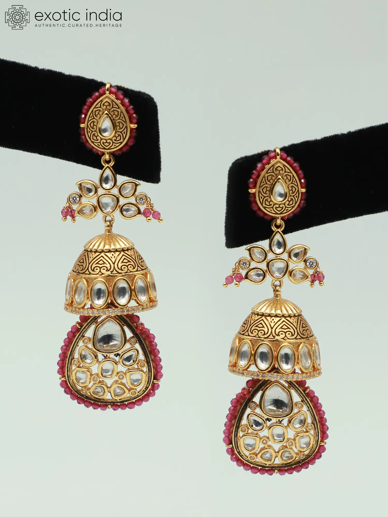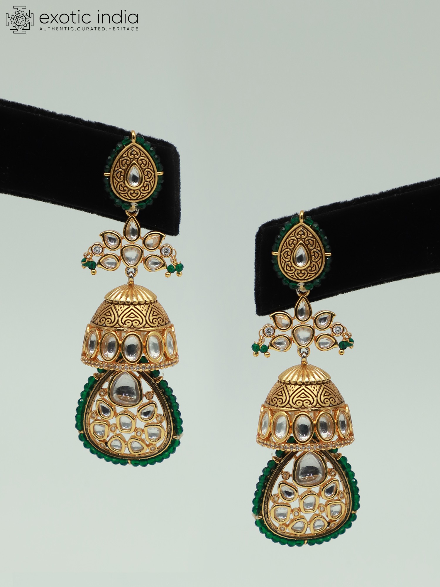 Designer Heavy Necklace Set With Moissanite Kundan And Earrings