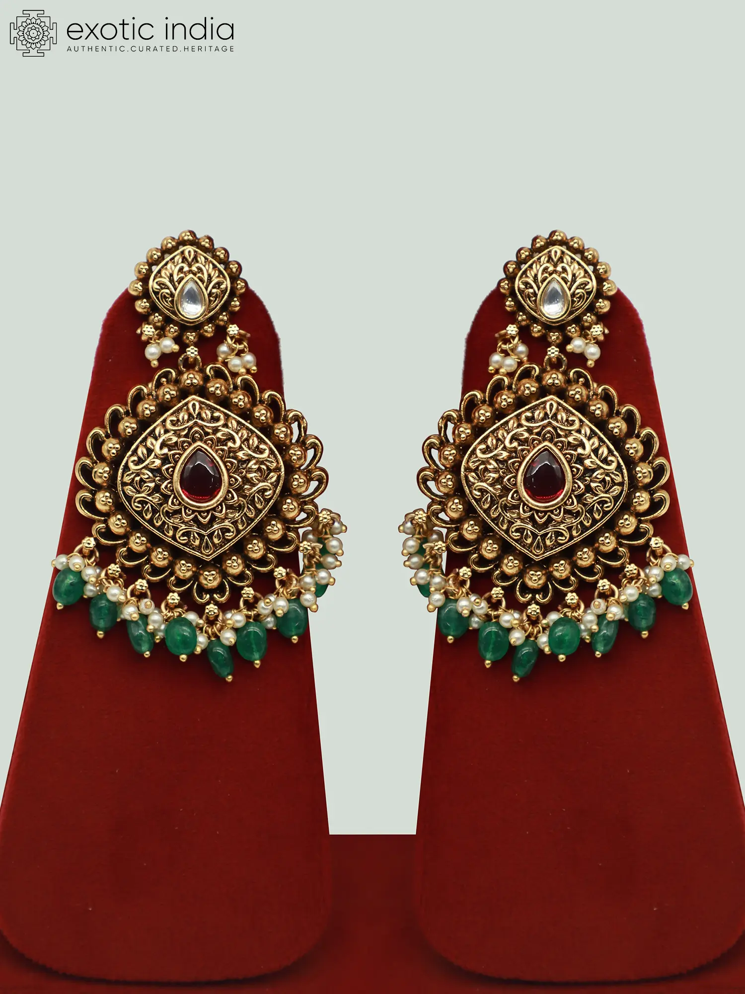 Meticulously fashioned from high-quality brass, this set boasts remarkable durability, ensuring it remains a cherished keepsake for years to come. The brass provides a sturdy framework for the elaborate design, while also imparting a warm, golden glow that complements the skin beautifully. The set features a detailed and luxurious design. The beauty of traditional Kundan style is elevated by the inclusion of gleaming stones. These elements add a vibrant touch of color that brings the entire set to life. Every detail, from the intricate patterns to the carefully chosen stones, speaks volumes about the artistry and dedication involved in its creation.
