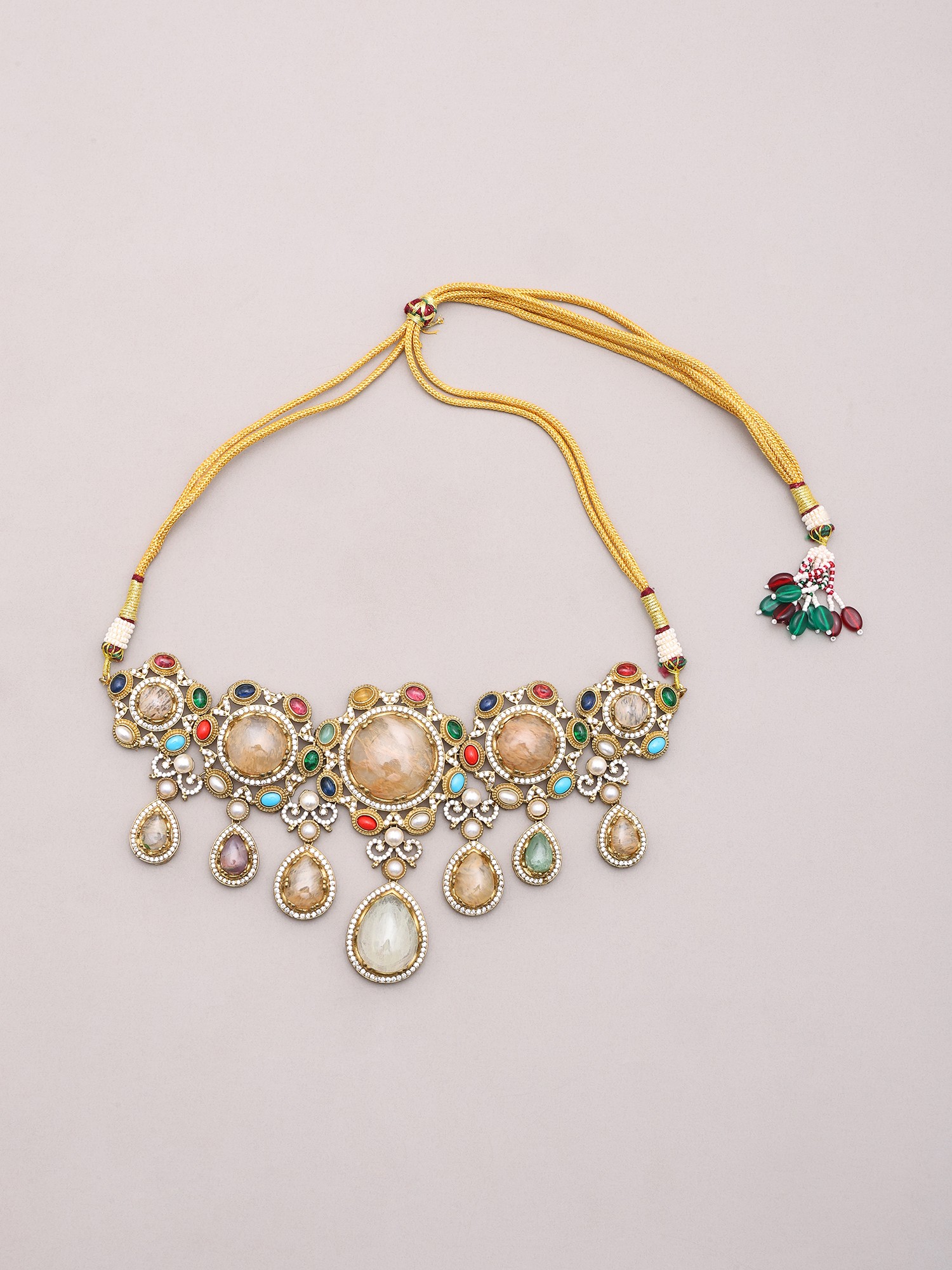 Heritage-Inspired Stone Studded Choker Set with Earrings