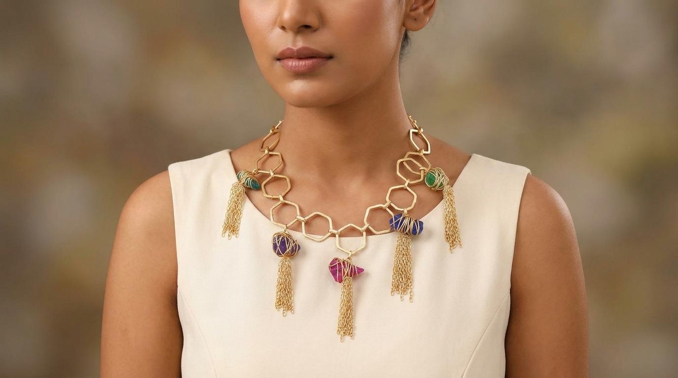 To preserve the lustrous glow of the brass and the vibrancy of the stones, we recommend gentle care. Avoid contact with harsh chemicals, perfumes, and lotions, and store it in a soft pouch when not being worn. With proper attention, this meticulously crafted piece will remain a treasured companion, its beauty and significance growing with every moment it is cherished.