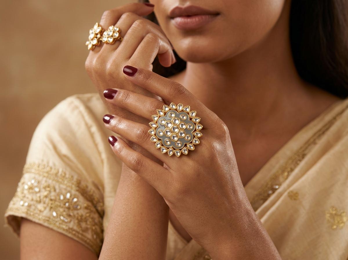 Designer Stone Studded Kundan Adjustable Cocktail Ring