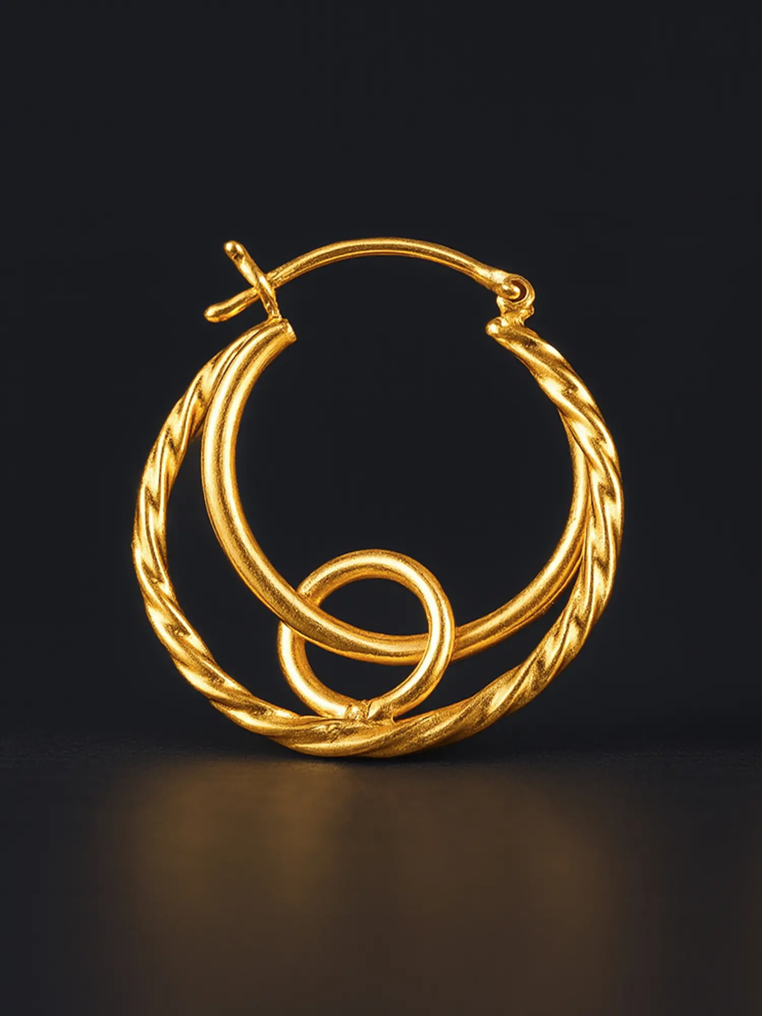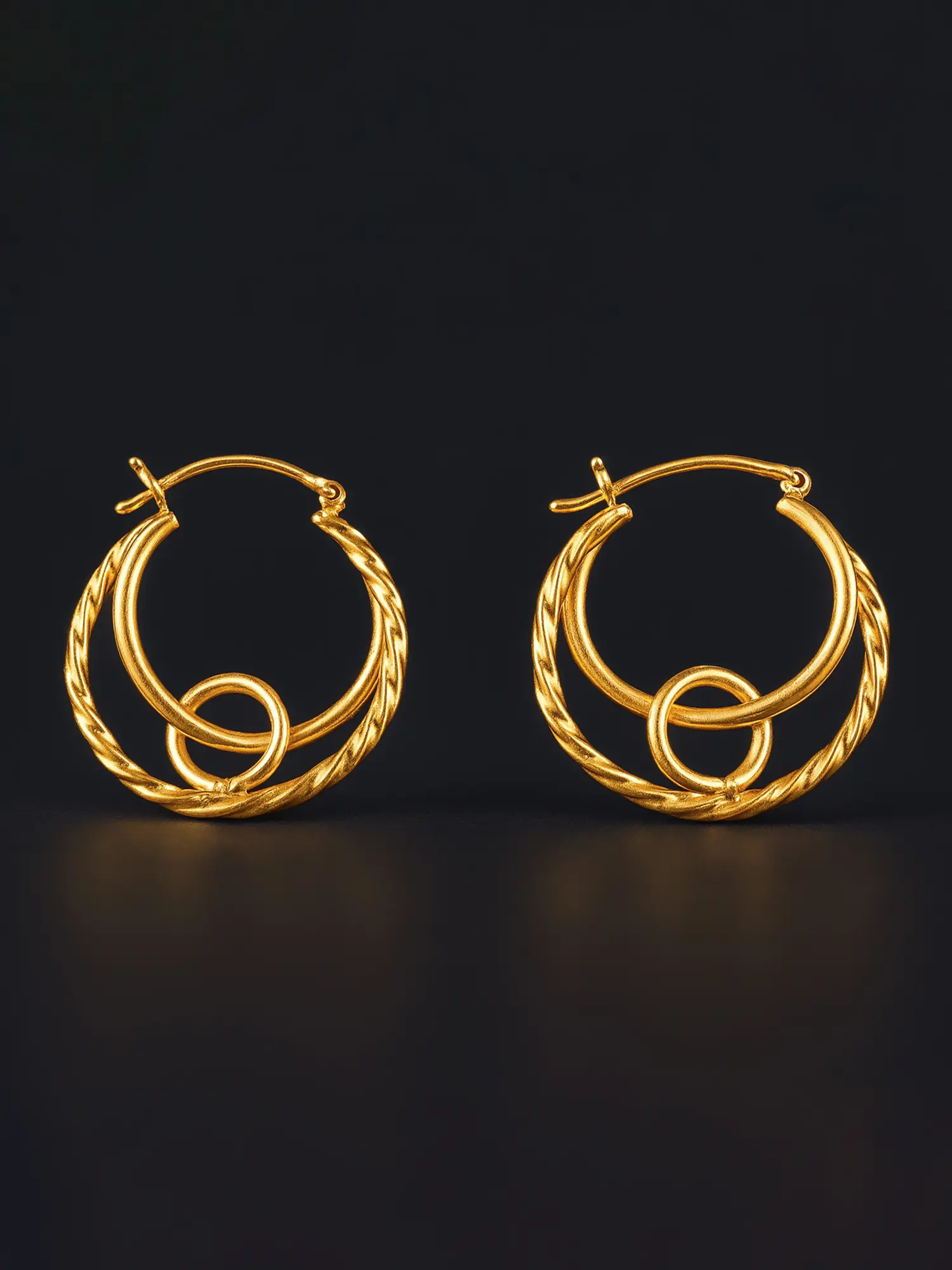 Sterling Silver Semi Hoop Earrings with Rope Texture