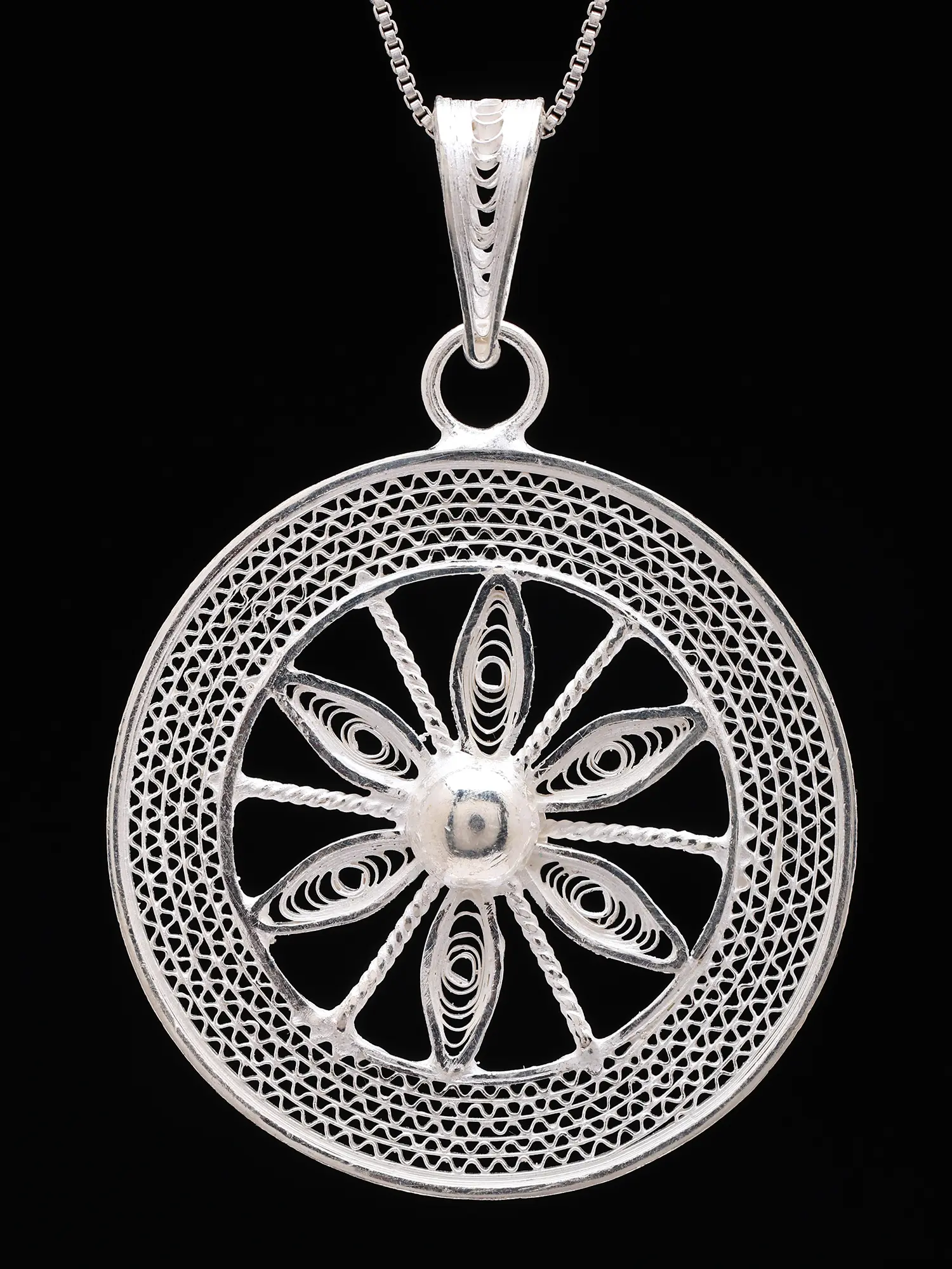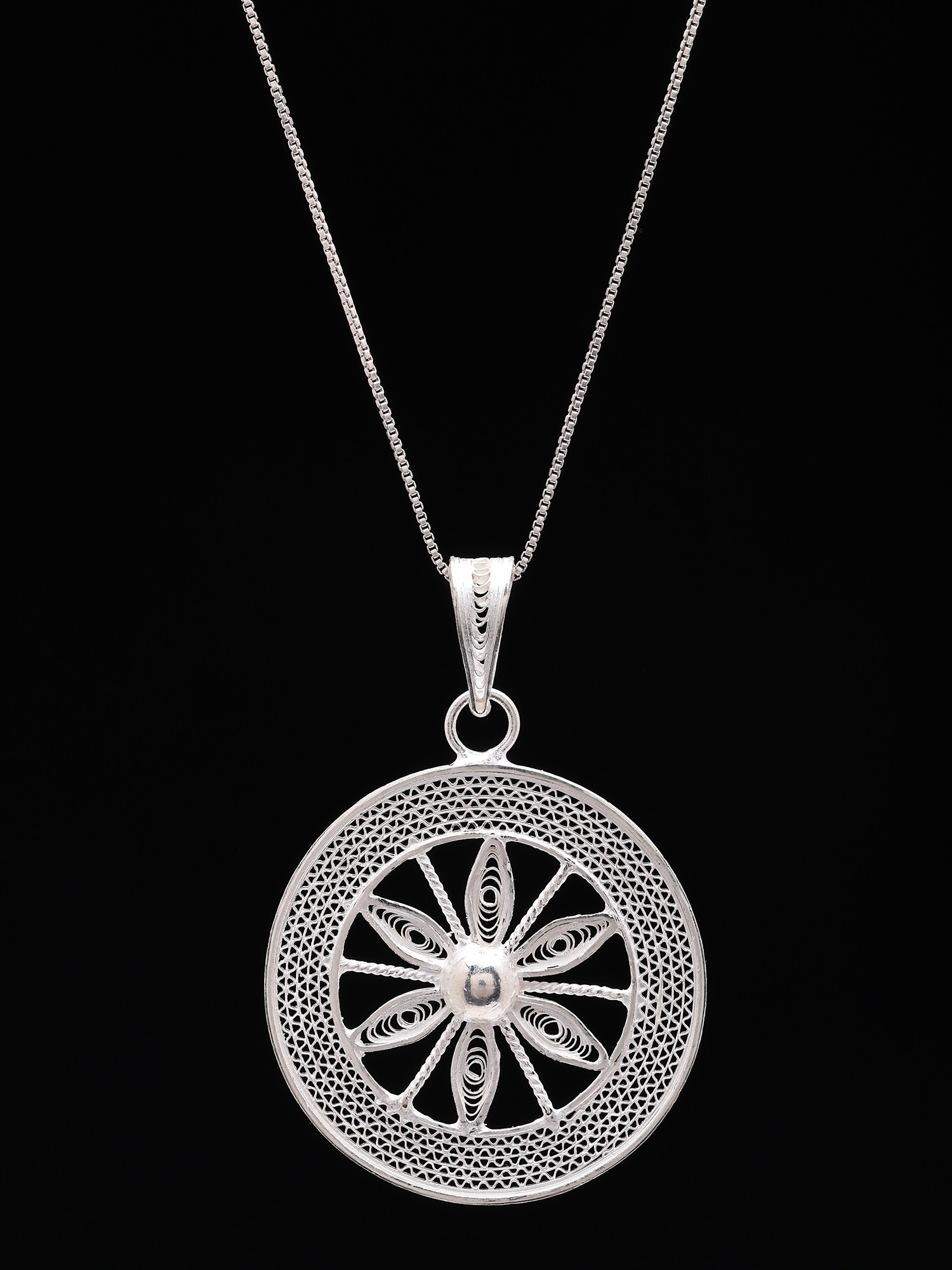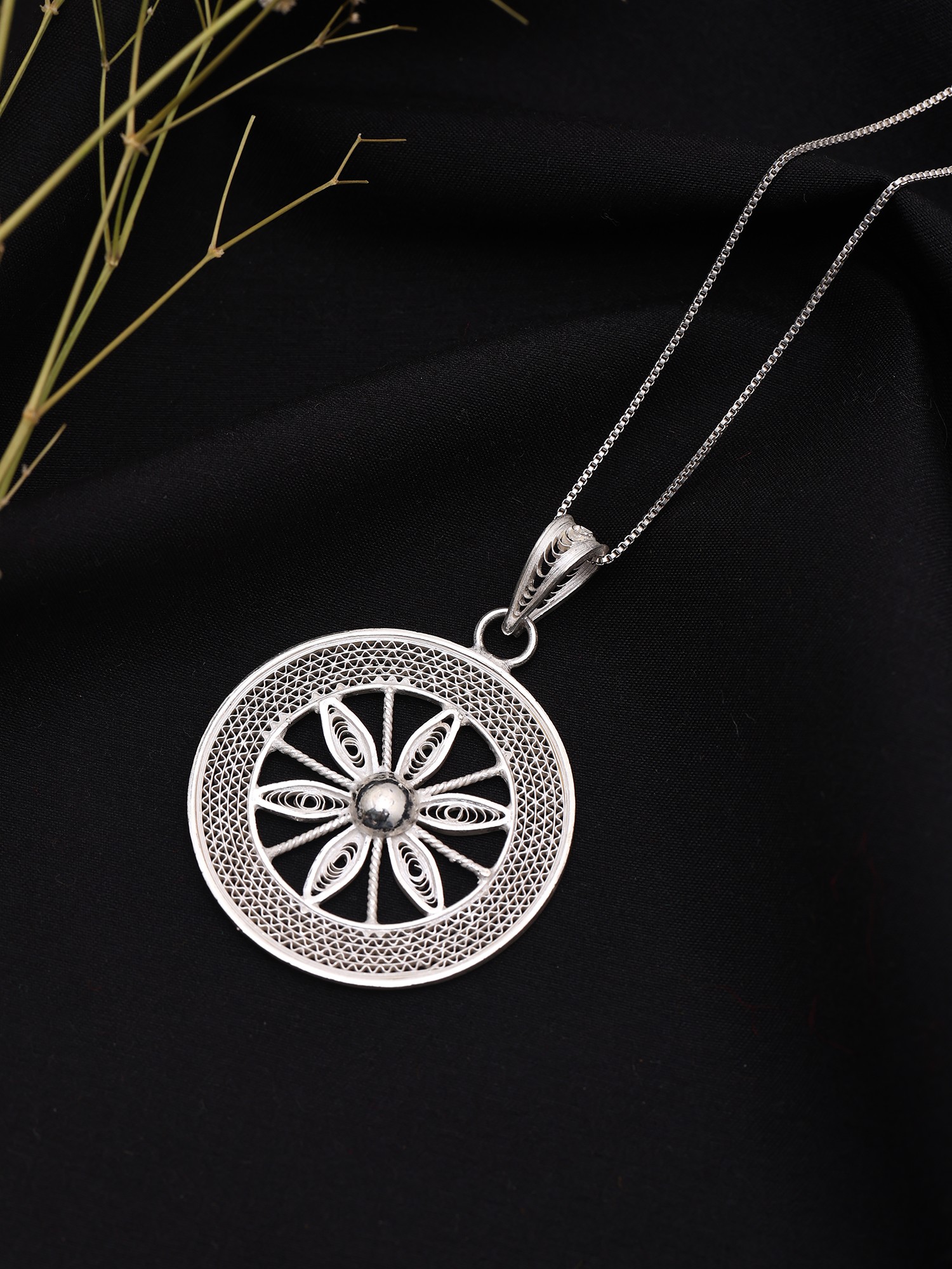 Sterling Silver Floral Filigree Pendant Necklace